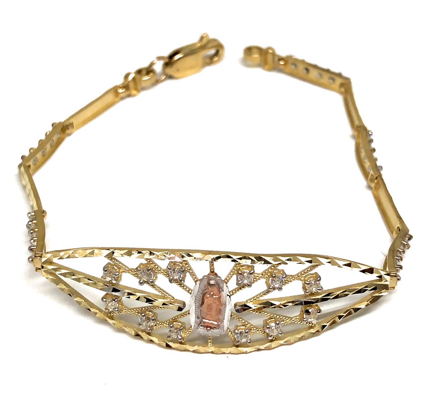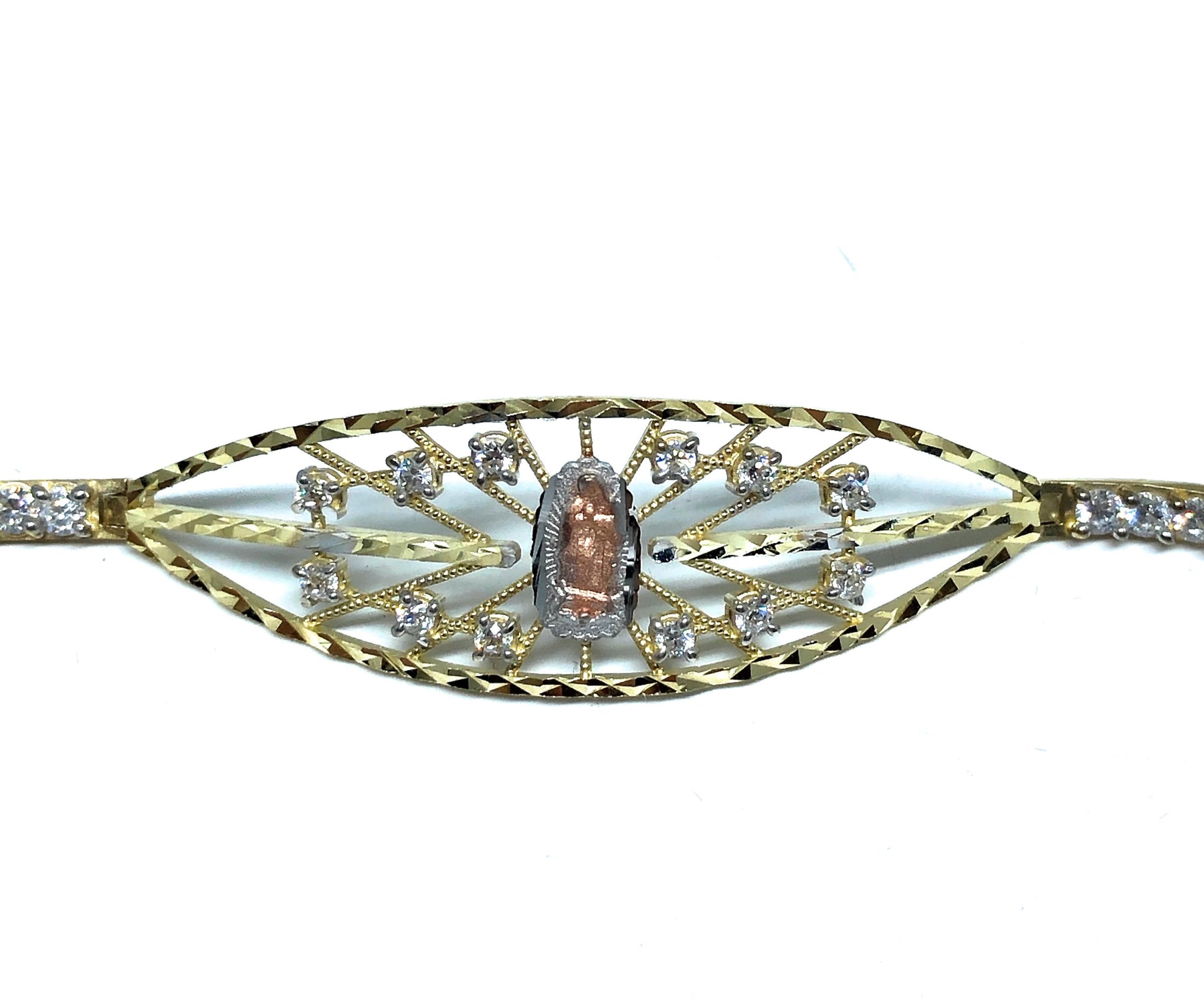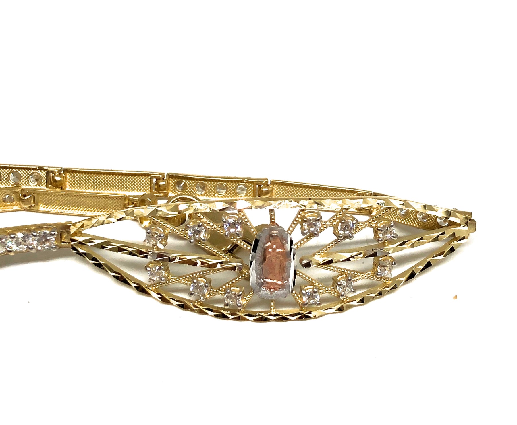 10k Solid Gold Tri-Color Virrgin Mary Filigran CZ Brracelet 7 inch Virrgen Guadalupe