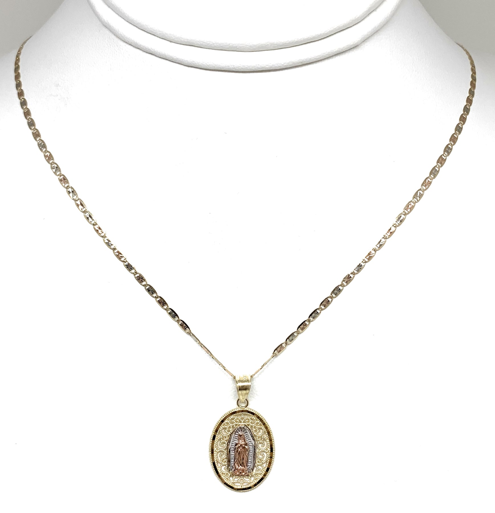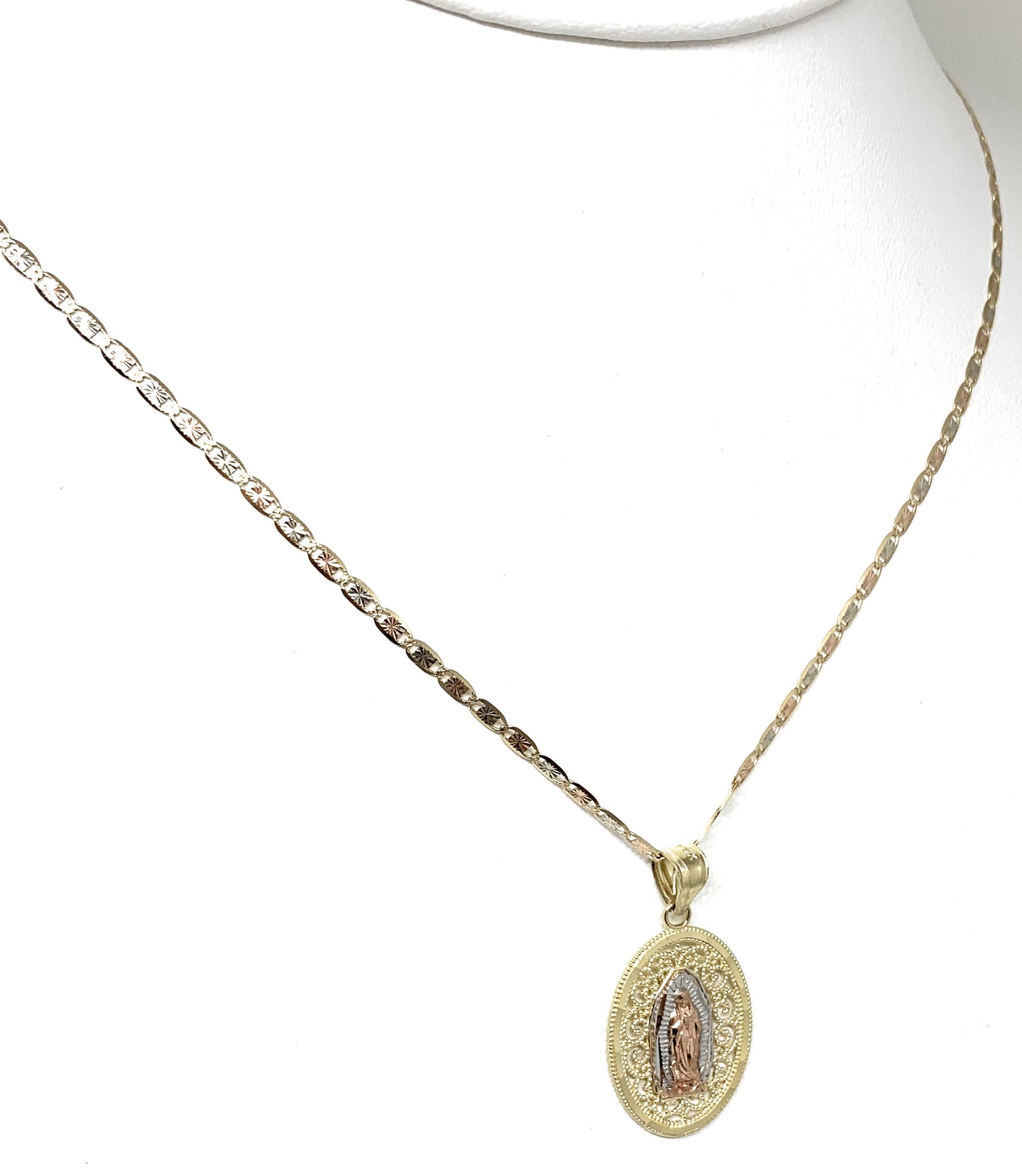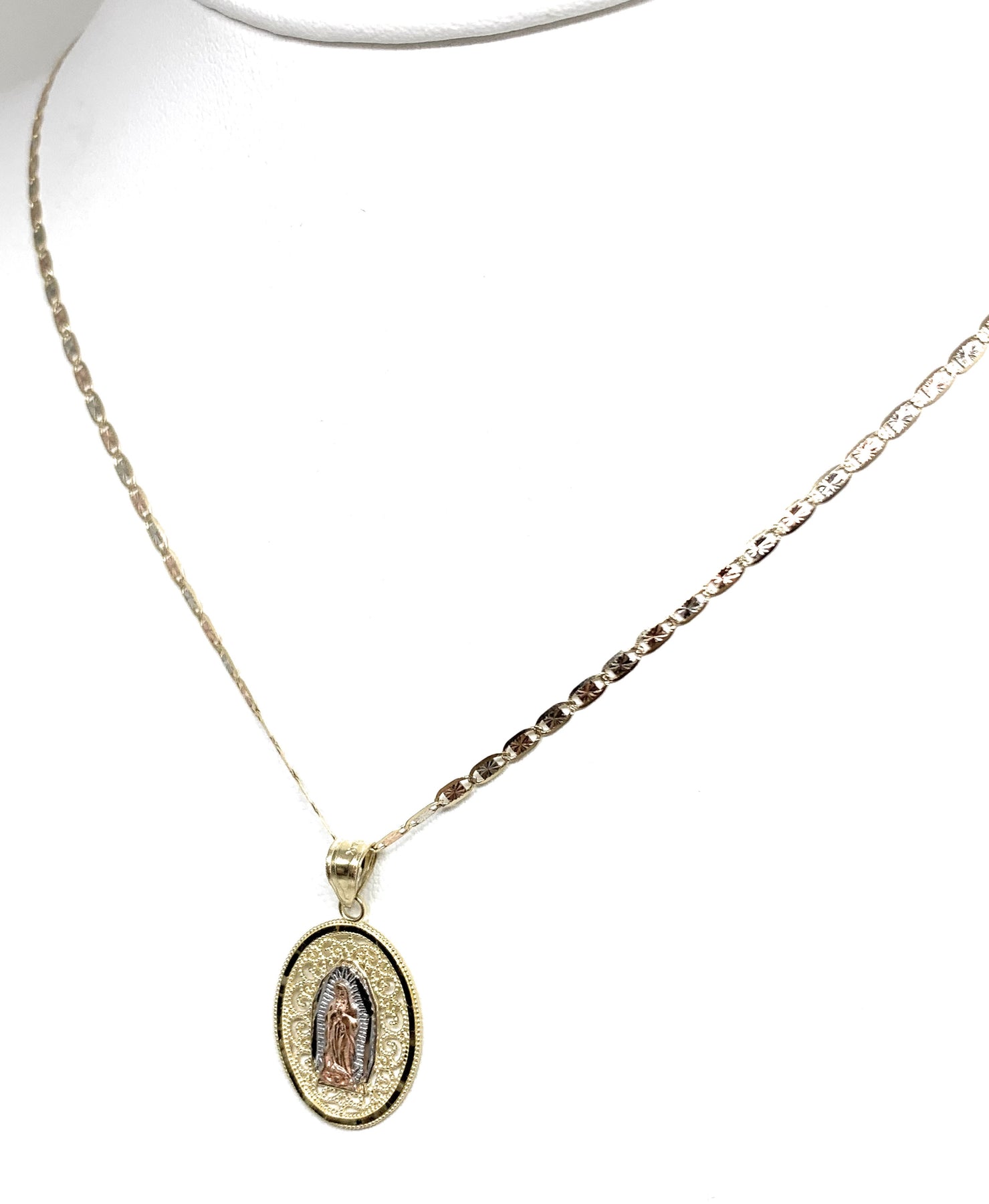 10k Solid Gold Tri-Color Virrgin Mary Filigran Pendant Virrgen Guadalupe Tri-Color Chain