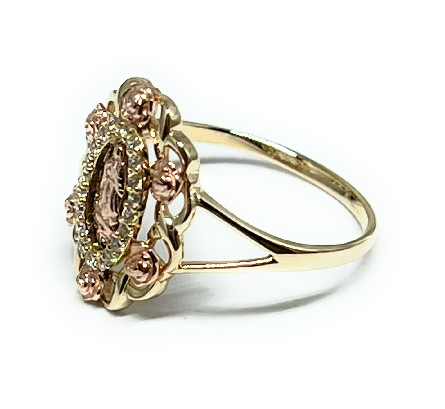 - Tri-Color Gold Virgin Mary CZ Ring 10k solid gold guaranteed.