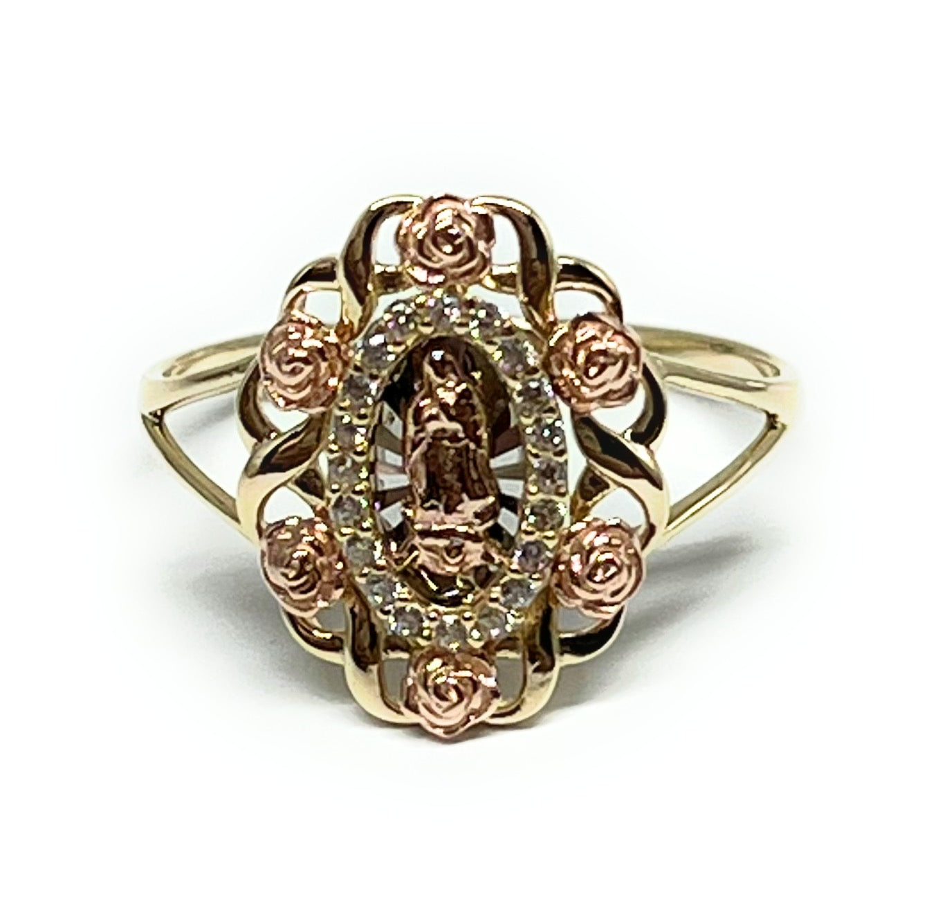 10k Solid Gold Tri-Color Virrgin Mary Flower CZ Ring (FC 161)