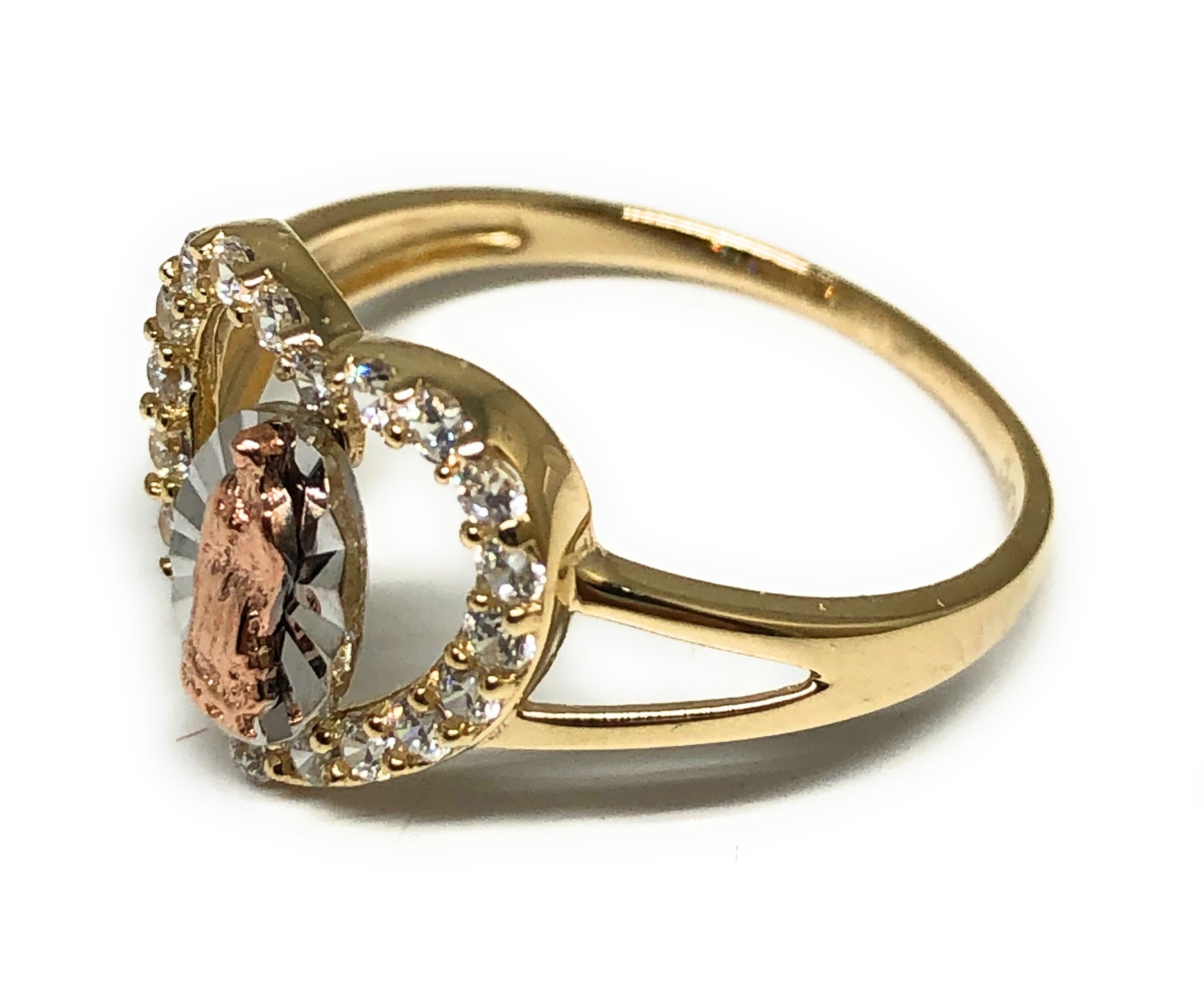 • Tri-Color Gold Virgin Mary CZ Ring 10k solid gold guaranteed.