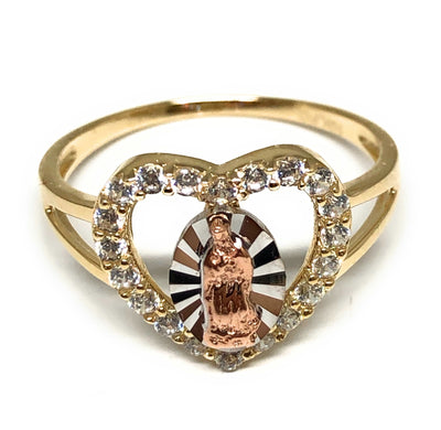 10k Solid Gold Tri-Color Virrgin Mary Heart CZ Ring (FC 22)