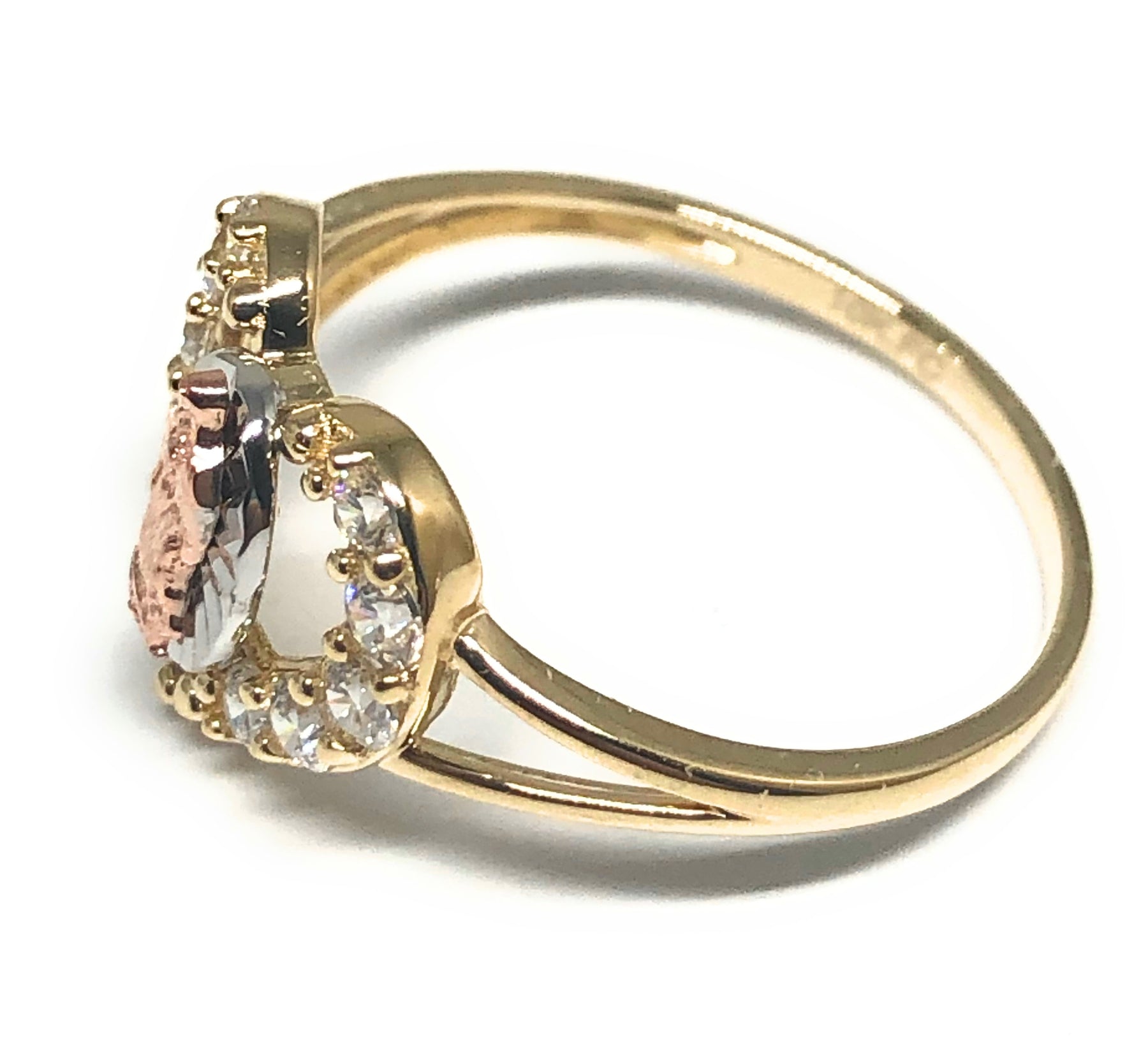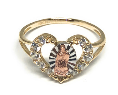 10k Solid Gold Tri-Color Virrgin Mary Heart CZ Ring (FC 26)
