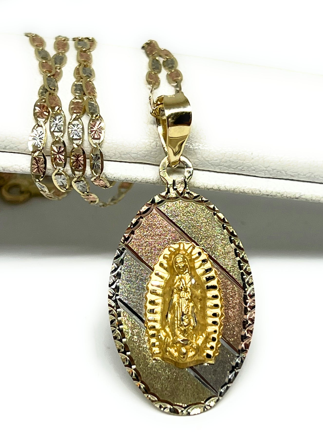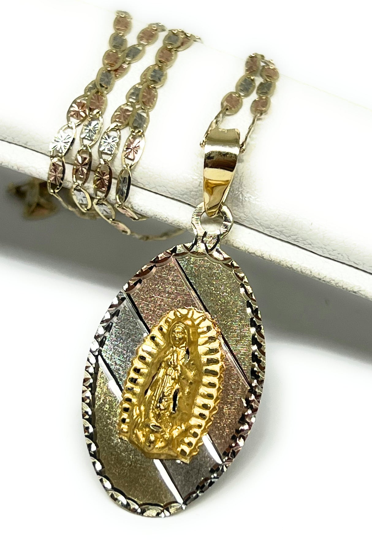 • Virgin Mary Tri-Color pendant and chain and 10k solid gold guaranteed.
