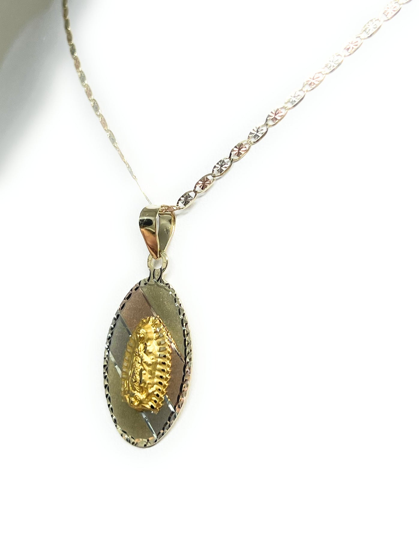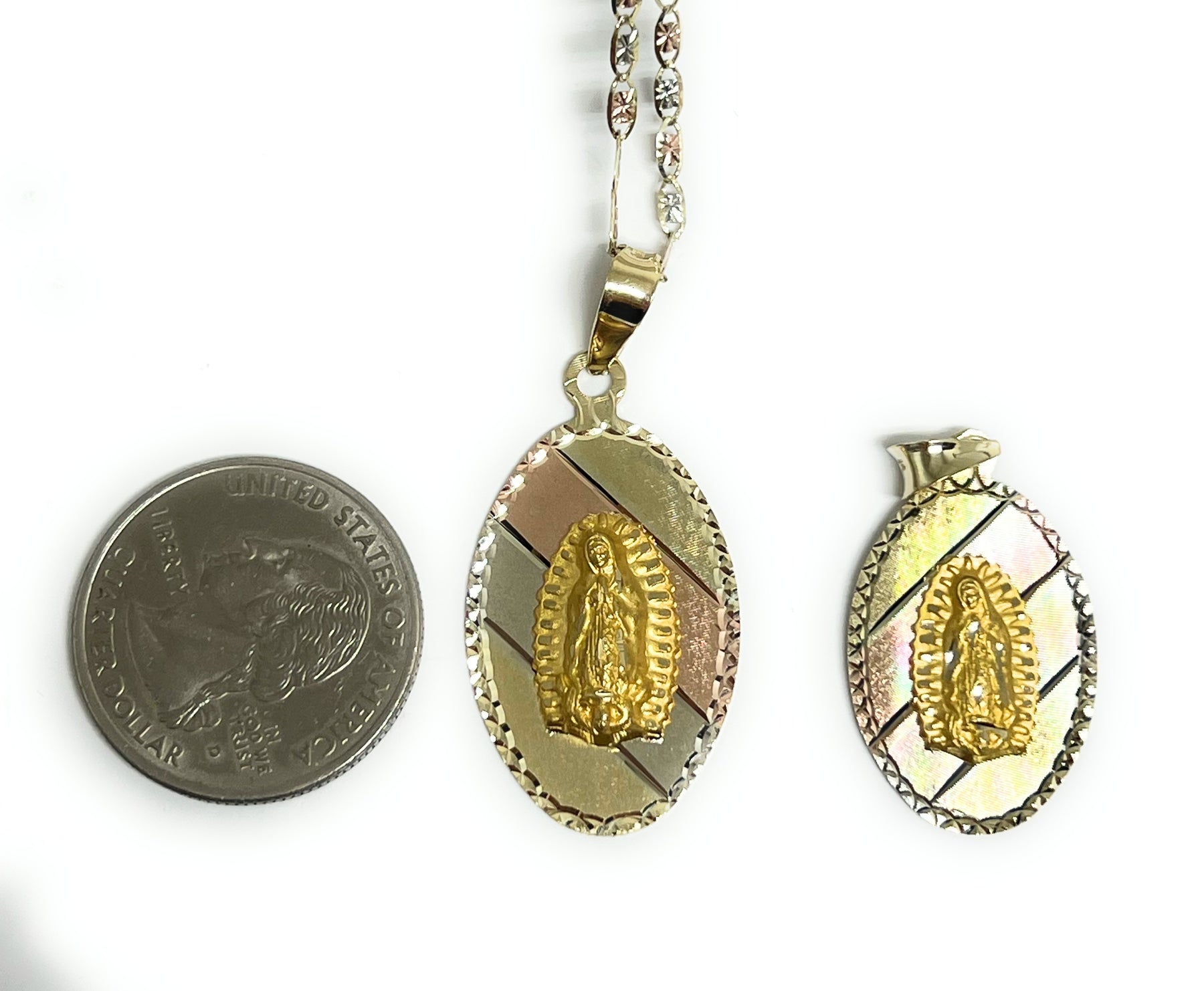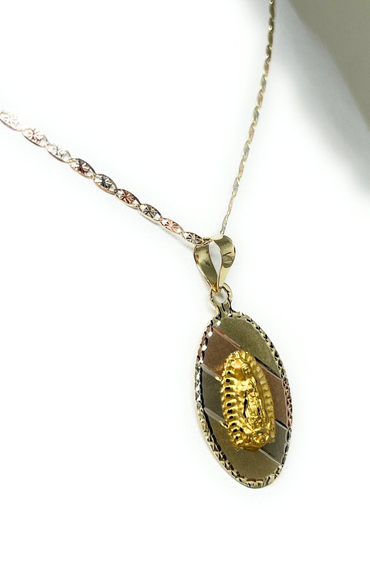 10K SOLID GOLD TRI-COLOR VIRRGIN MARY OVAL PENDANT NECKLACE VIRRGEN GAUDALUPE (MADE IN MX) (SM, MED)