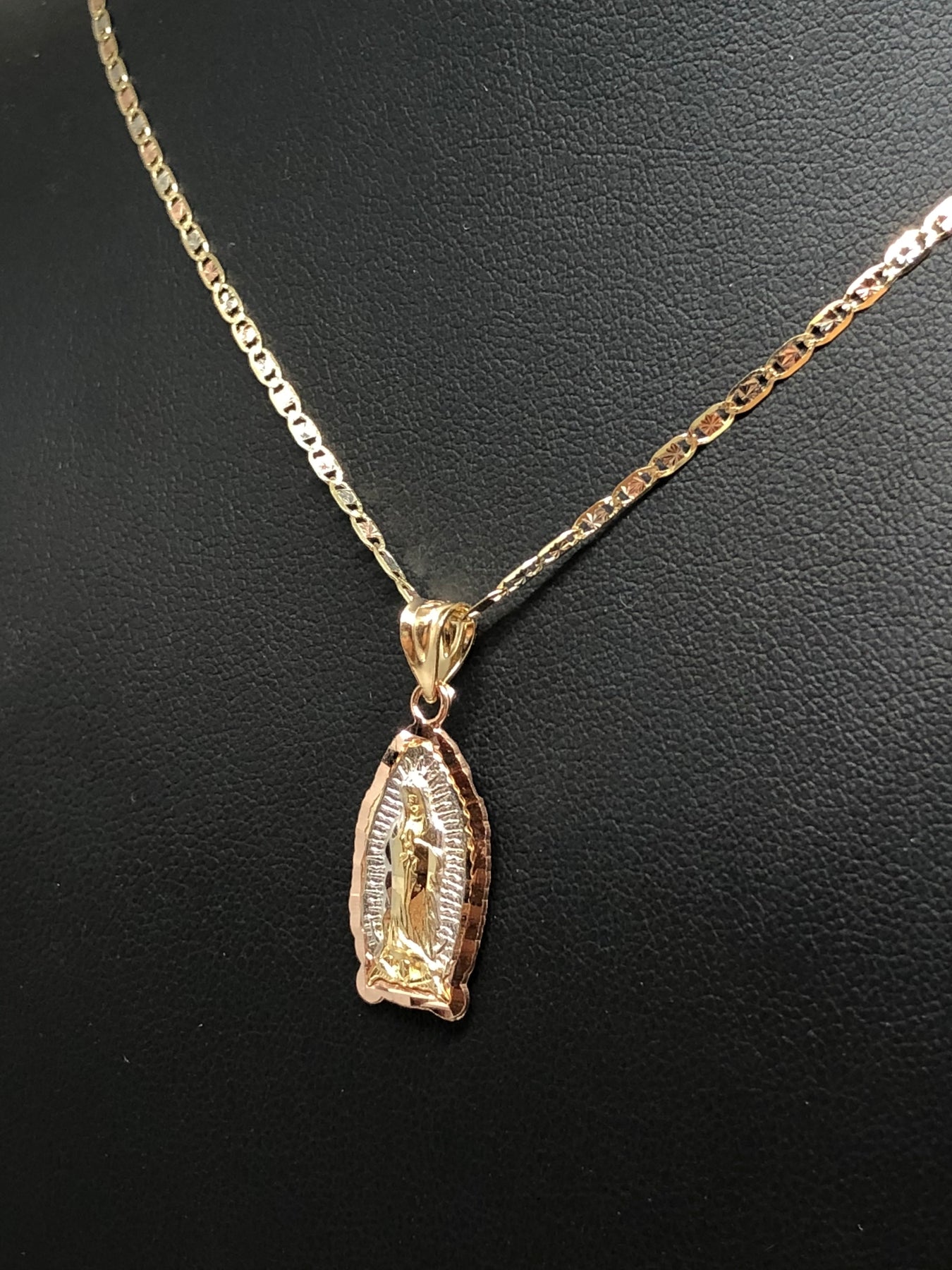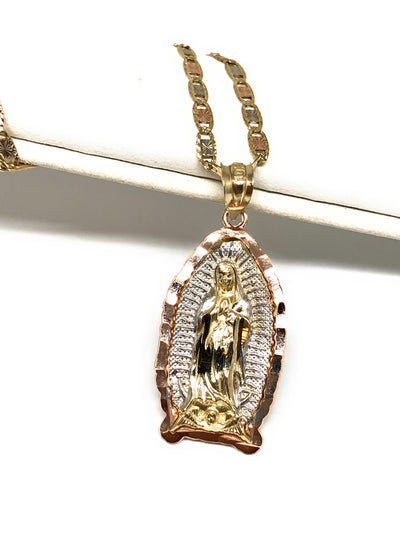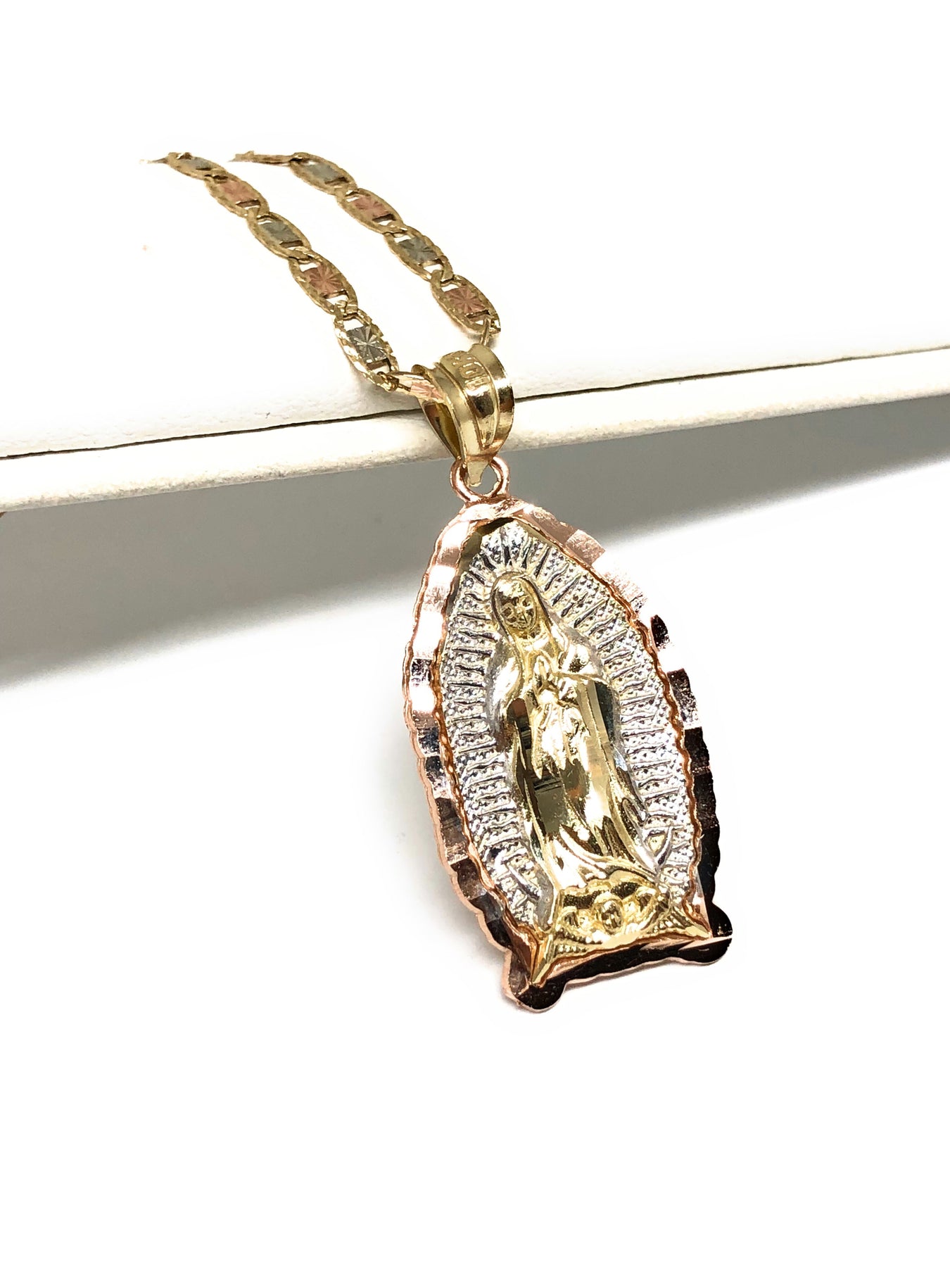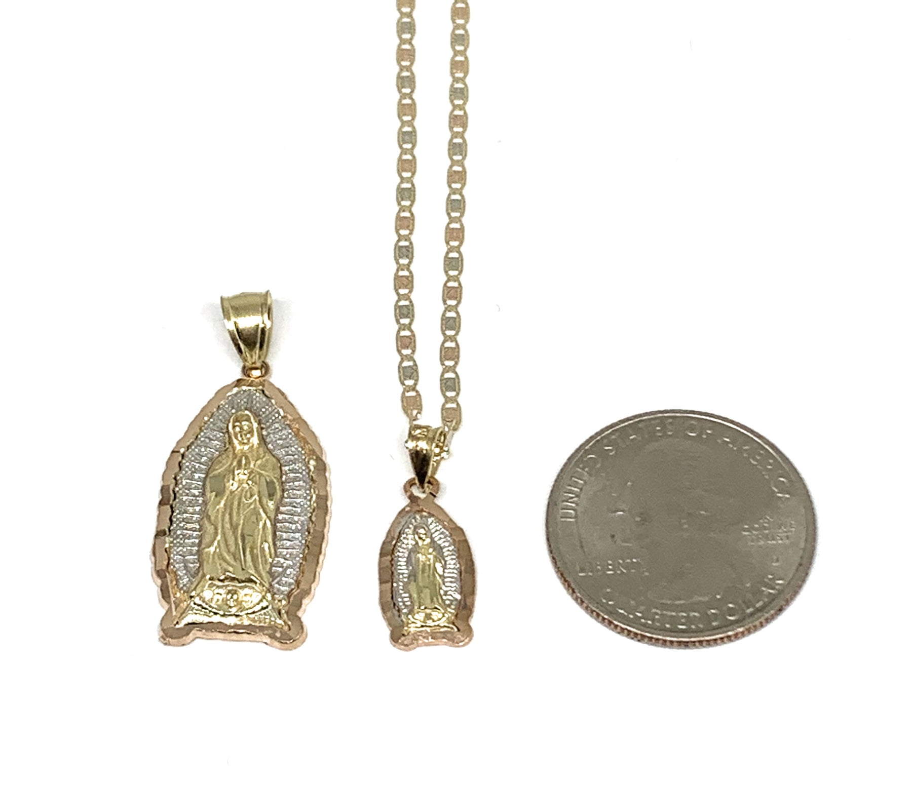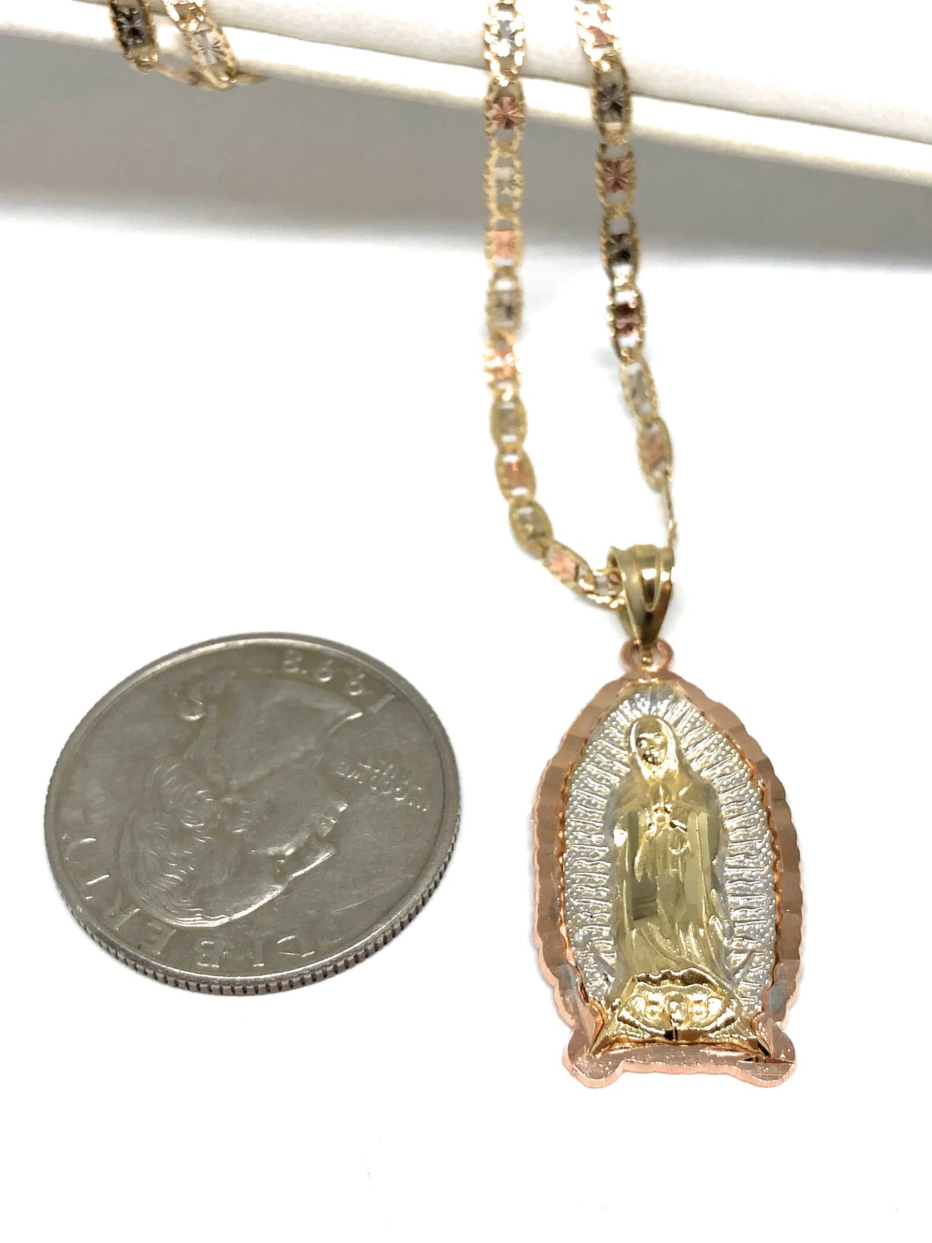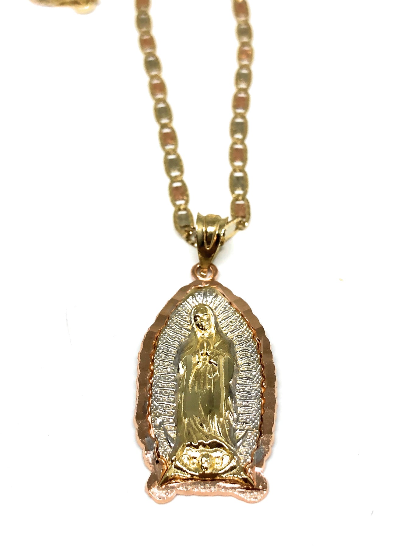 10k Solid Gold Tri-Color Virrgin Mary Pendant Necklace Virrgen Gaudalupe Valentina Chain (SM,LG)