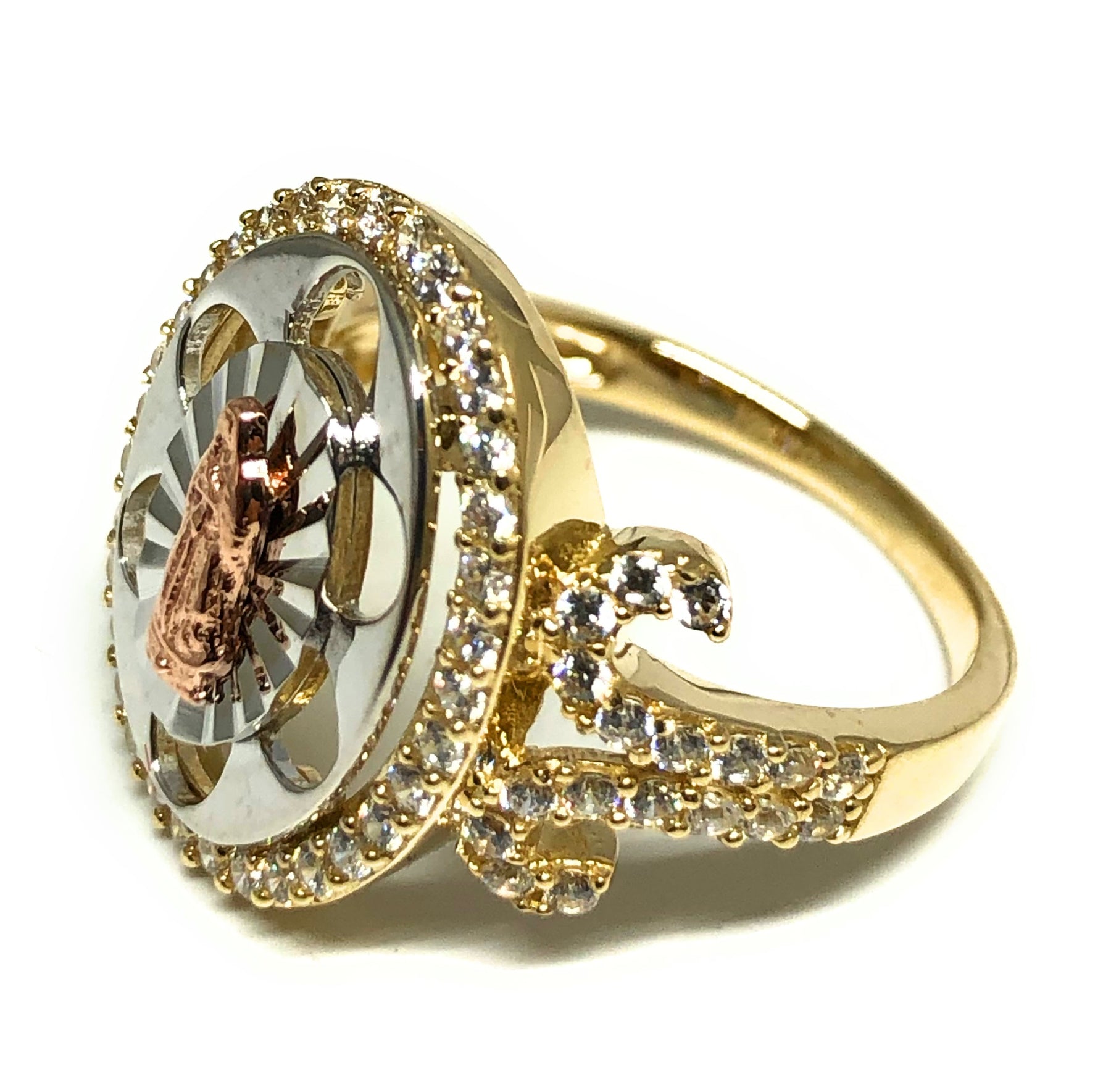 - Tri-Color Gold Virgin Mary CZ Ring 10k solid gold guaranteed.