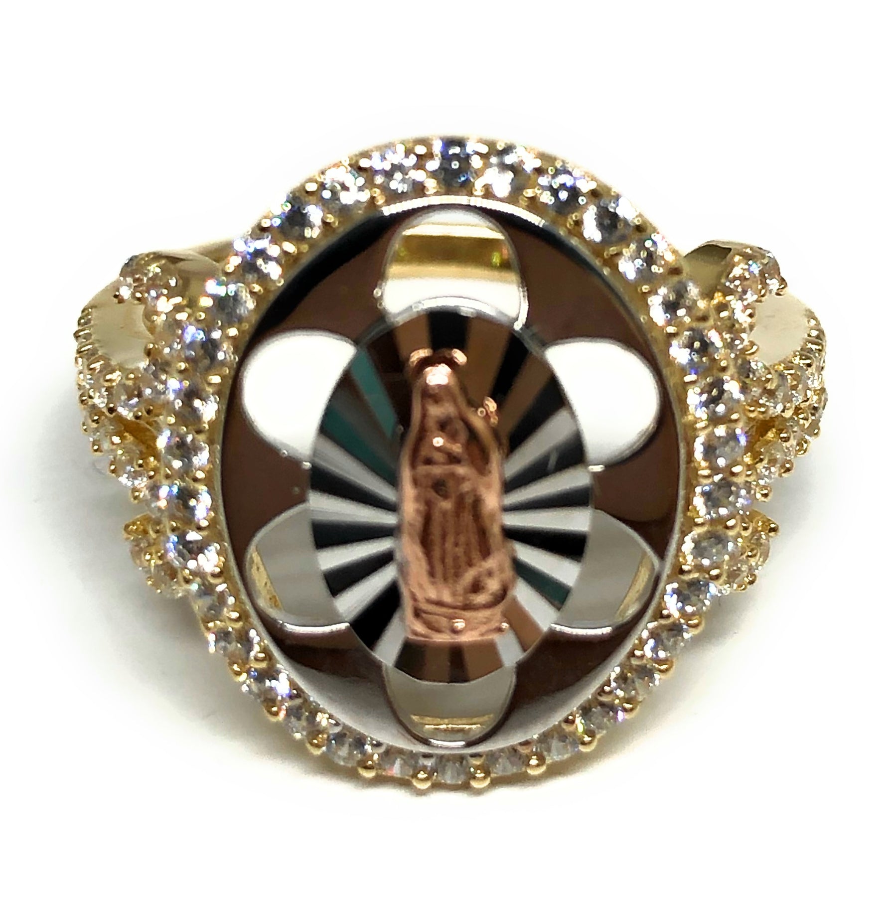 10k Solid Gold Tri-Color Virrgin Mary Round CZ Ring (FC 04)