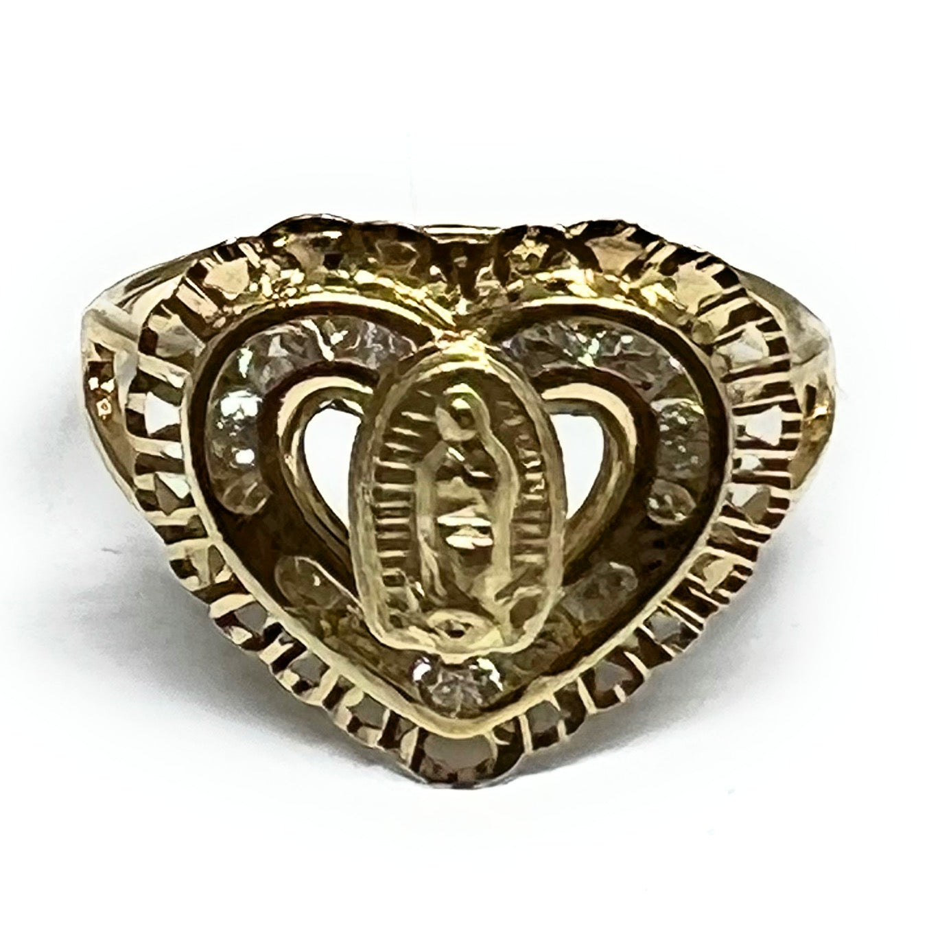 10k Solid Gold Virrgin Mary Heart CZ Ring