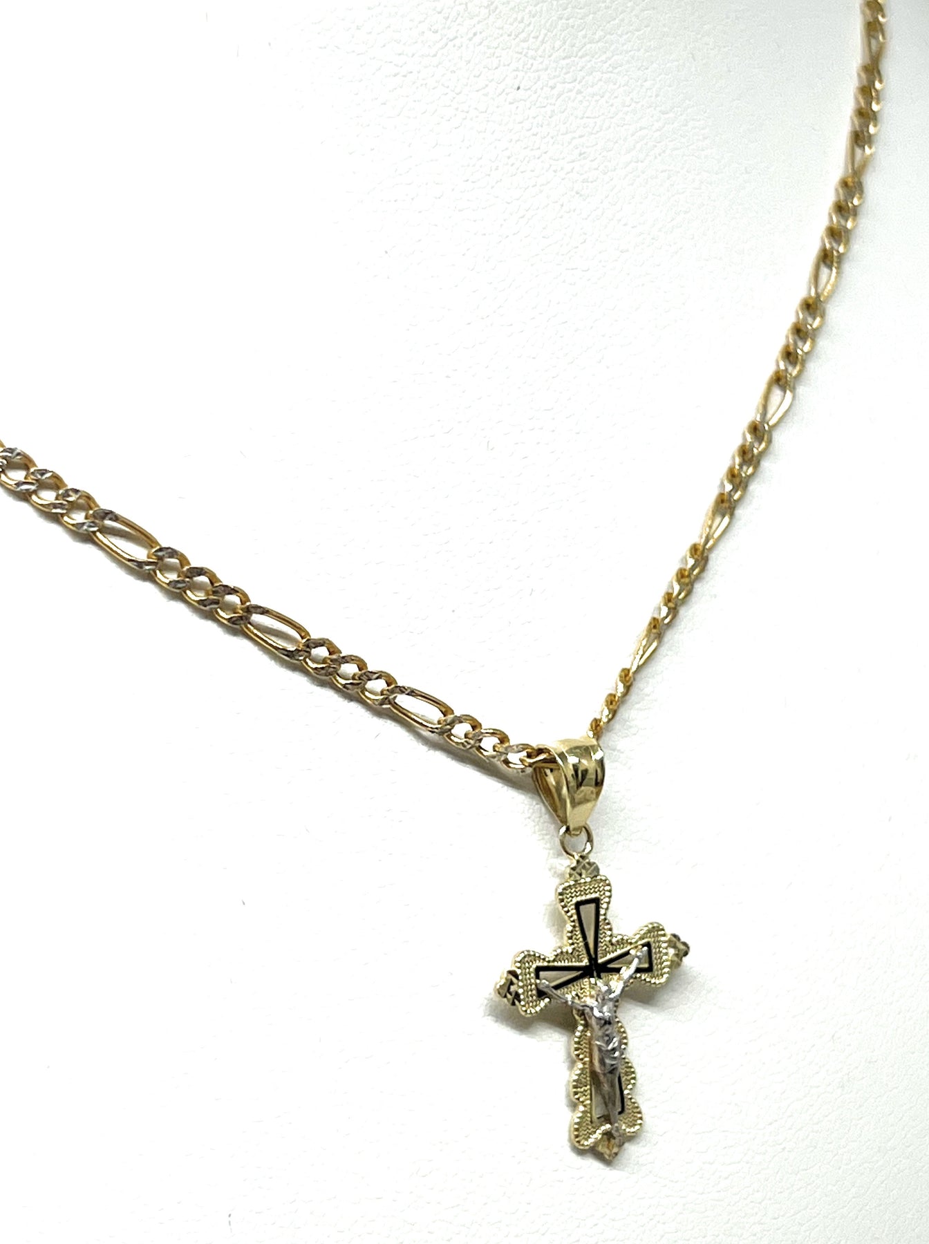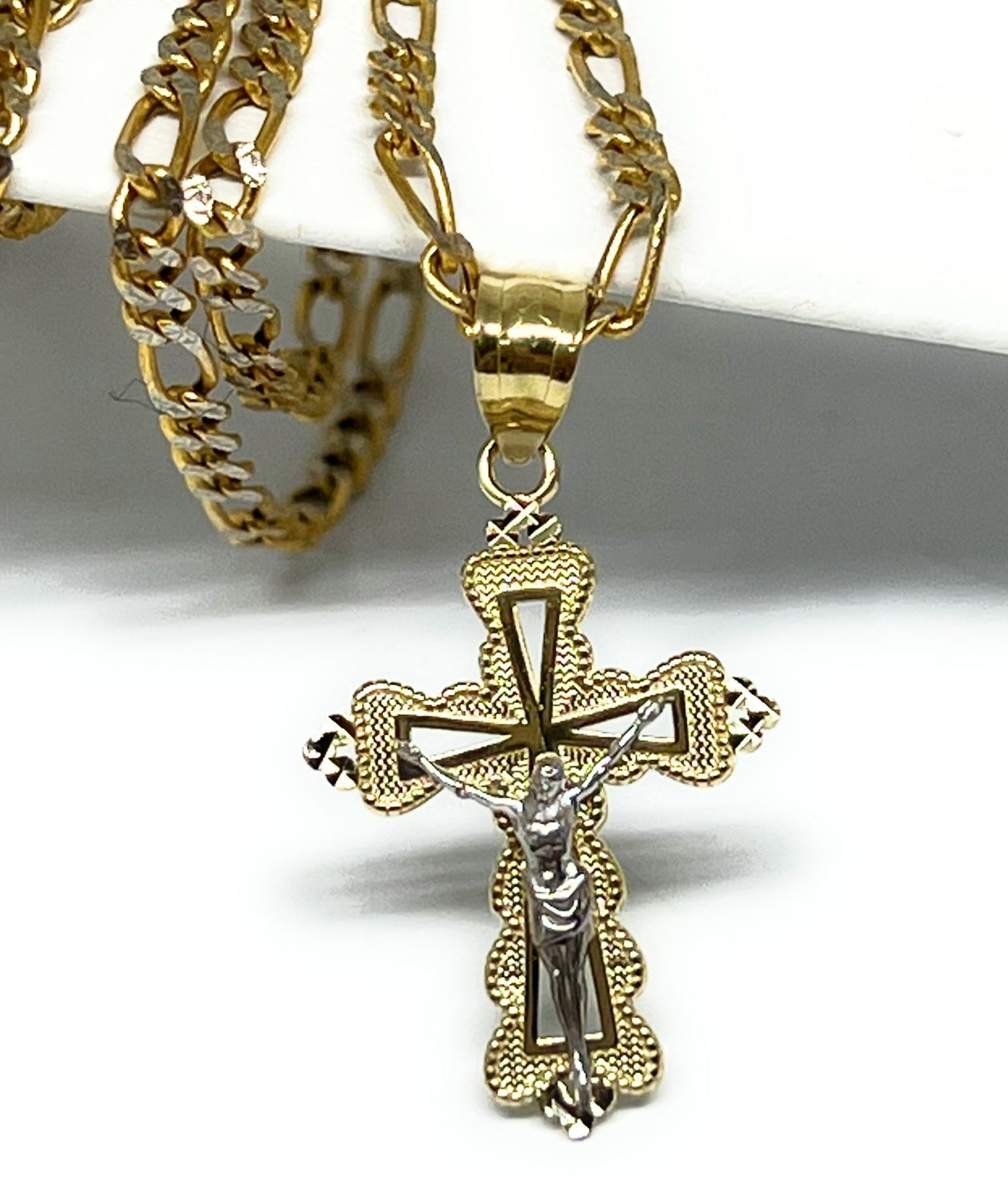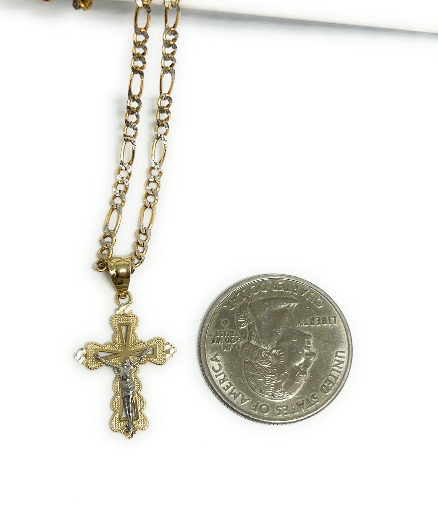 10k Solid Gold Yellow 2-Tone Jesus SMALL Cross Crucifix Pendant Necklace