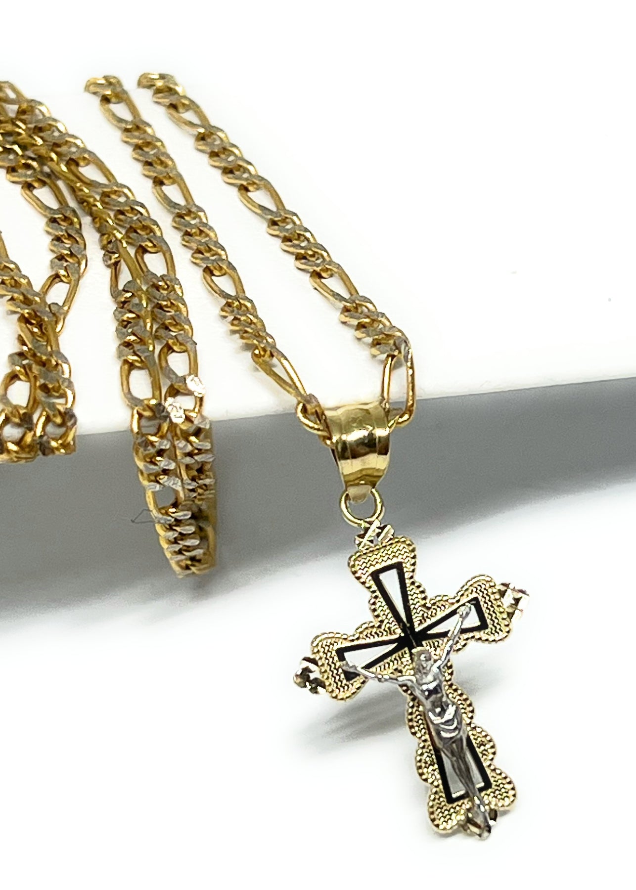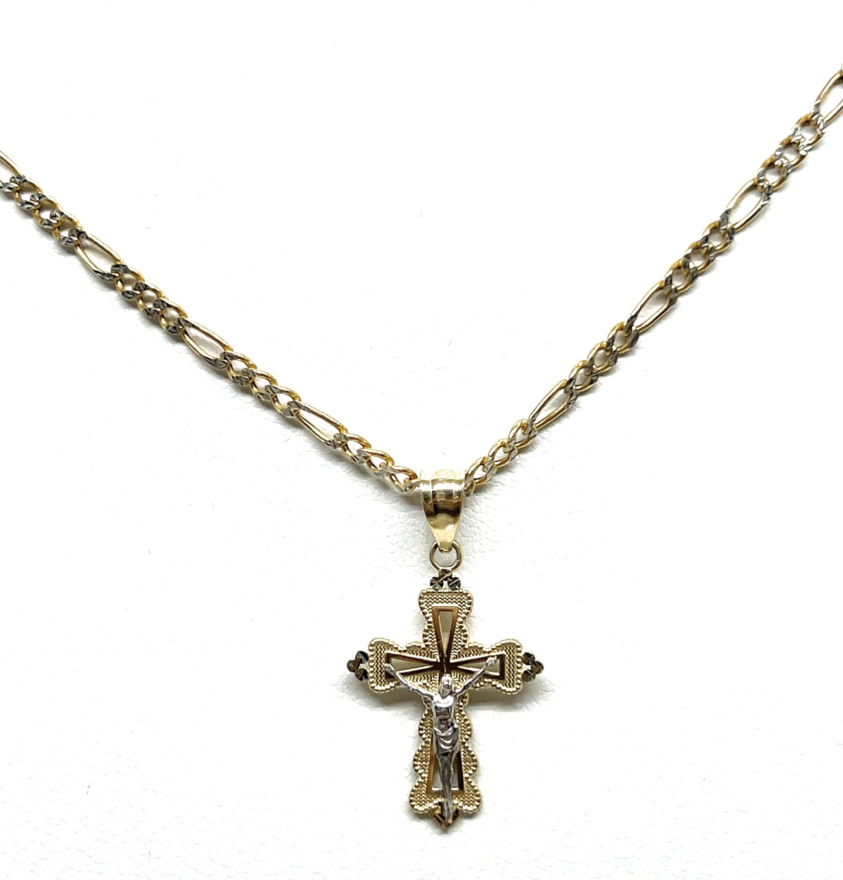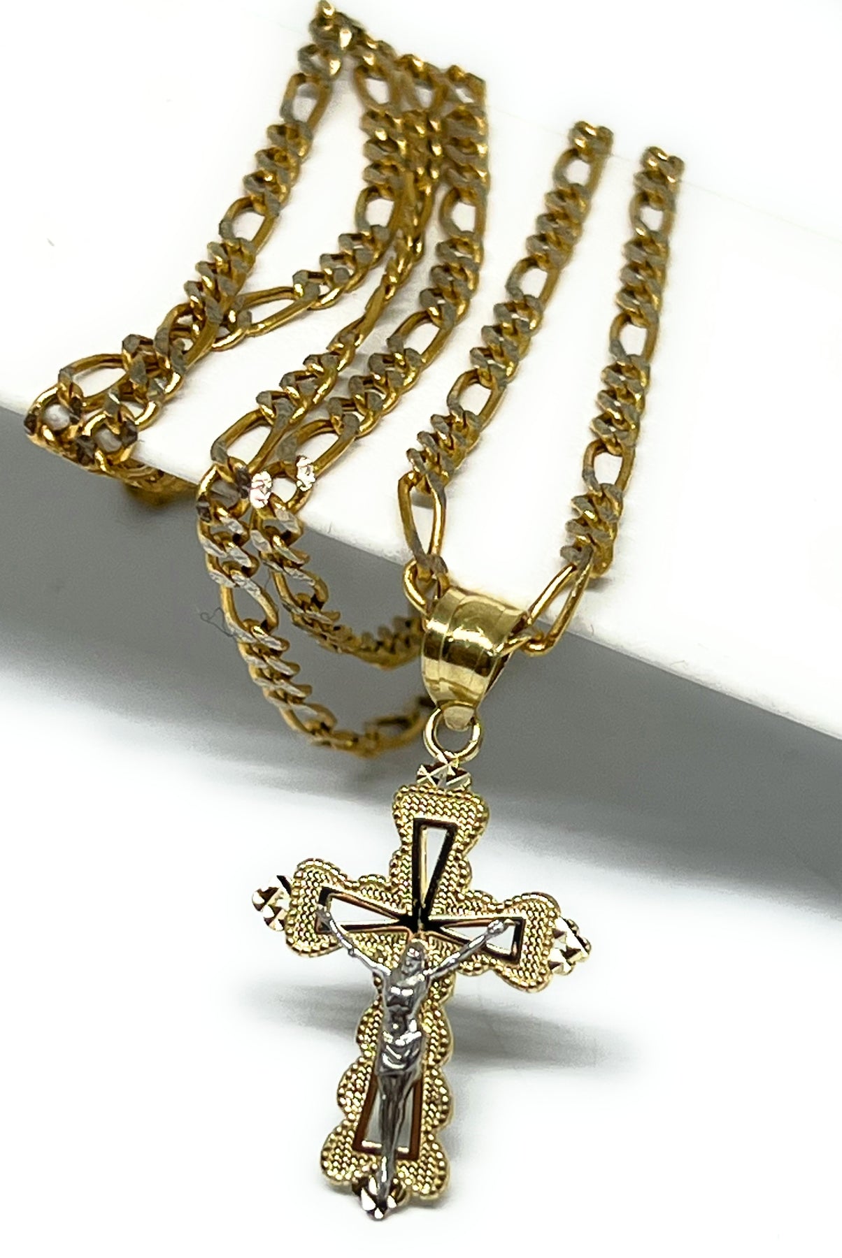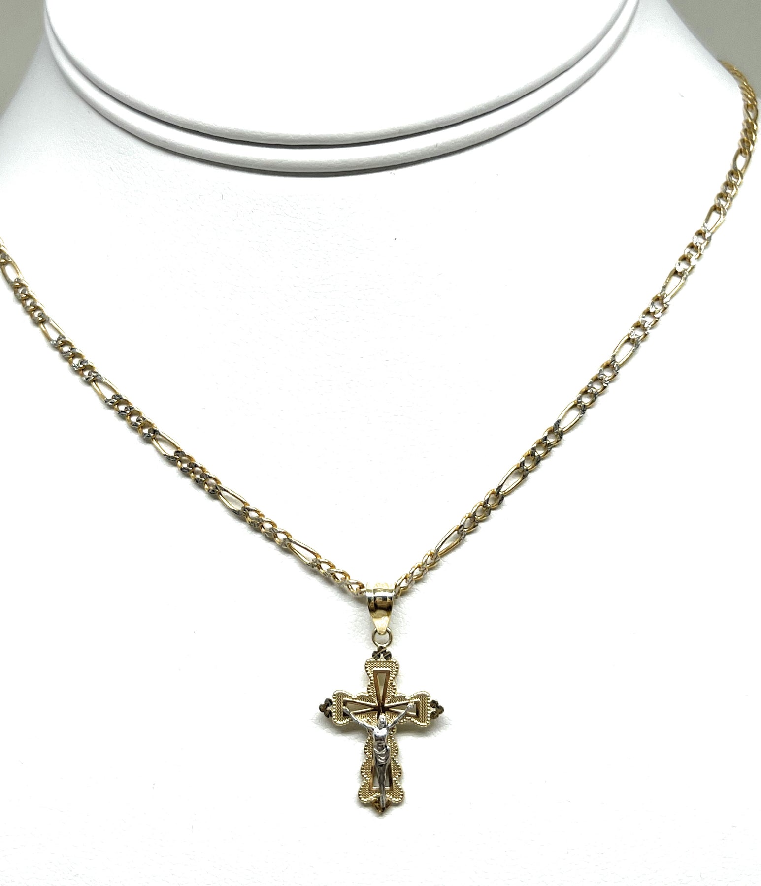 10k Solid Gold Yellow 2-Tone Jesus SMALL Cross Crucifix Pendant Necklace