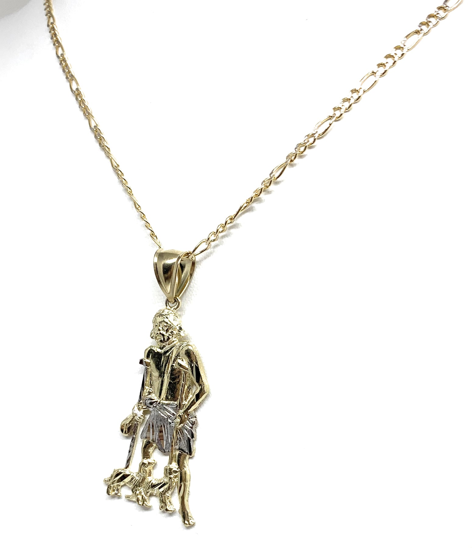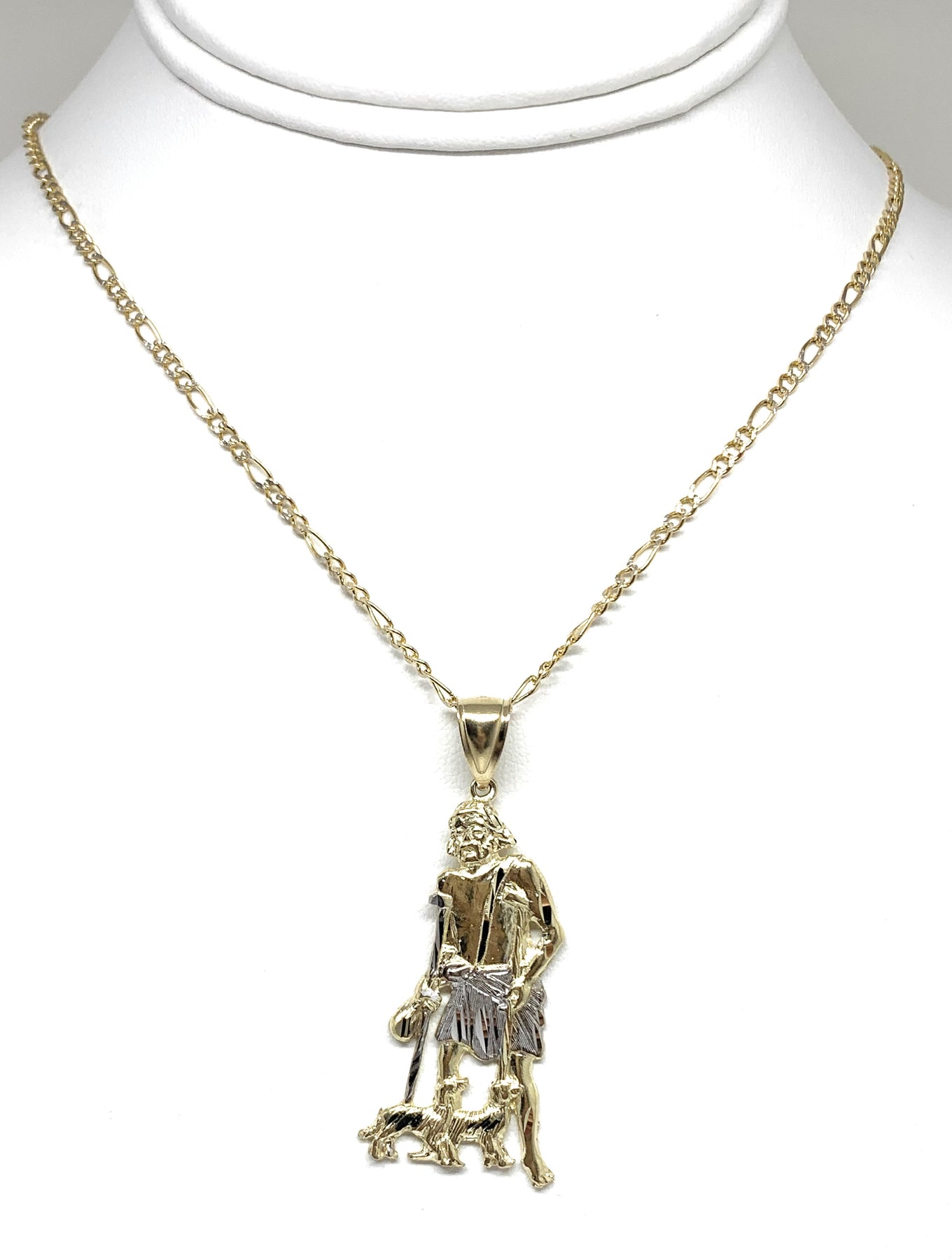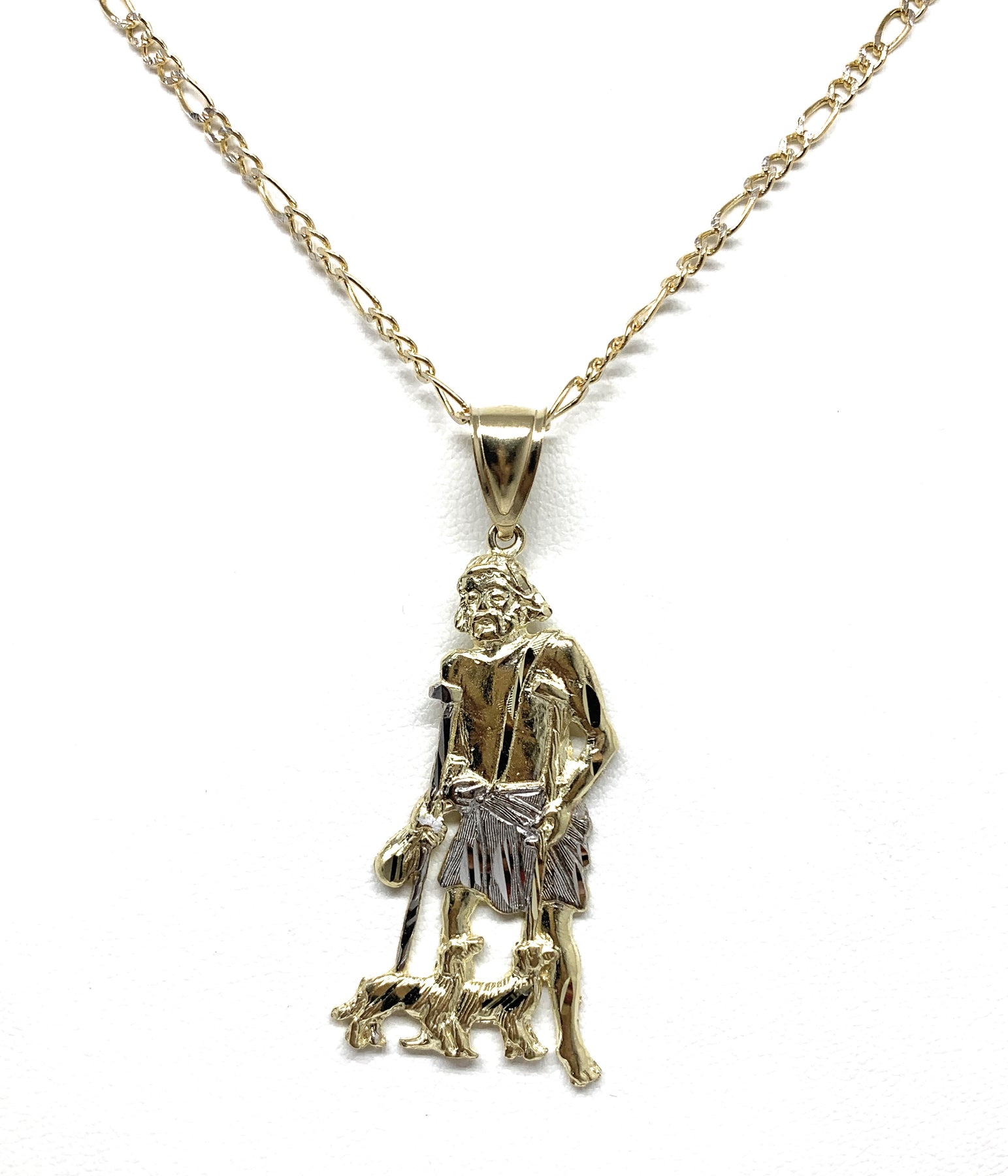10k Solid Gold Yellow 2-Tone Saint Lazarus San Lazaro Pendant Necklace