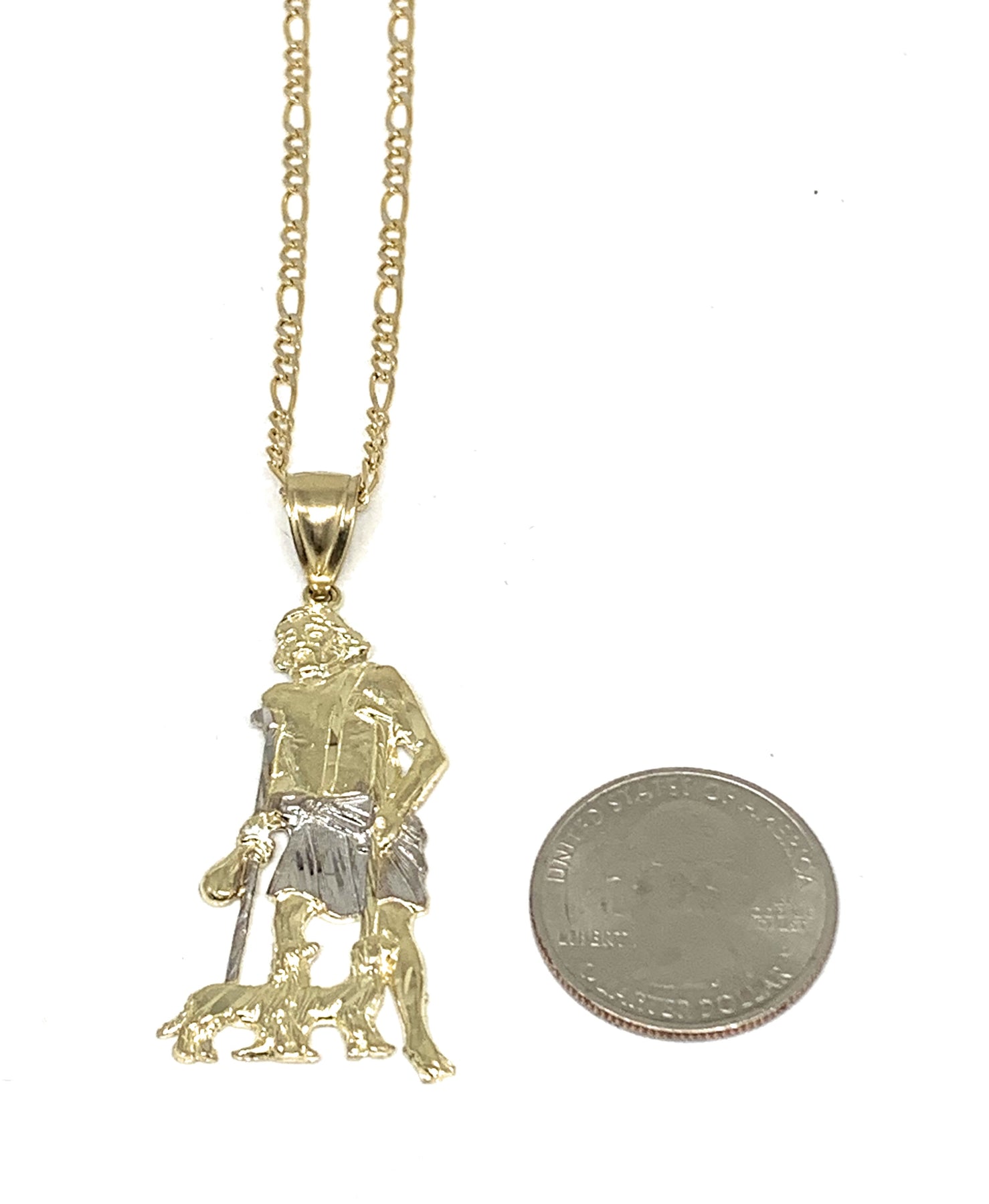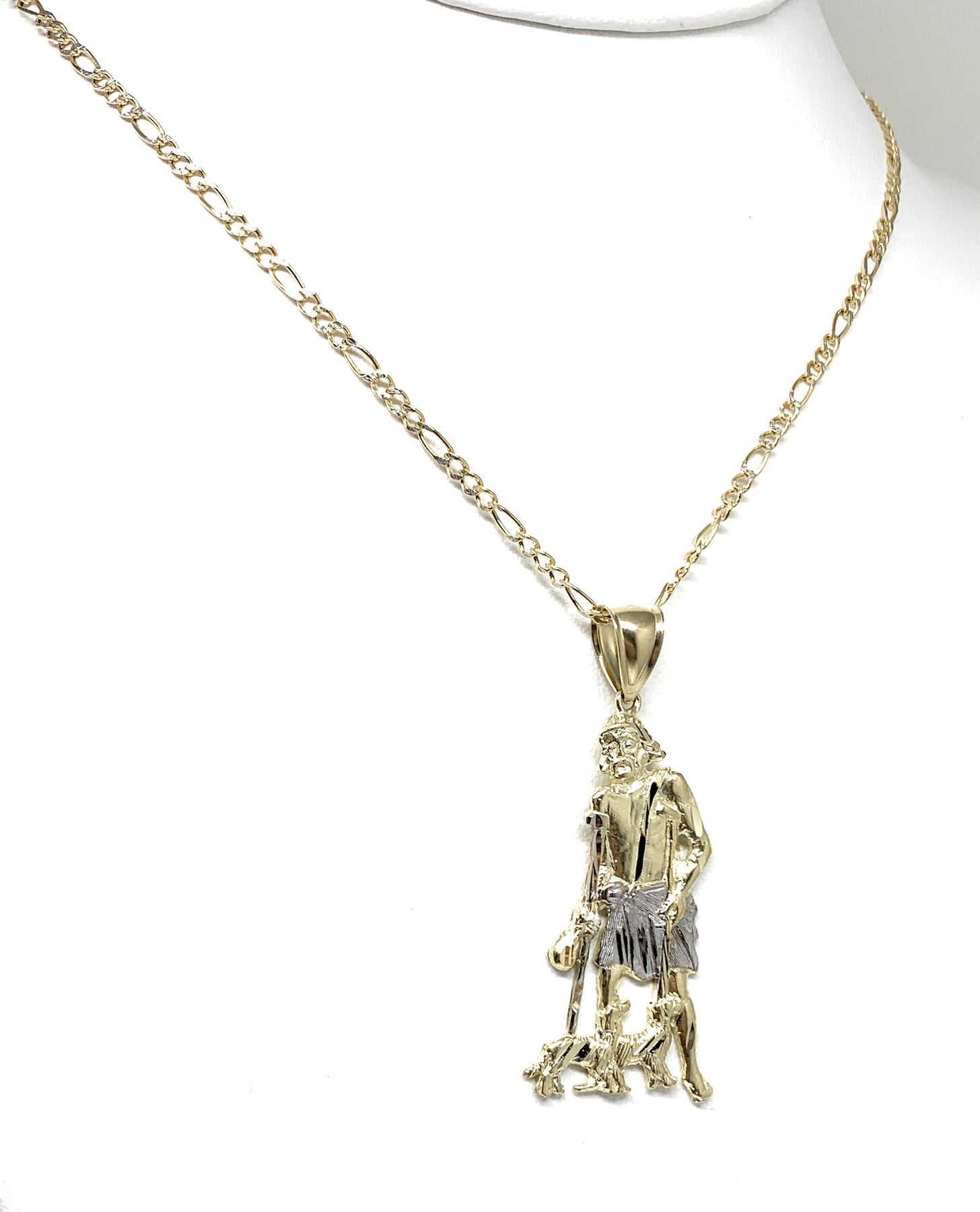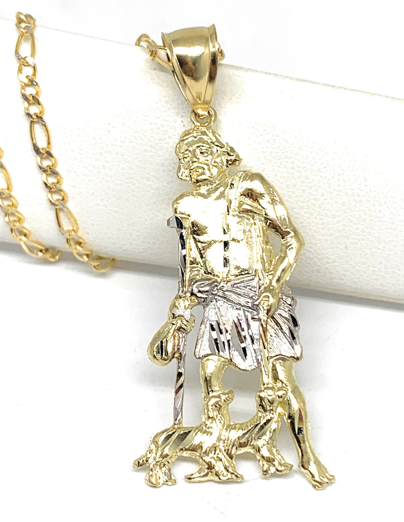 10k Solid Gold Yellow 2-Tone Saint Lazarus San Lazaro Pendant Necklace