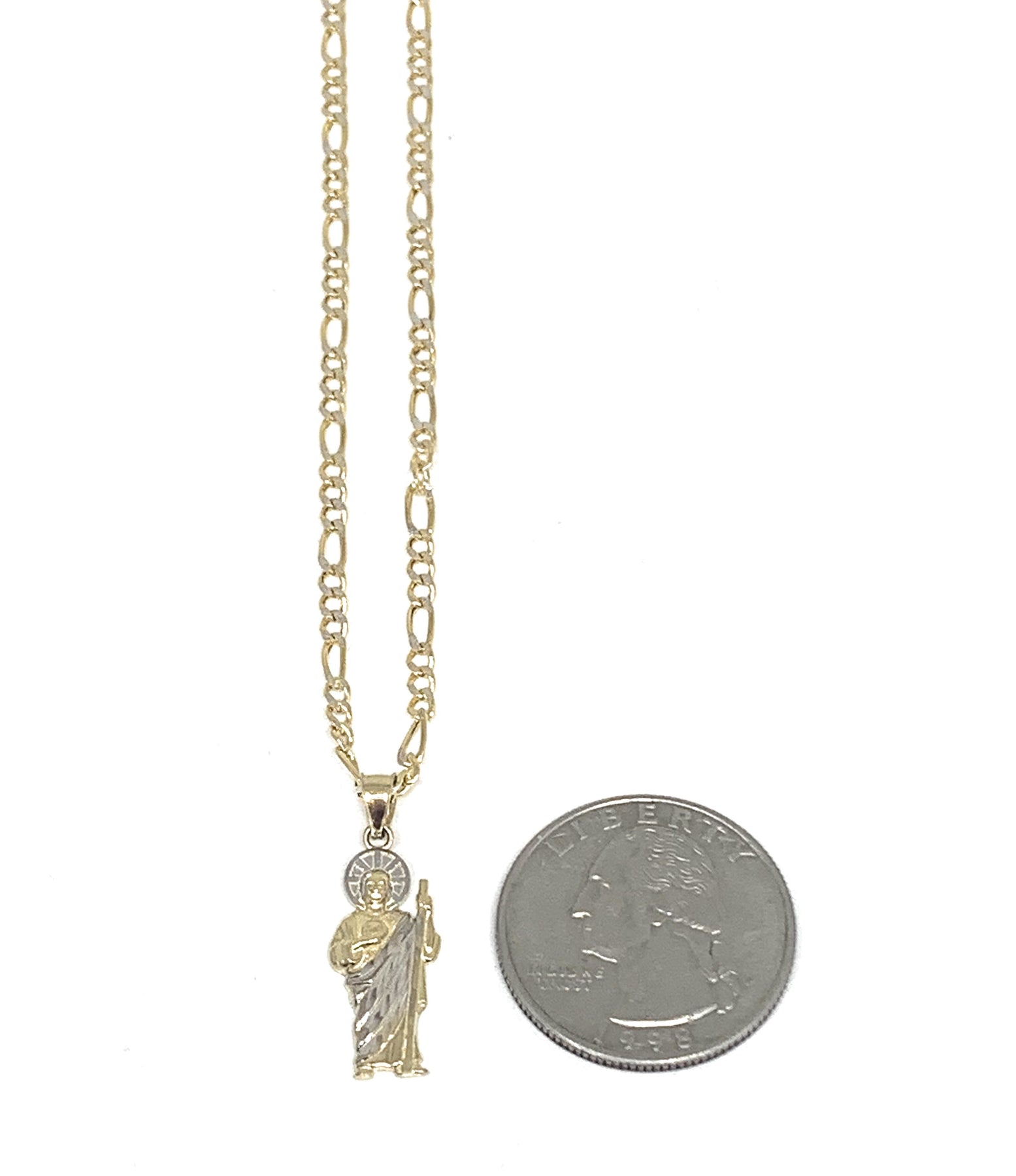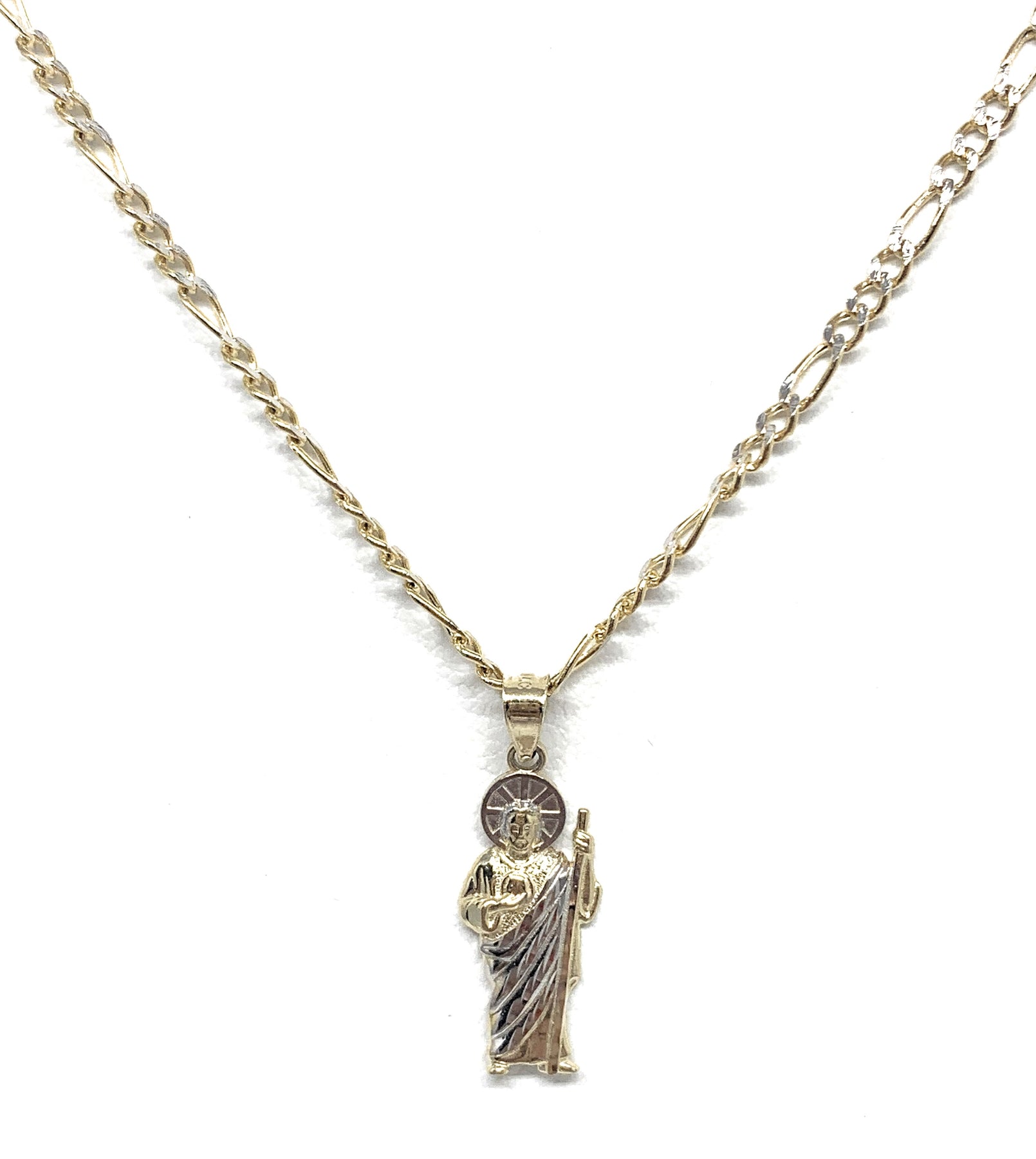 • San Judas with Figaro Style Chain 10k solid gold guaranteed.