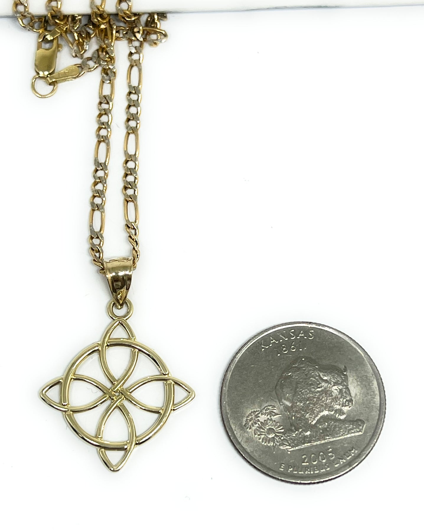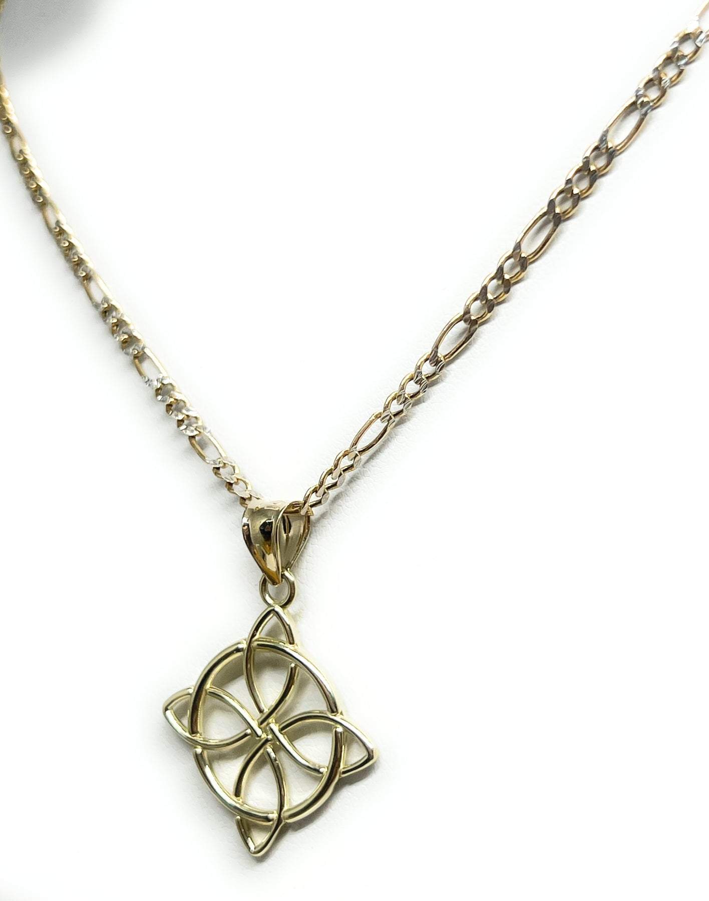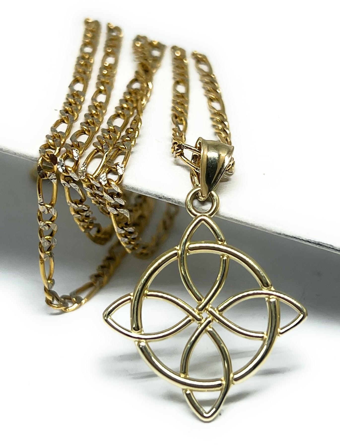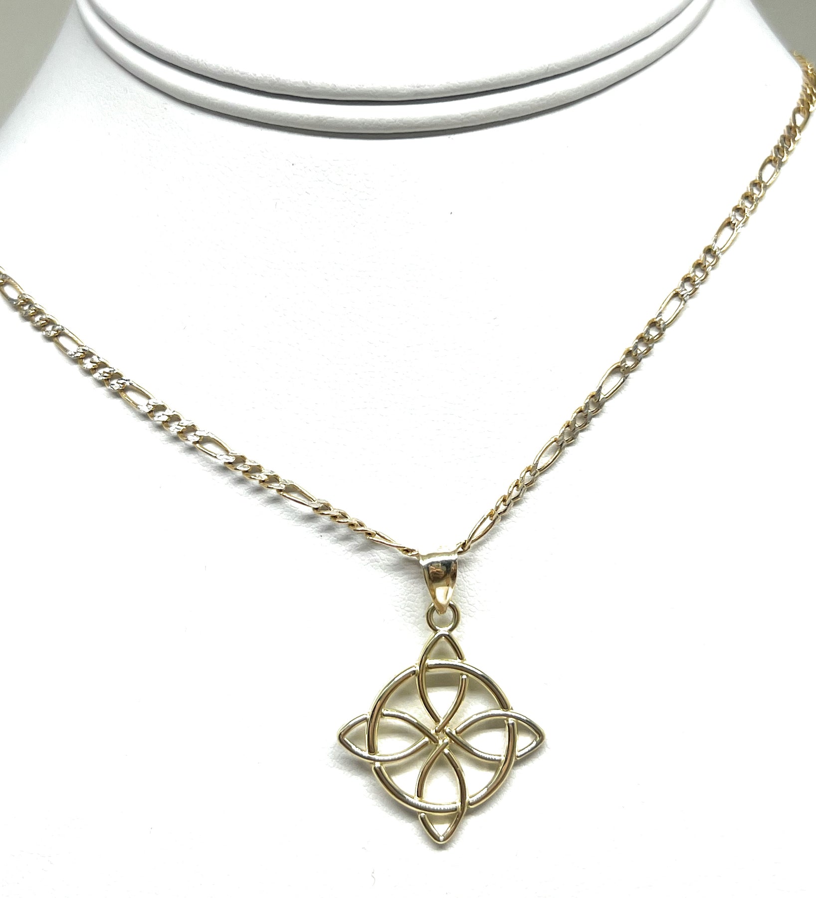 • Classic Celtic Knot pendant with Figaro Style Chain 10k solid gold guaranteed.