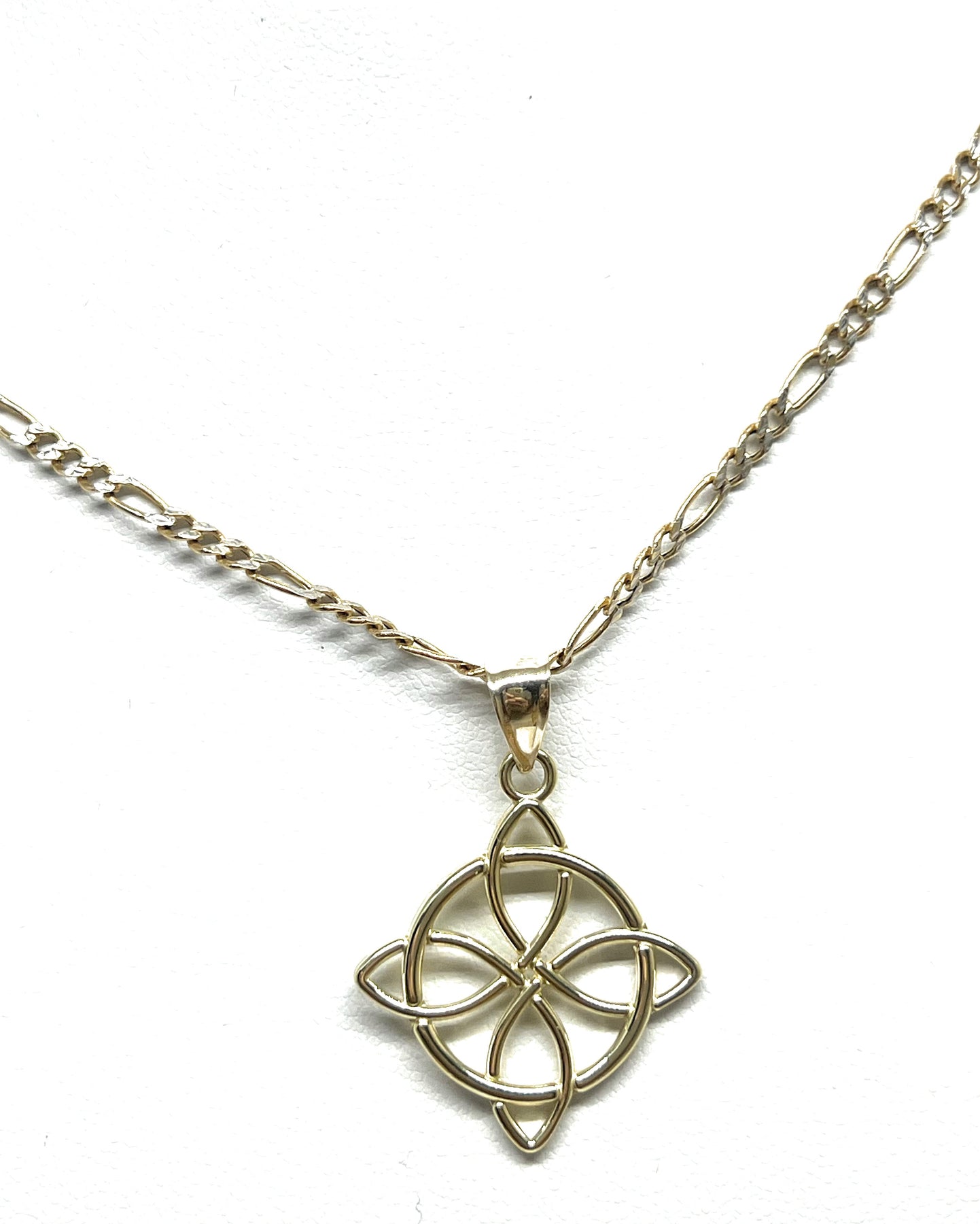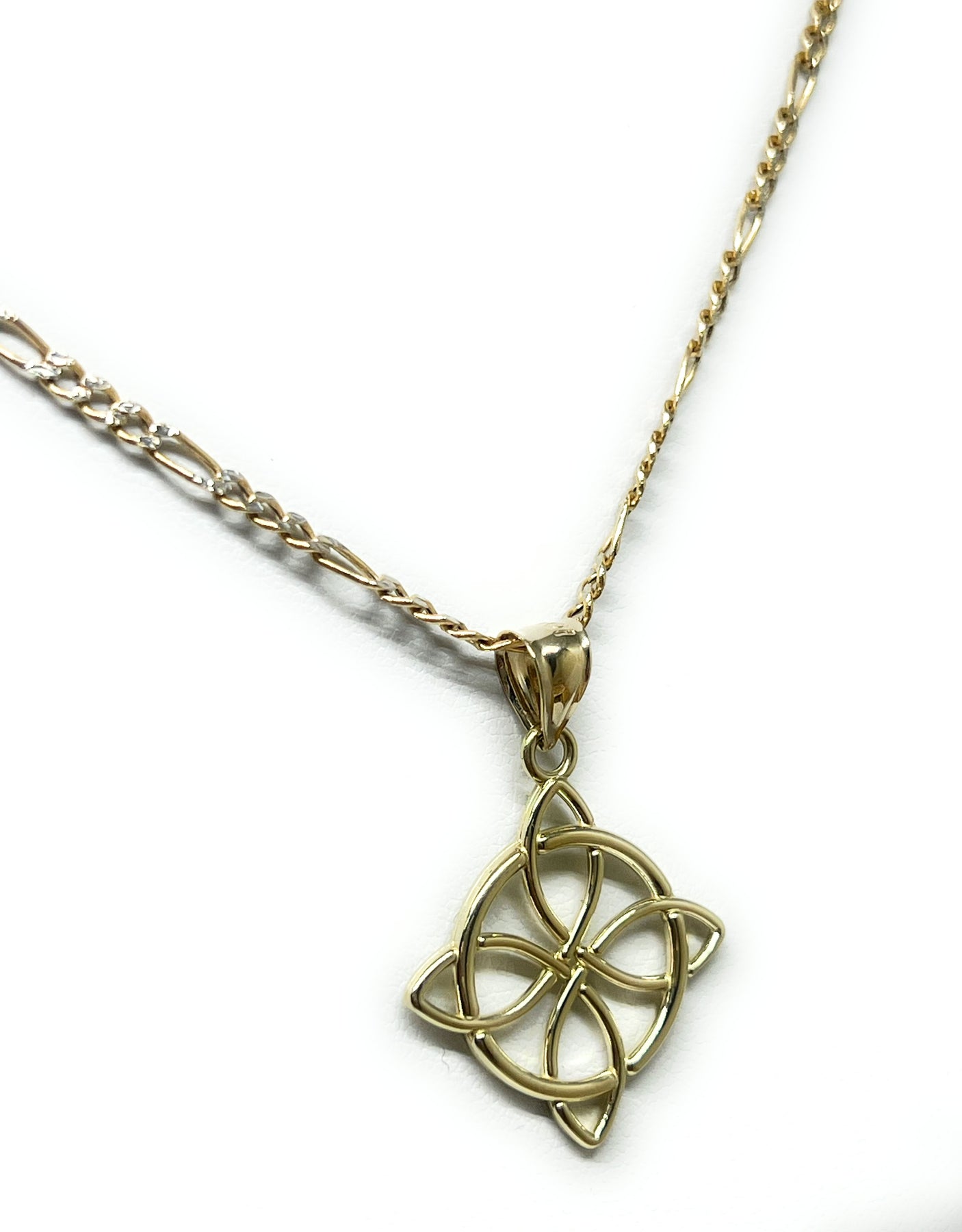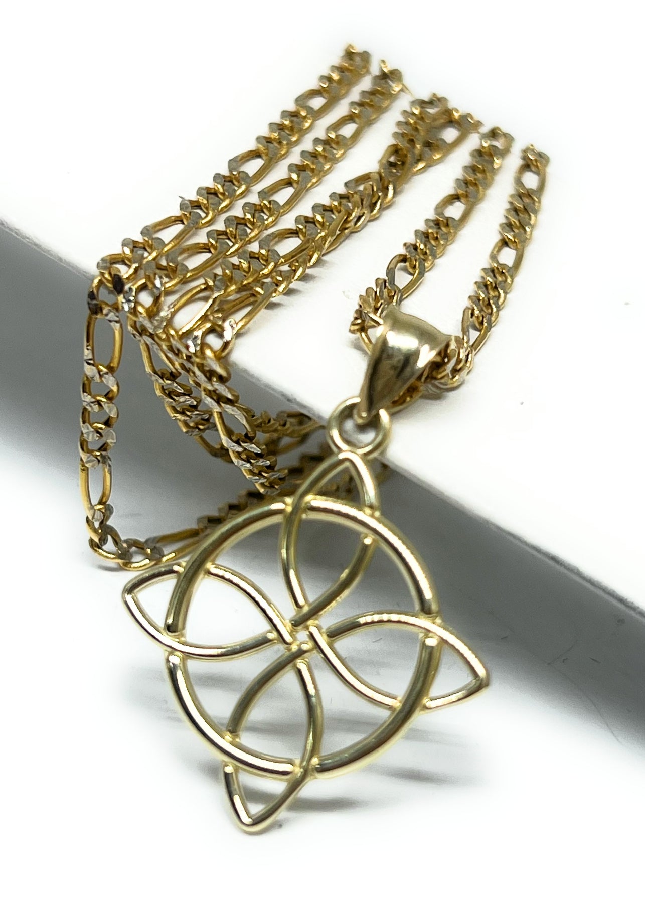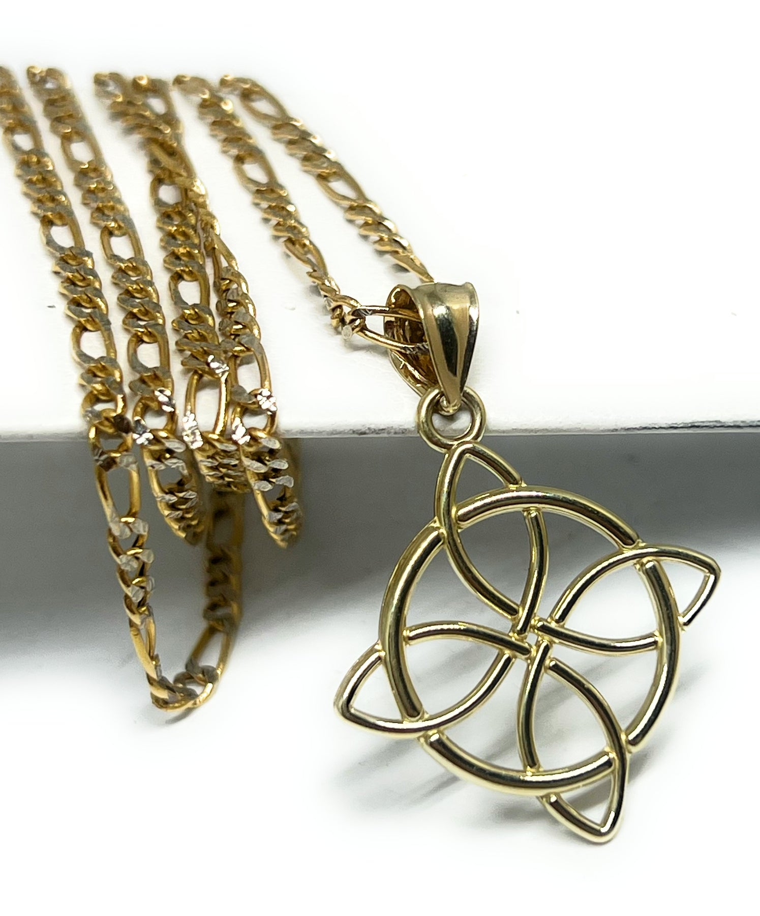 • Classic Celtic Knot pendant with Figaro Style Chain 10k solid gold guaranteed.