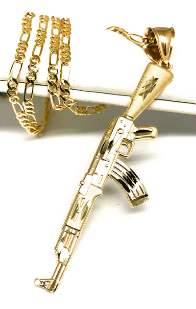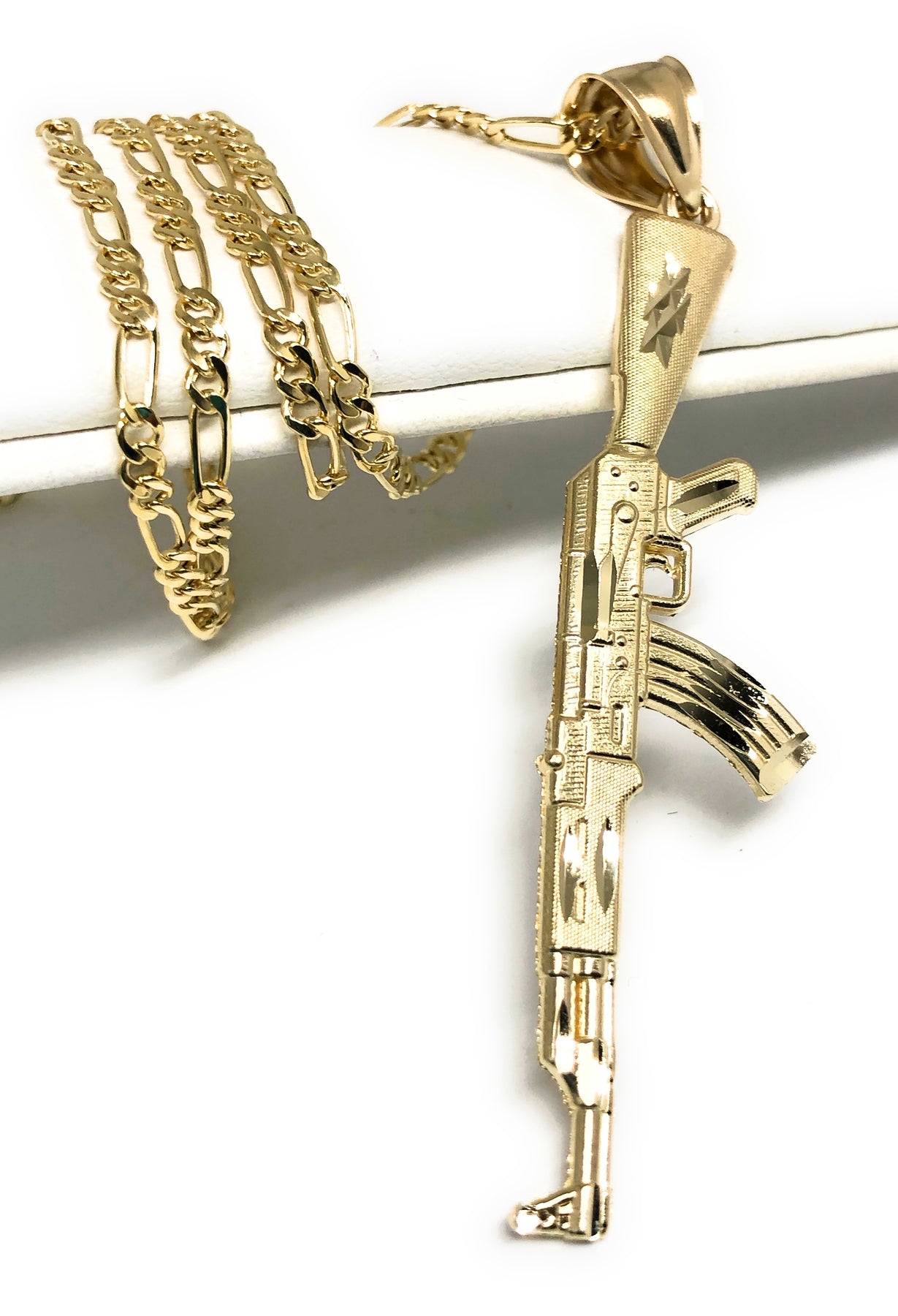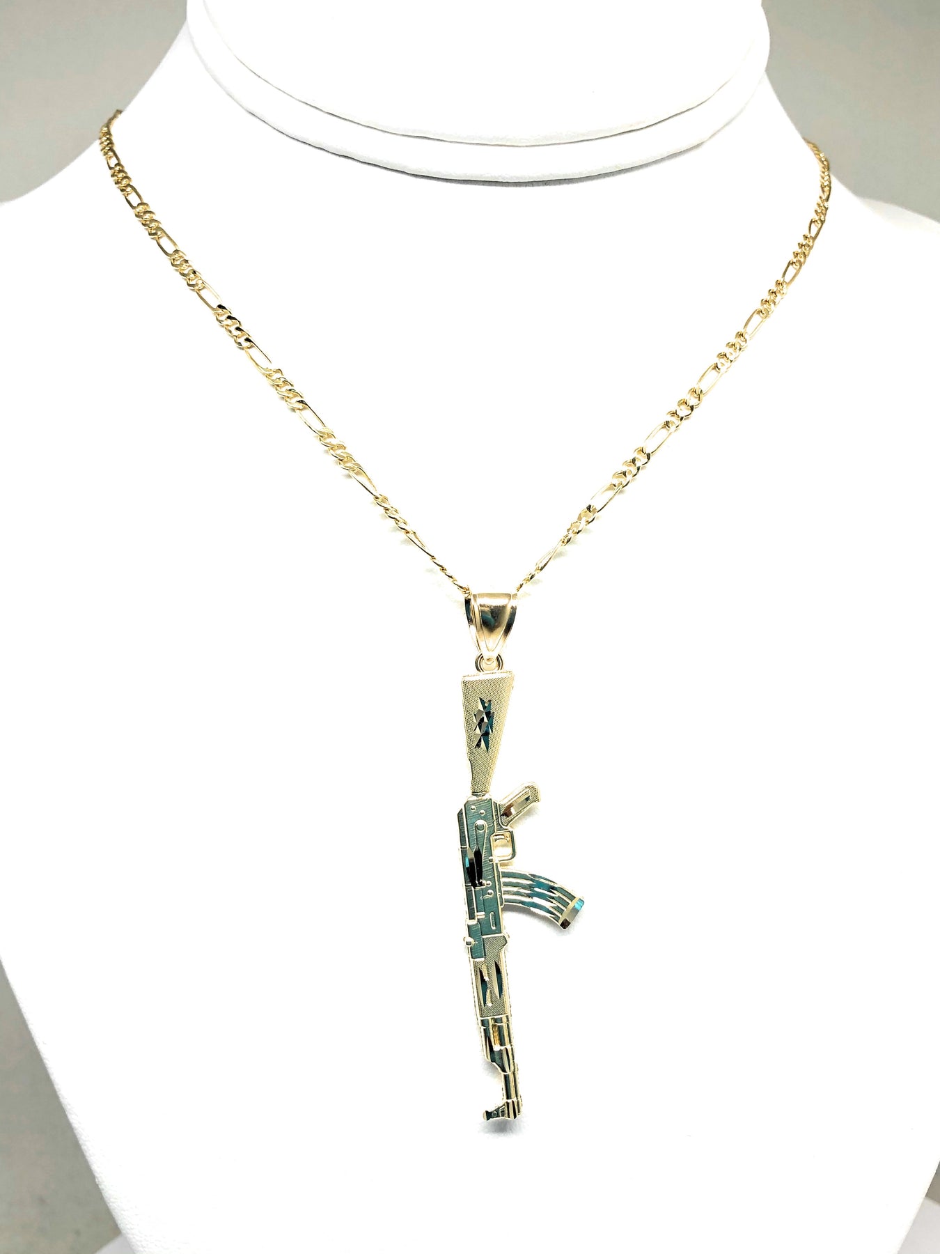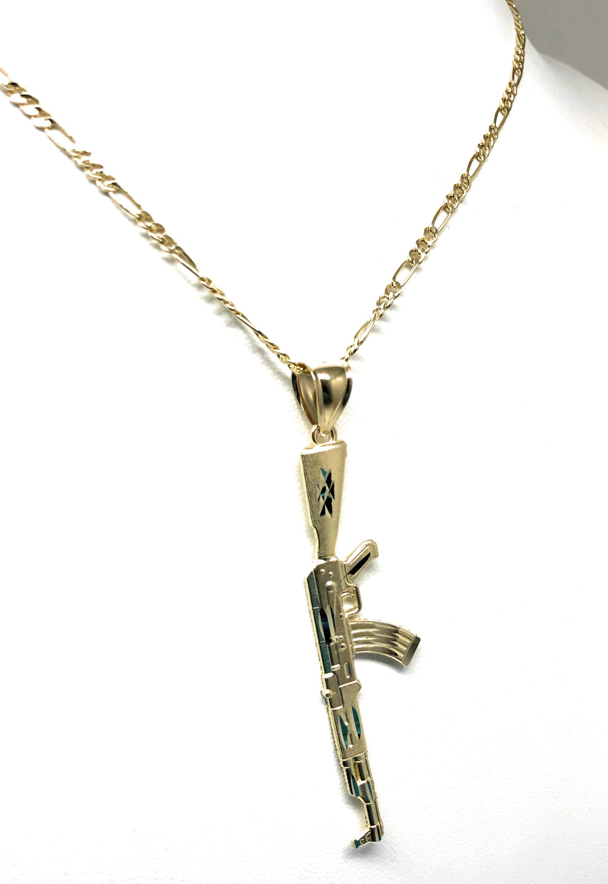 - Machine gun pendant and chain and 10k solid gold guaranteed.