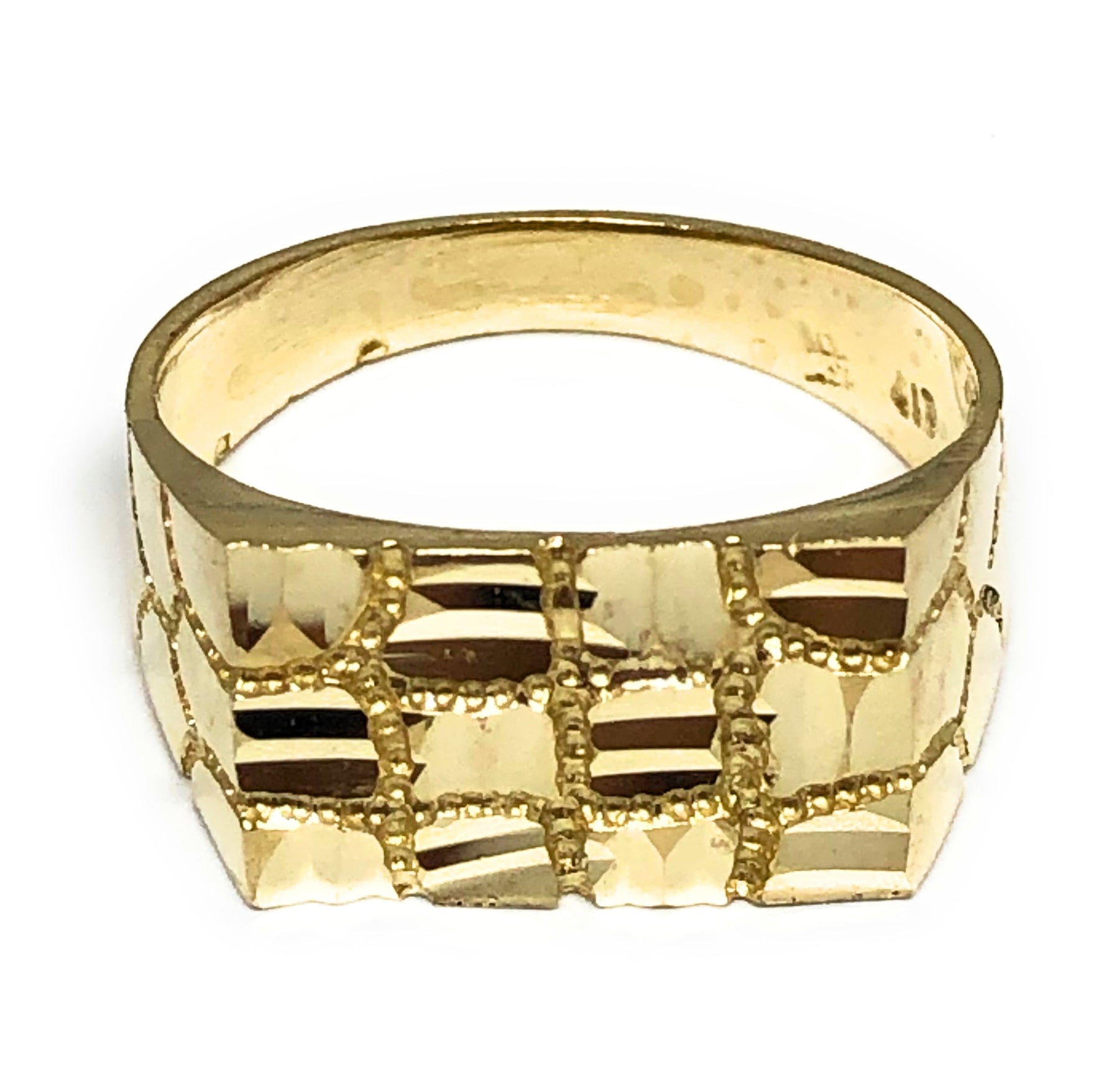 10k Solid Gold Yellow Classic Nugget Square Ring