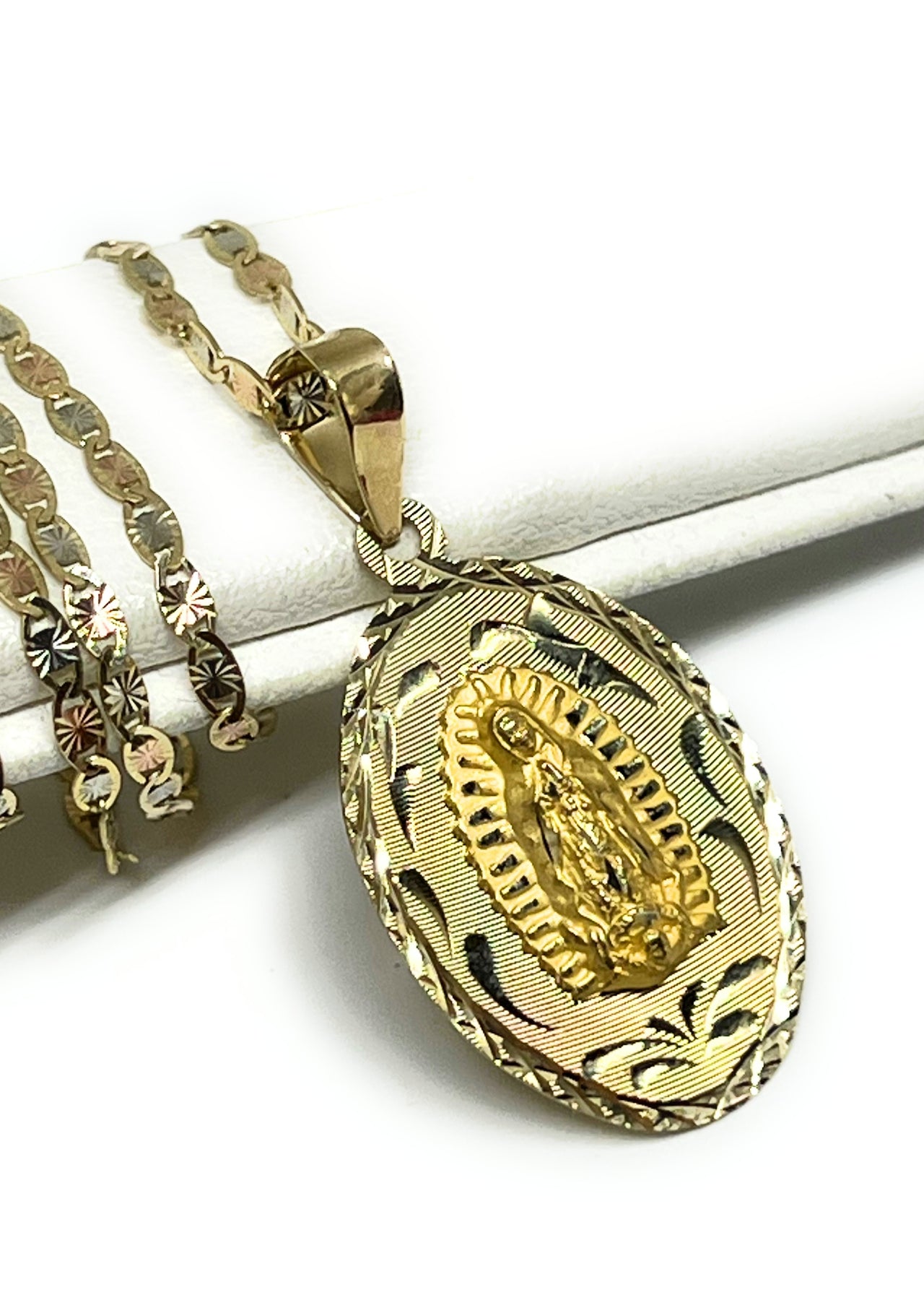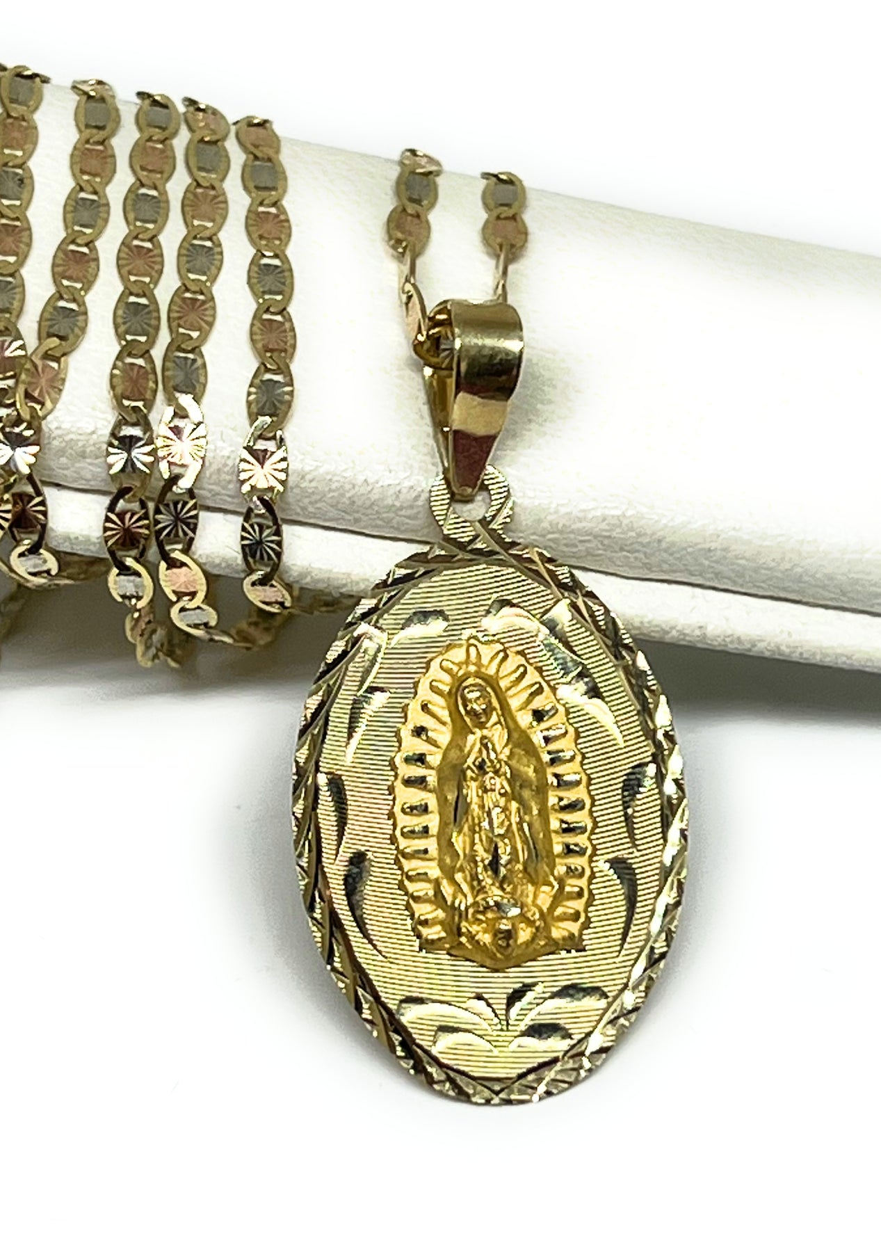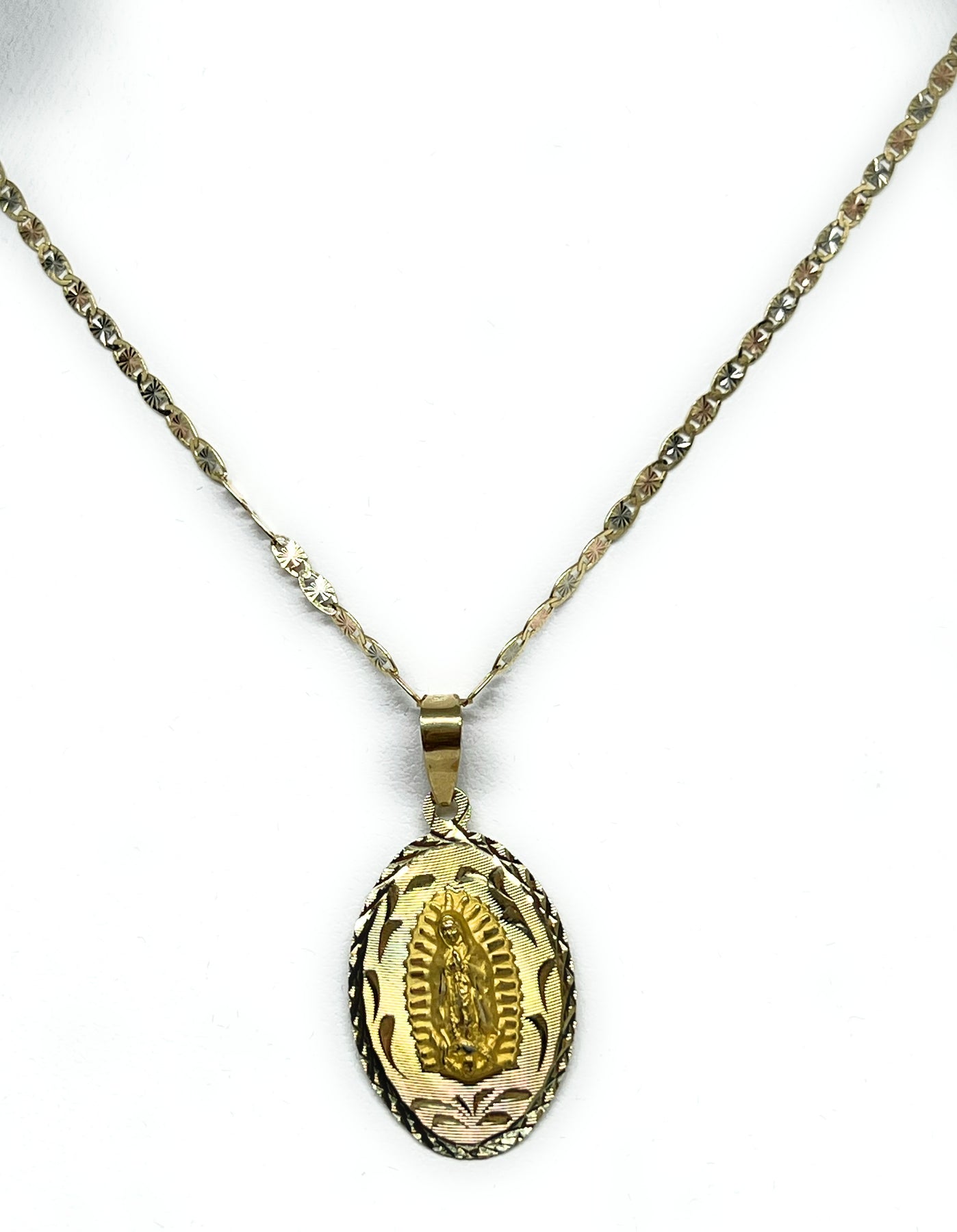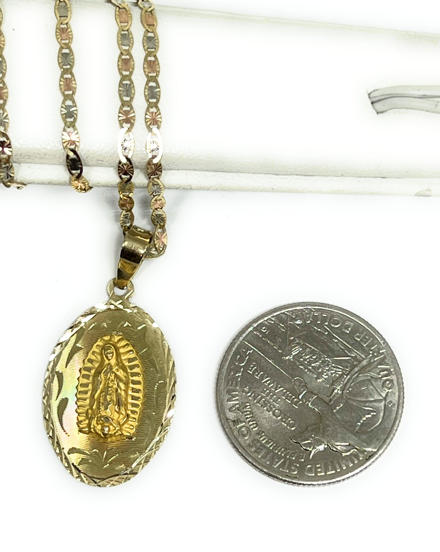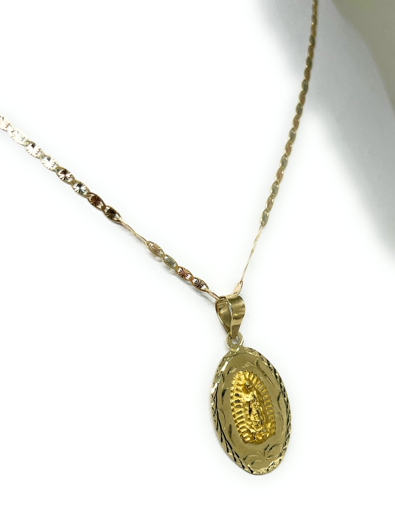 10k Solid Gold Yellow Classic Virrgin Mary Oval Pendant Virrgen Guadalupe (MADE IN MX)