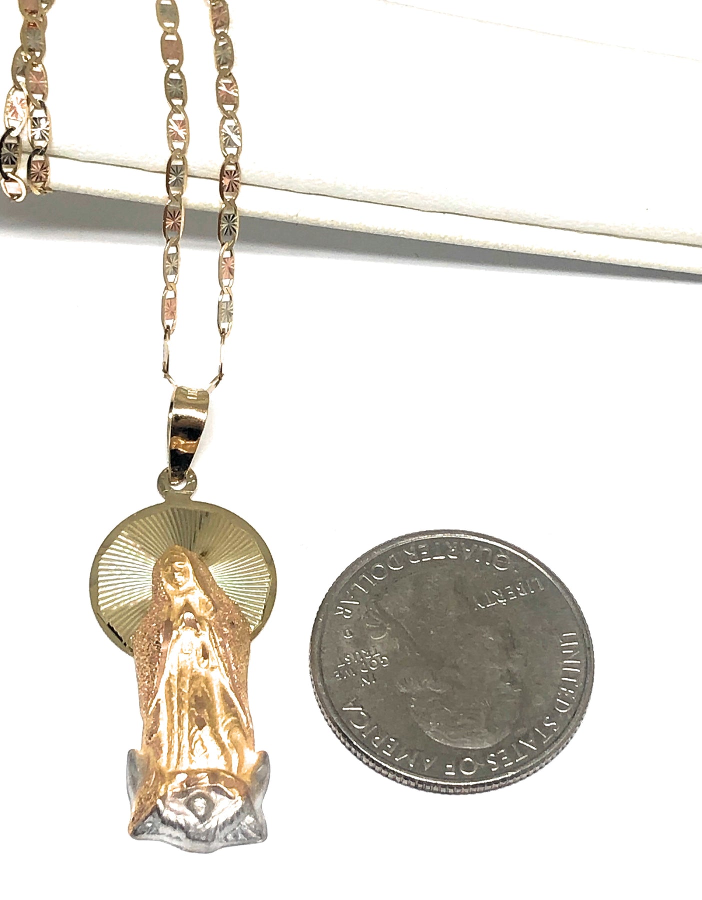 - Virgin Mary pendant and chain and 10k solid gold guaranteed.