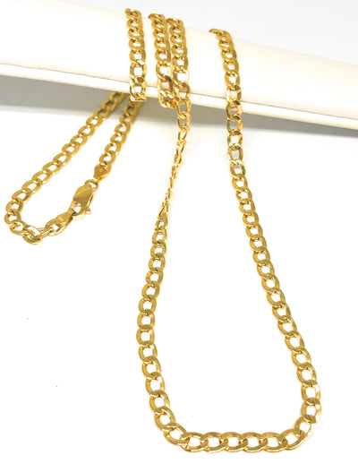 10k Solid Gold Yellow Cuban CURB Link Chain 18-24 inches 4.5mm Width (Semi-Hollow Style)