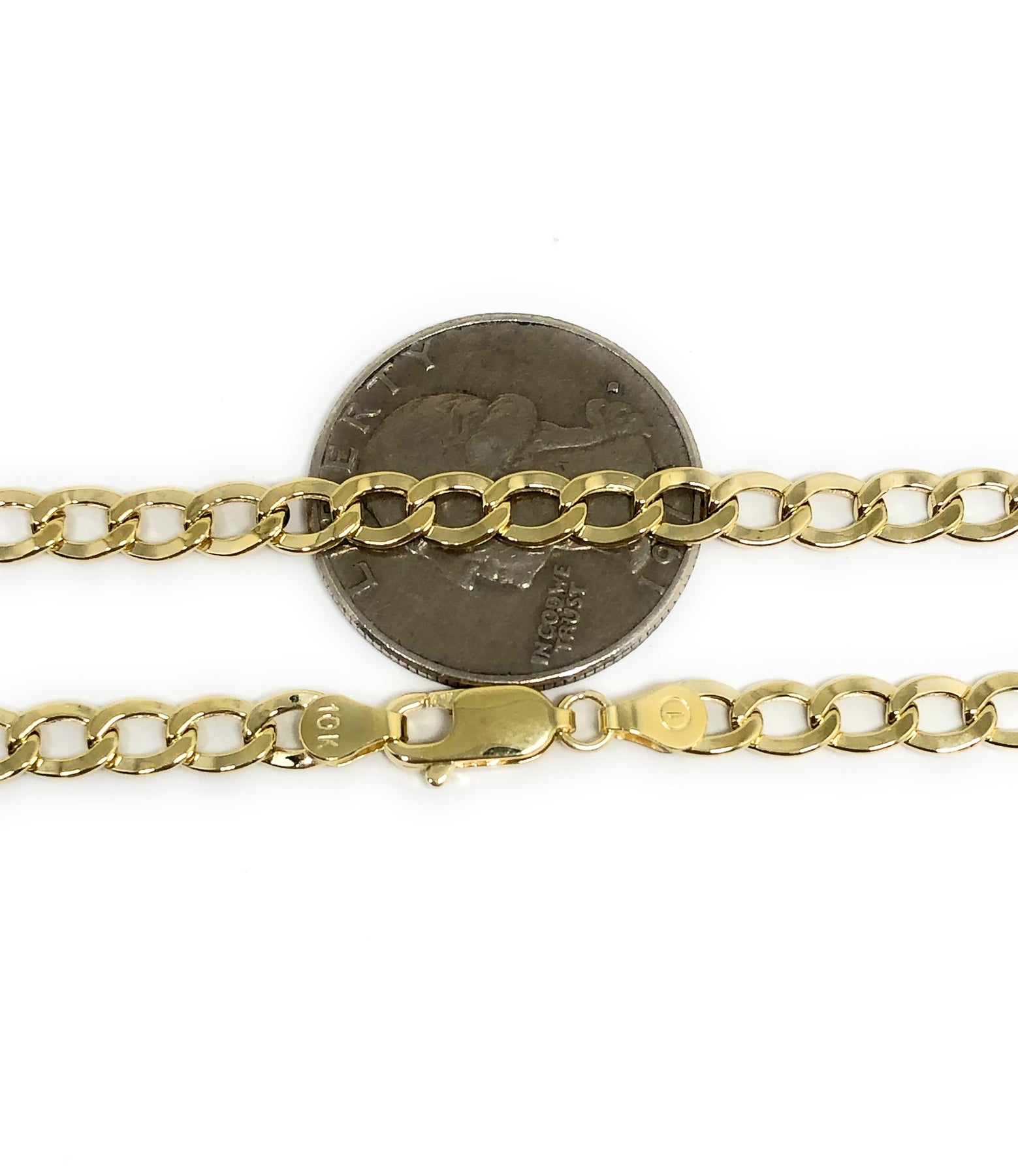 10k Solid Gold Yellow Cuban CURB Link Chain 18-30 inches 4.8-5.3mm (Semi-Hollow Style)