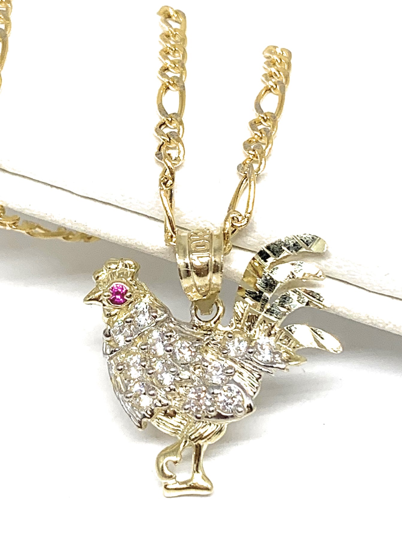 • Yellow CZ rooster pendant and chain and 10k solid gold guaranteed.