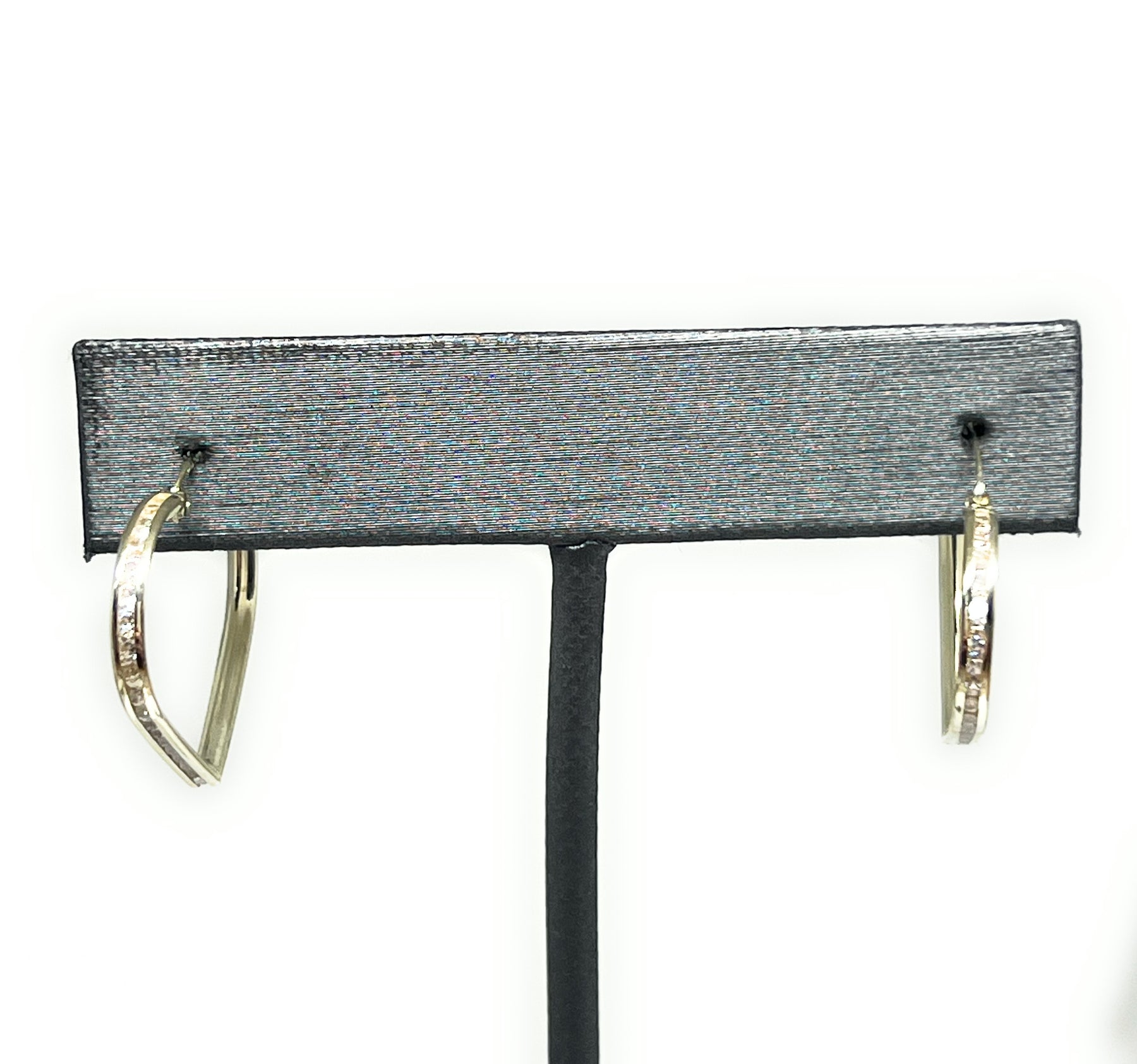 The product is exactly as pictured and is accurate to the pictures on the website. By default, thin earrings can bend, that is how real gold behaves, any thin style earrings or piece of jewelry can bend because that is how real gold behaves.