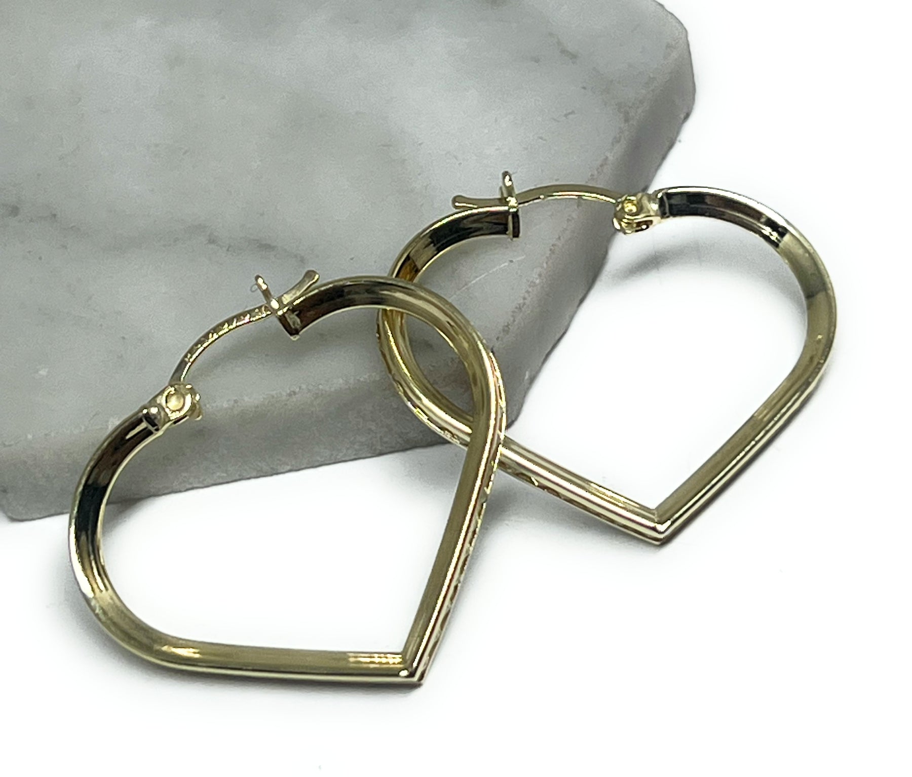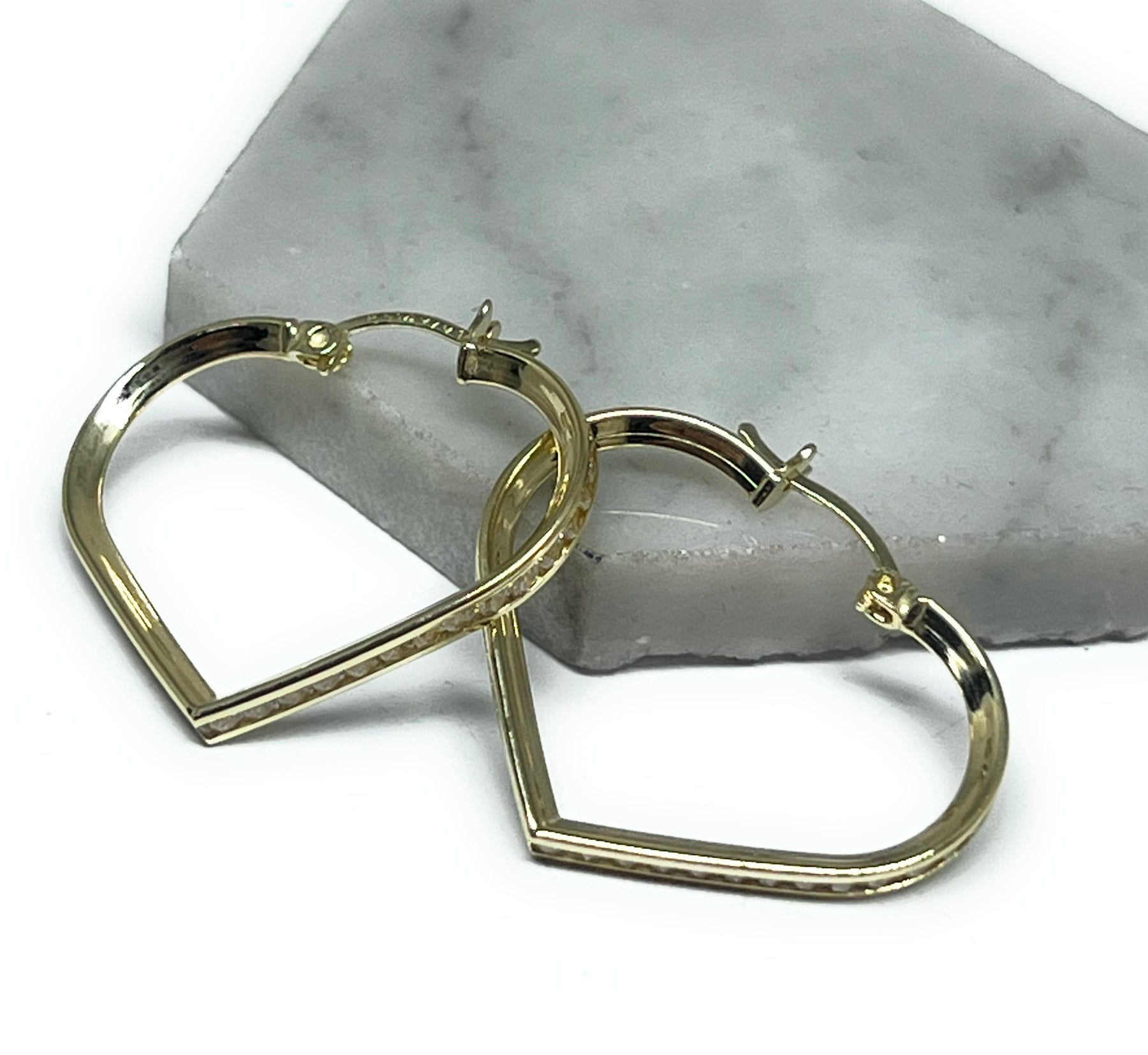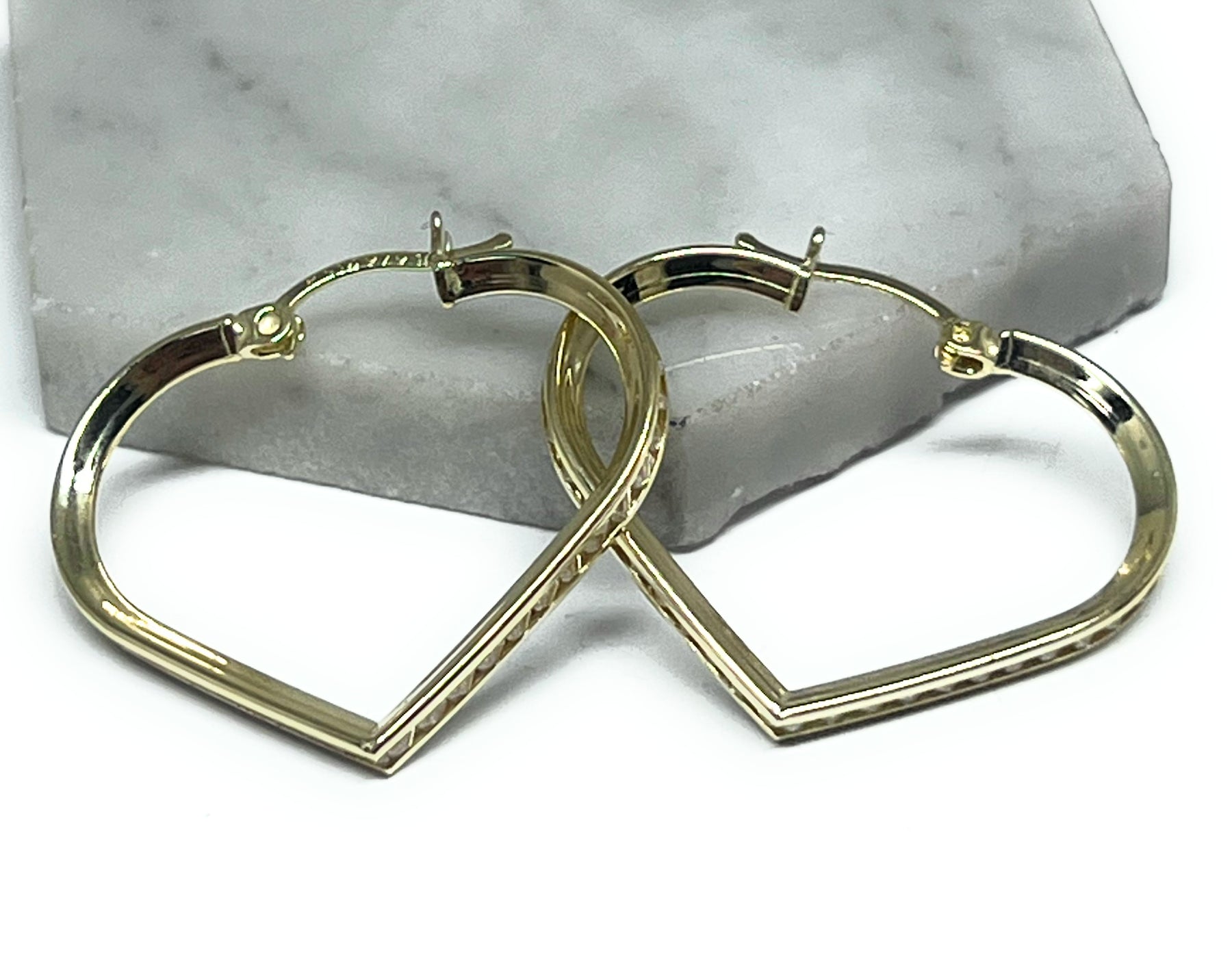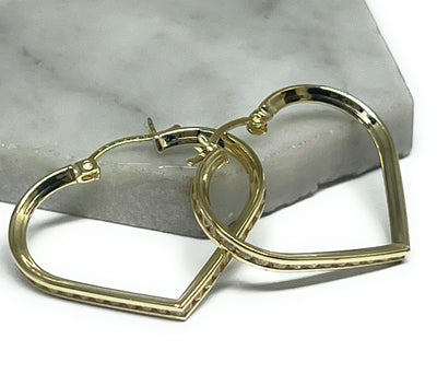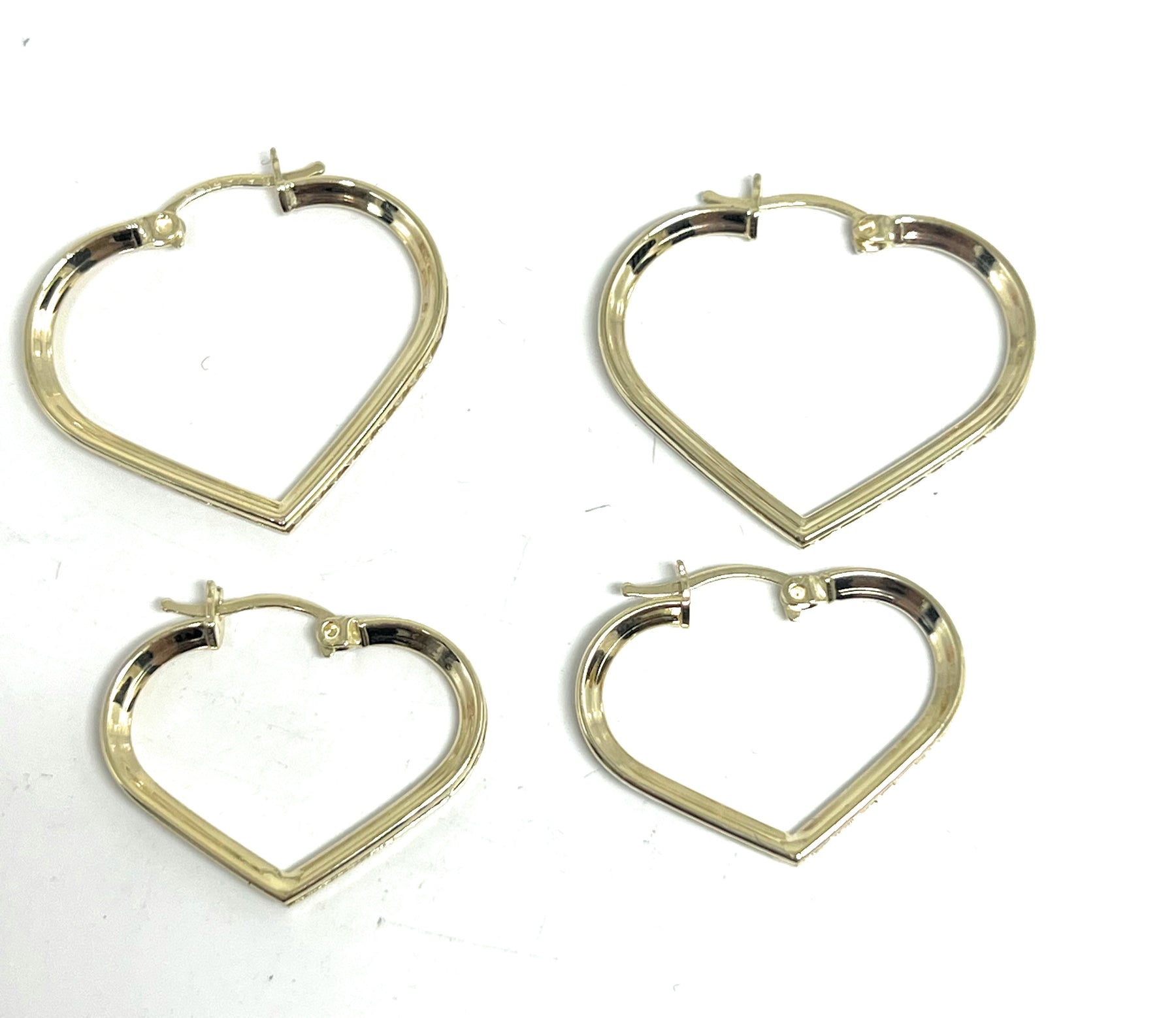 10k Solid Gold Yellow CZ Heart Hoop Earrings Arracadas (SM, MED)