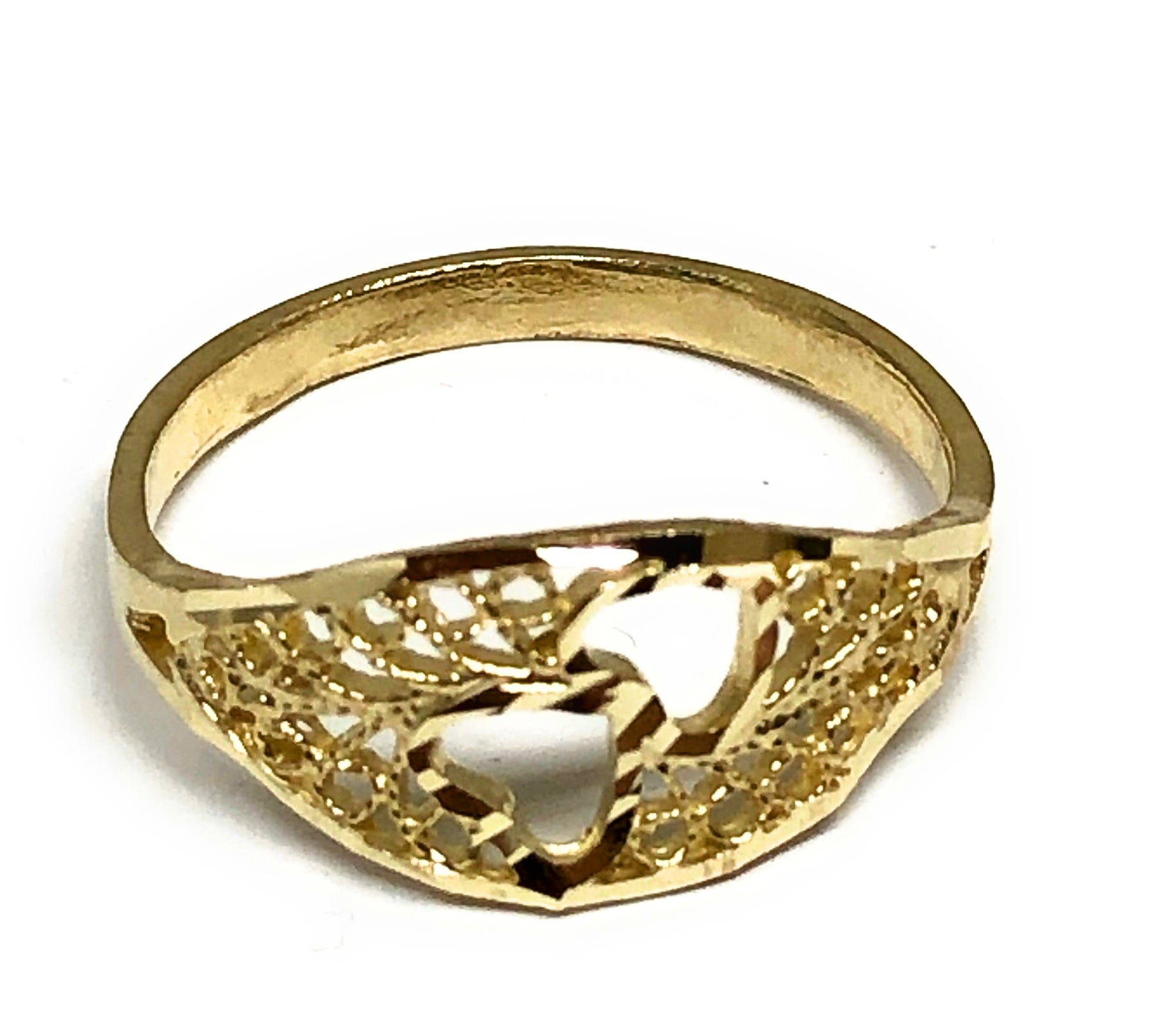 10k Solid Gold Yellow Double Heart Filigree Ring