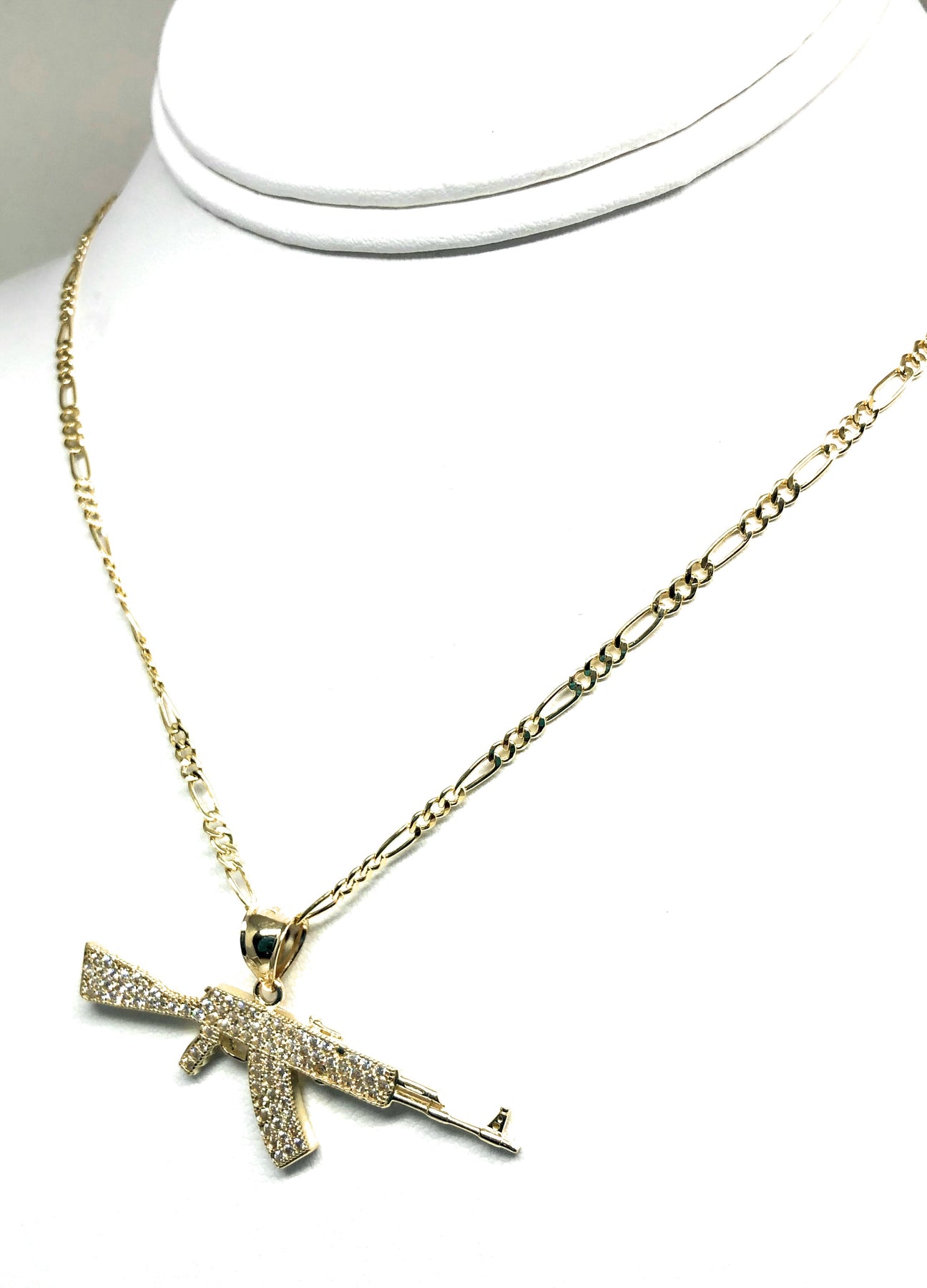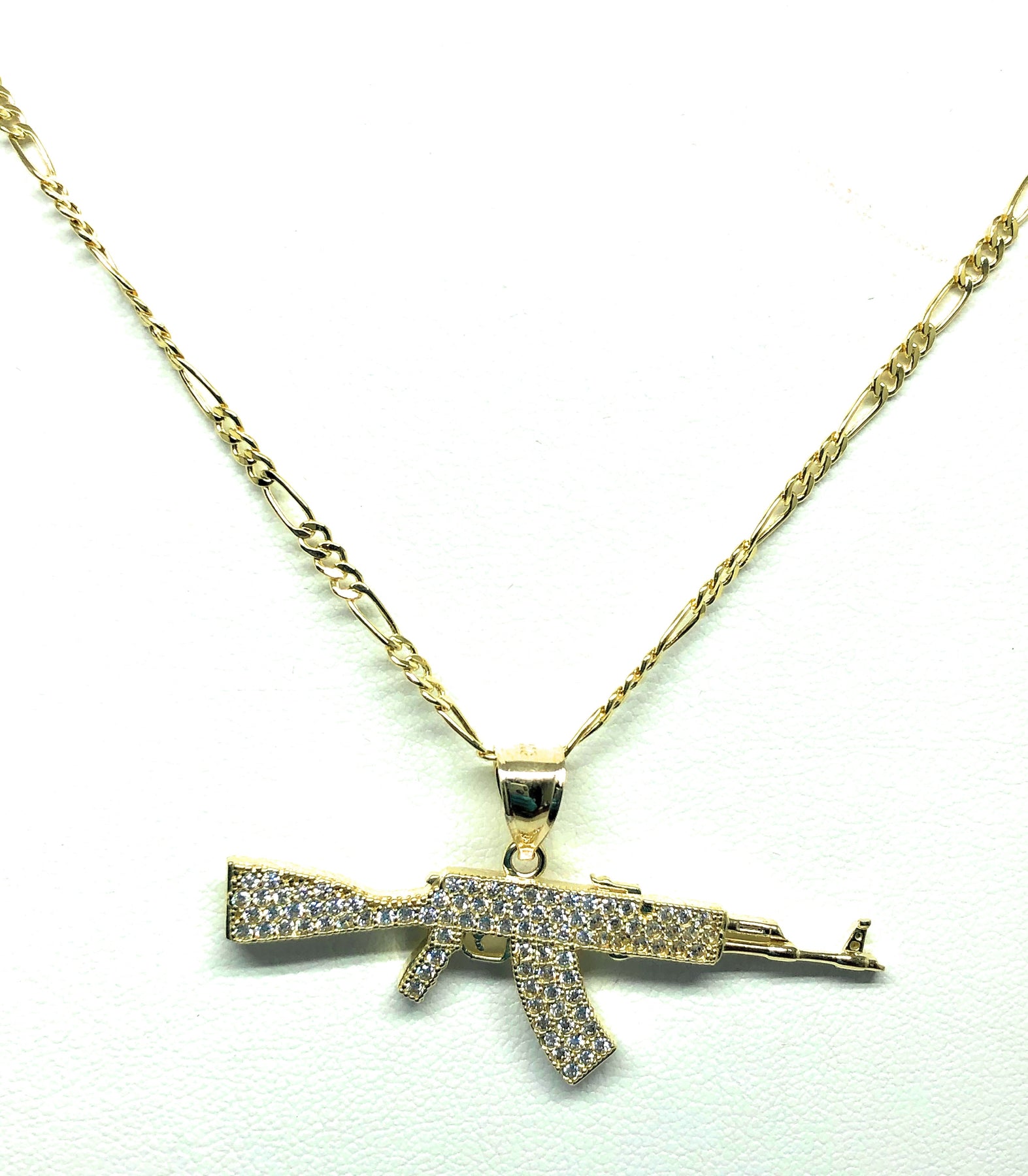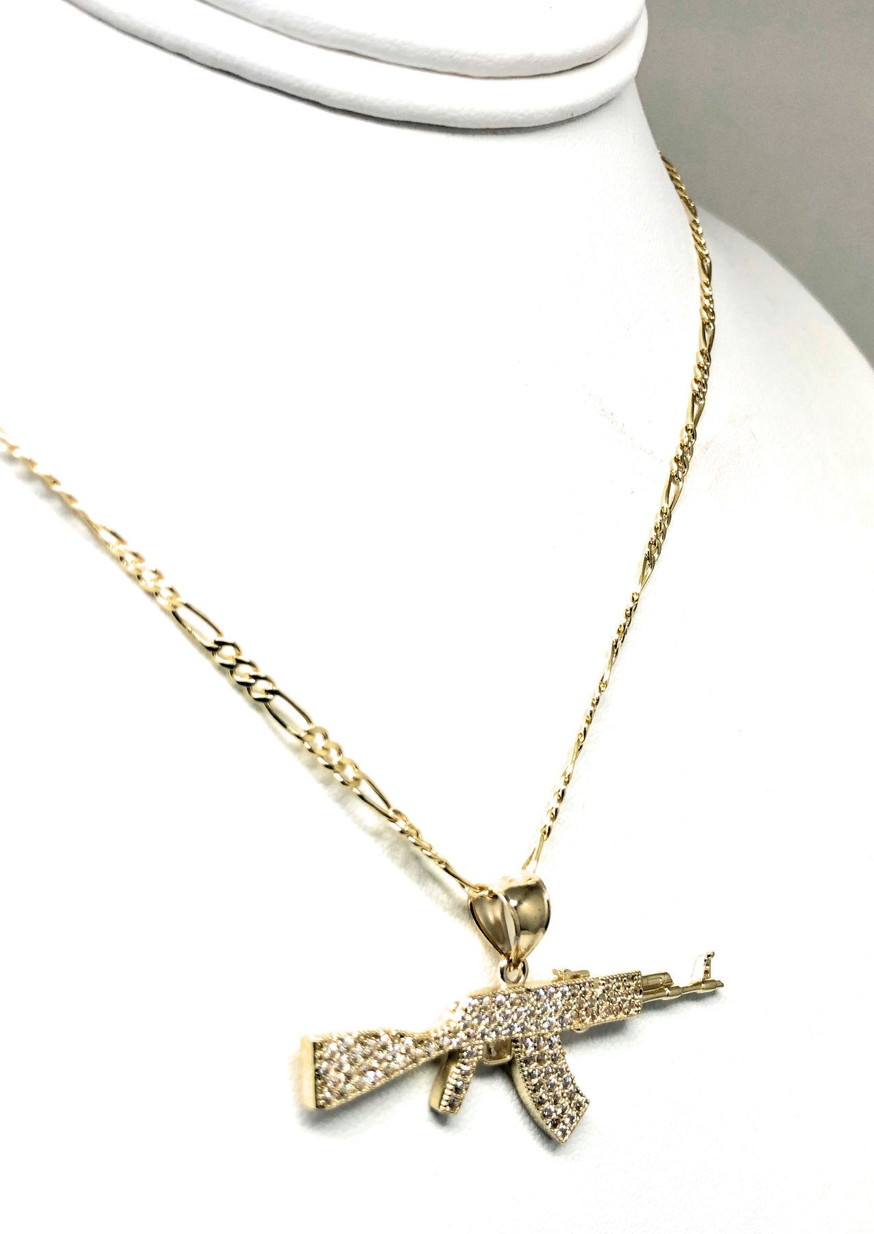 - Machine gun pendant and chain and 10k solid gold guaranteed.