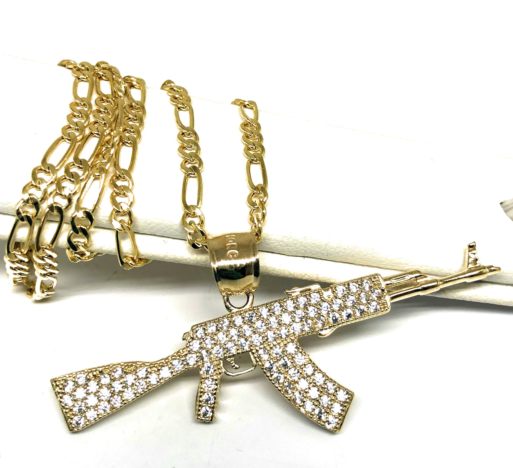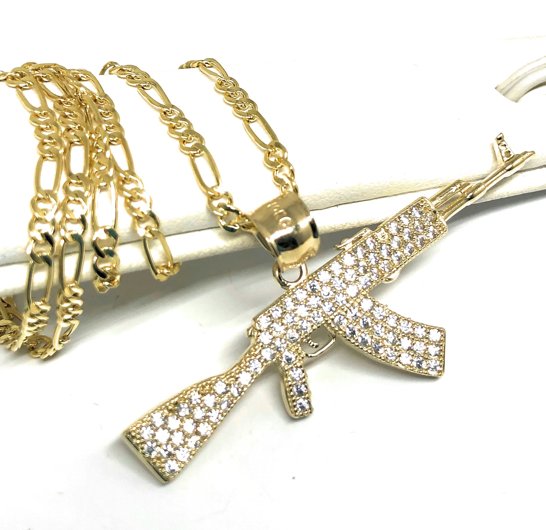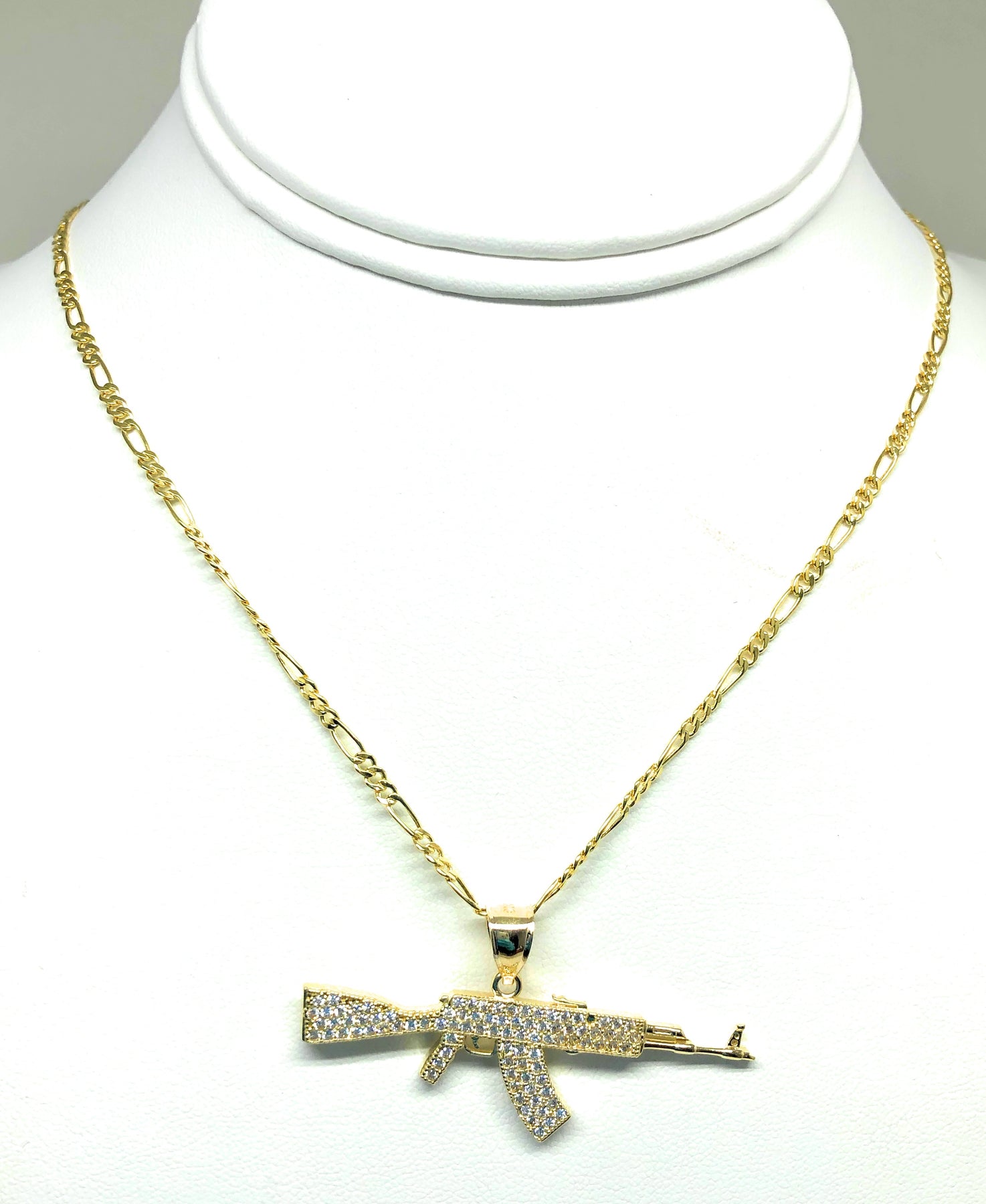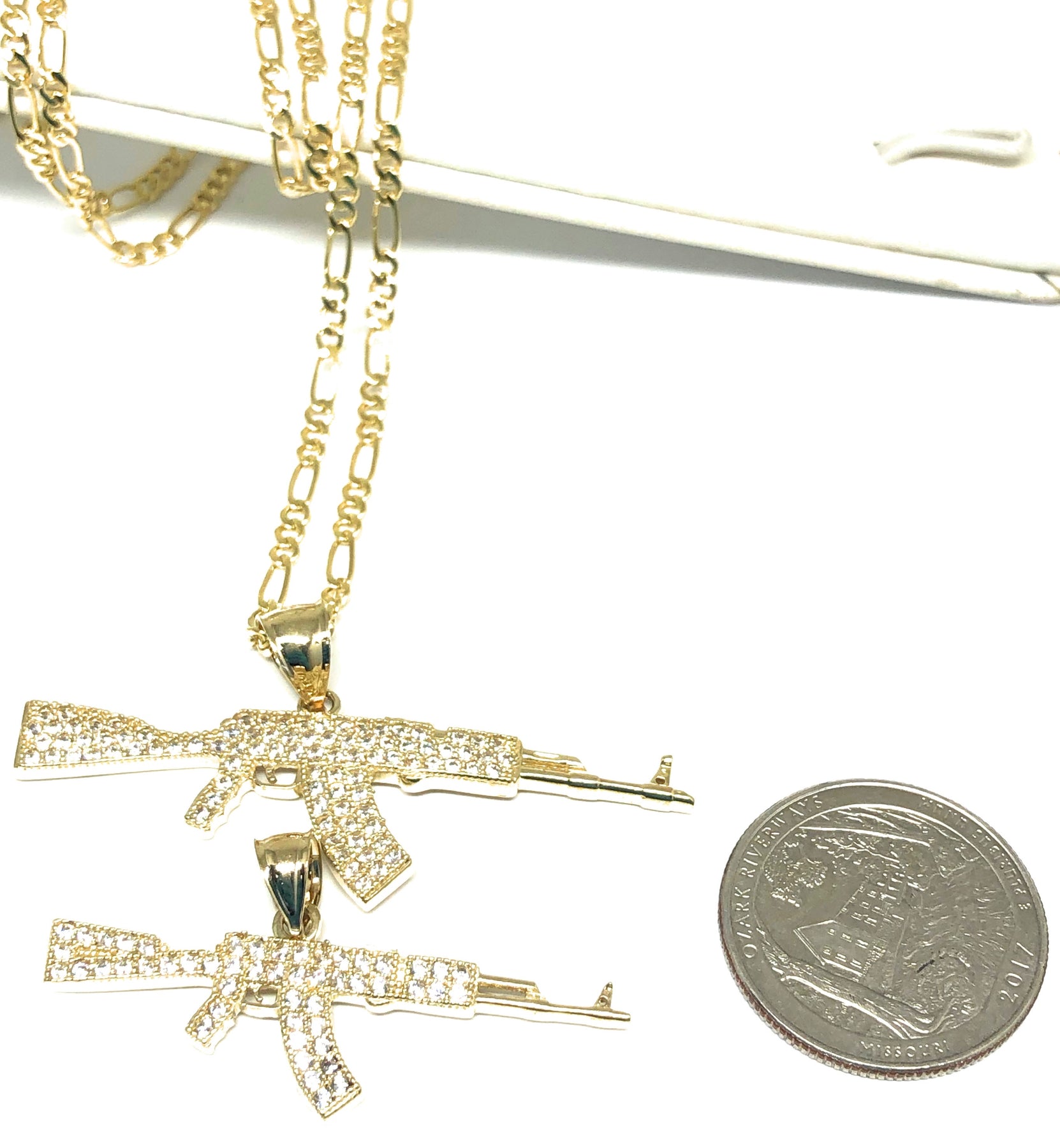 - Machine gun pendant and chain and 10k solid gold guaranteed.