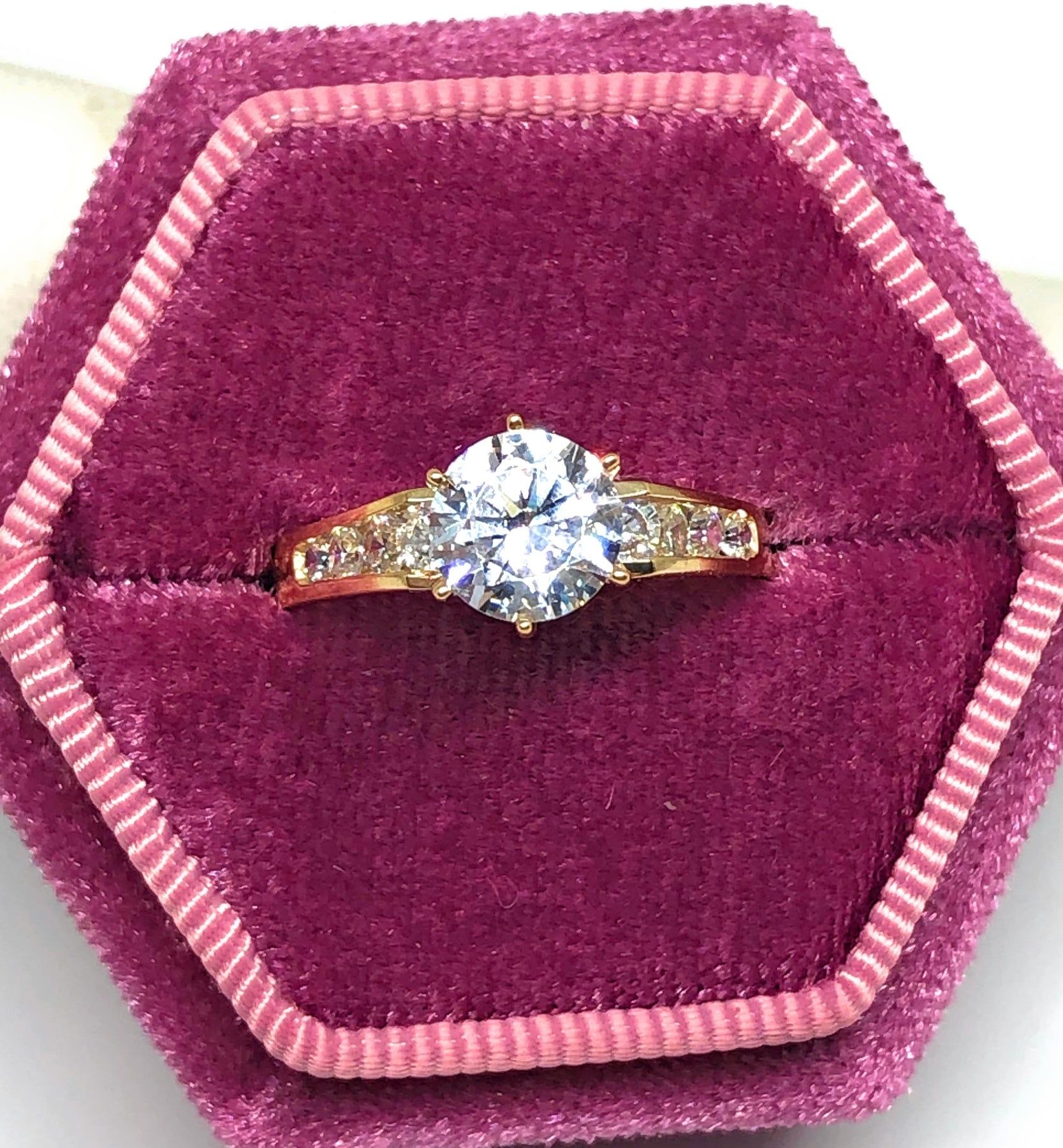 • Beautiful and bright main stone is 1 KARAT in high quality cubic zirconia.