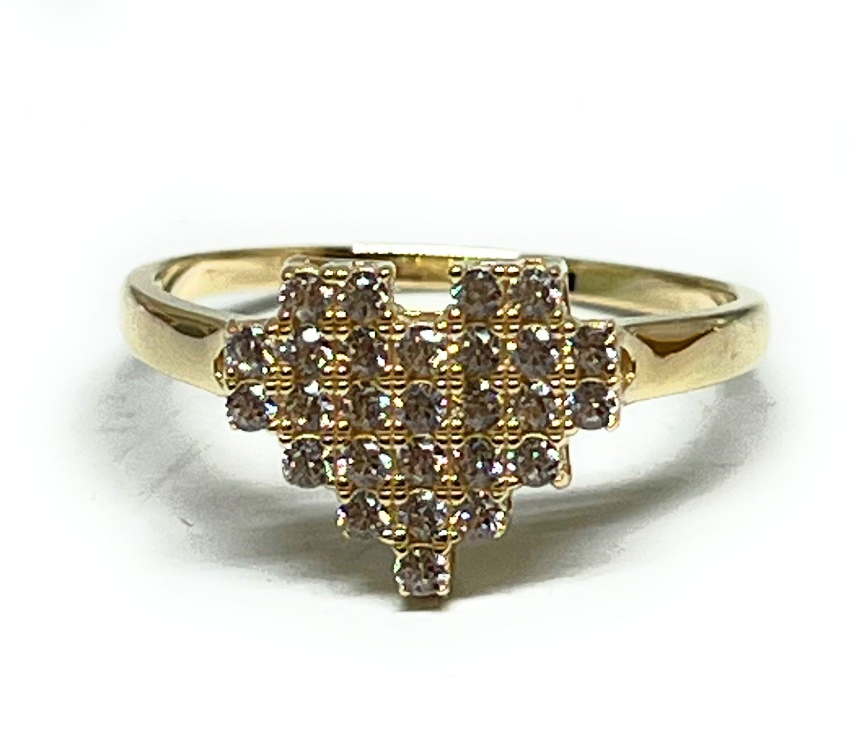 - Yellow Gold 8-Bit Heart CZ Ring 10k solid gold guaranteed.
