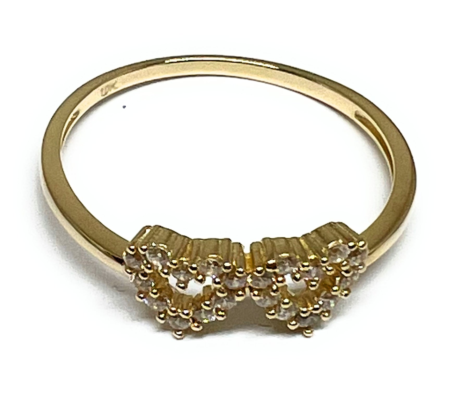 10K Solid Gold Yellow Gold Double Heart CZ Ring (FC 154)