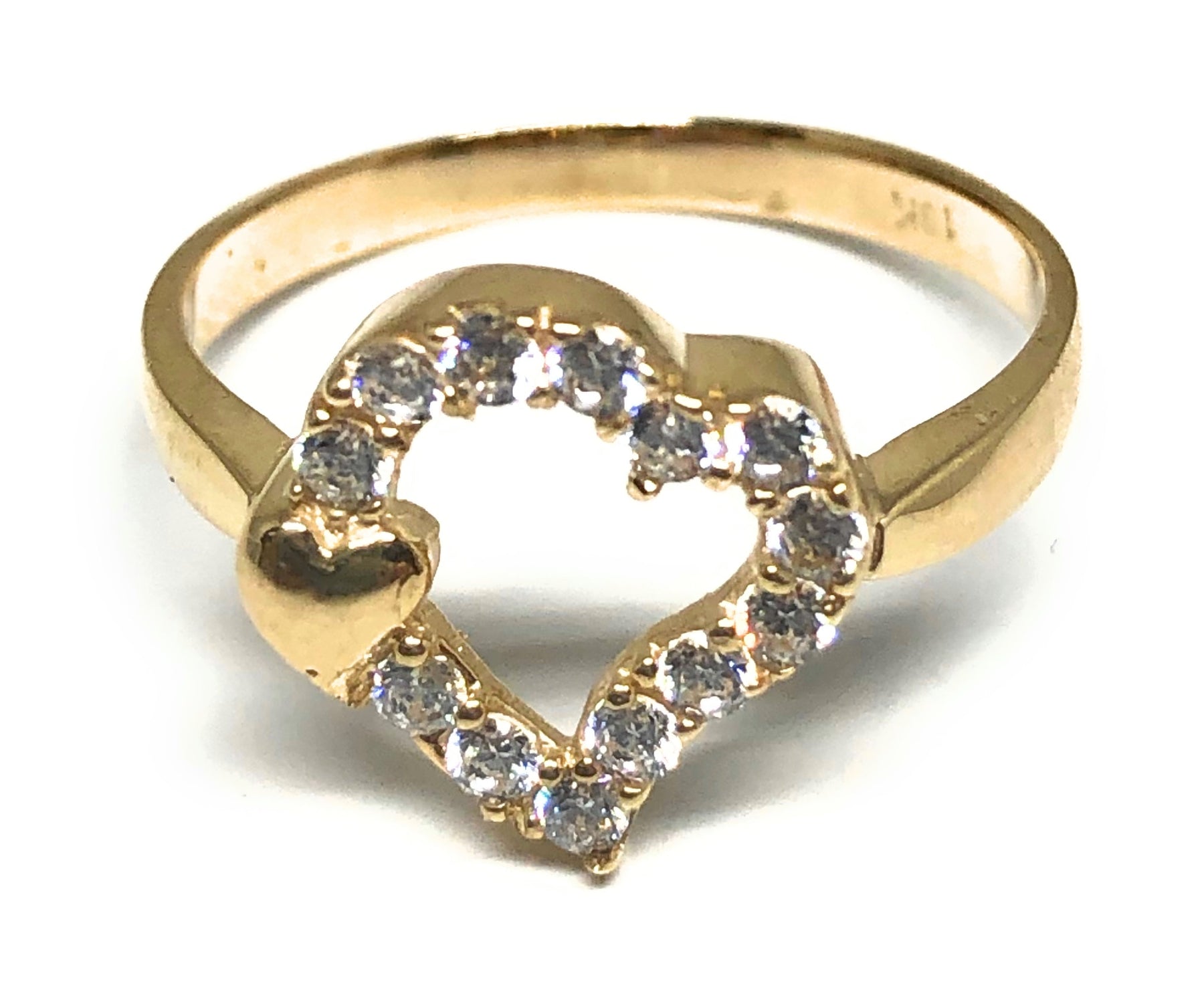 • Yellow Gold Heart White CZ Ring 10k solid gold guaranteed.