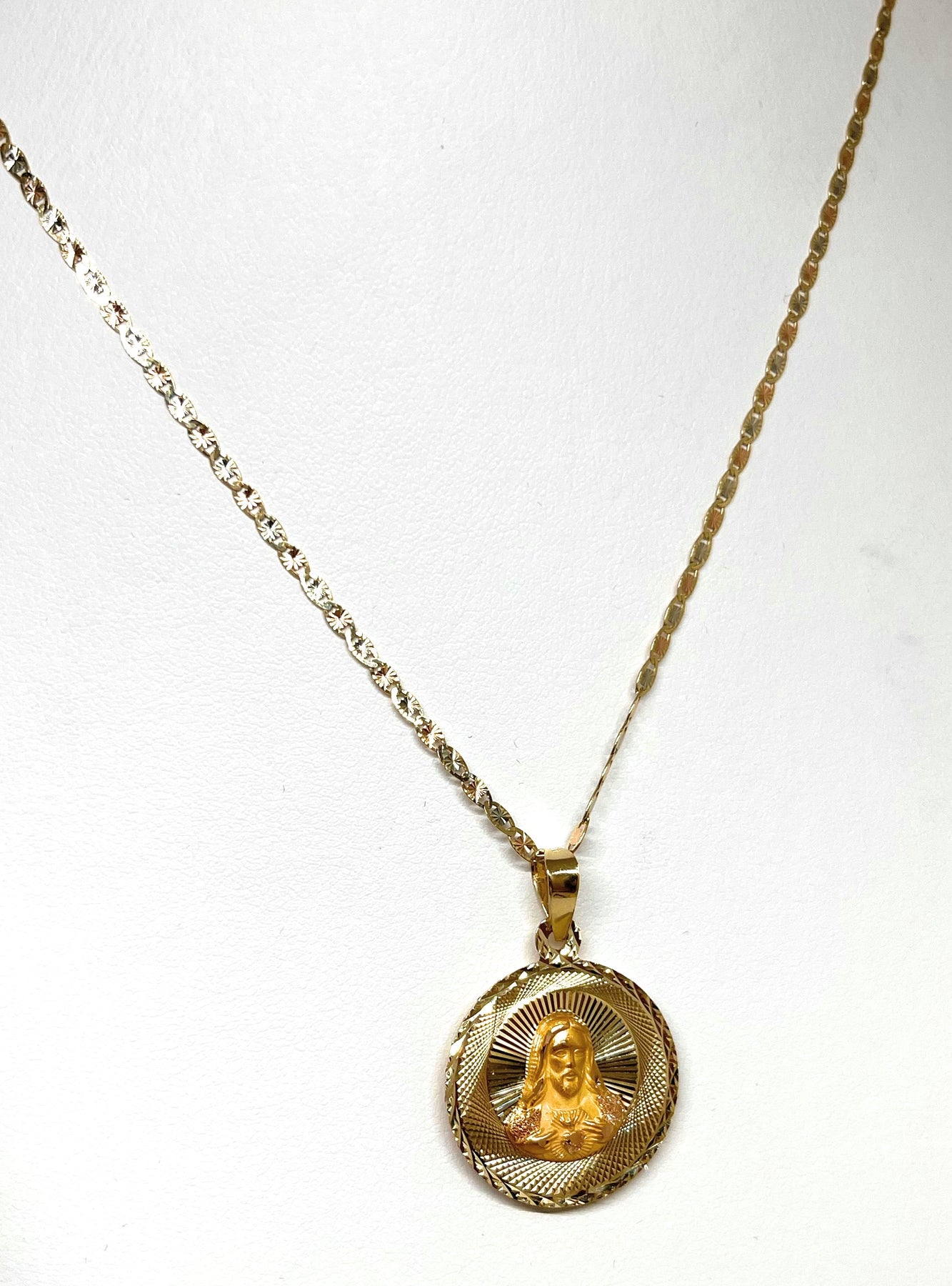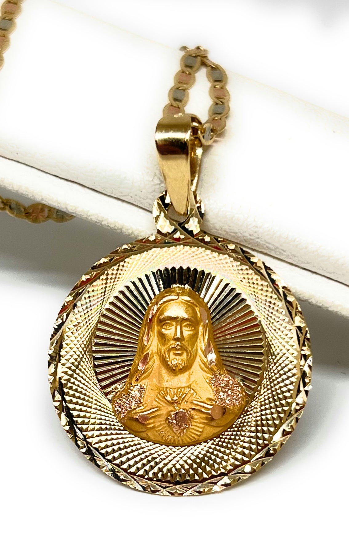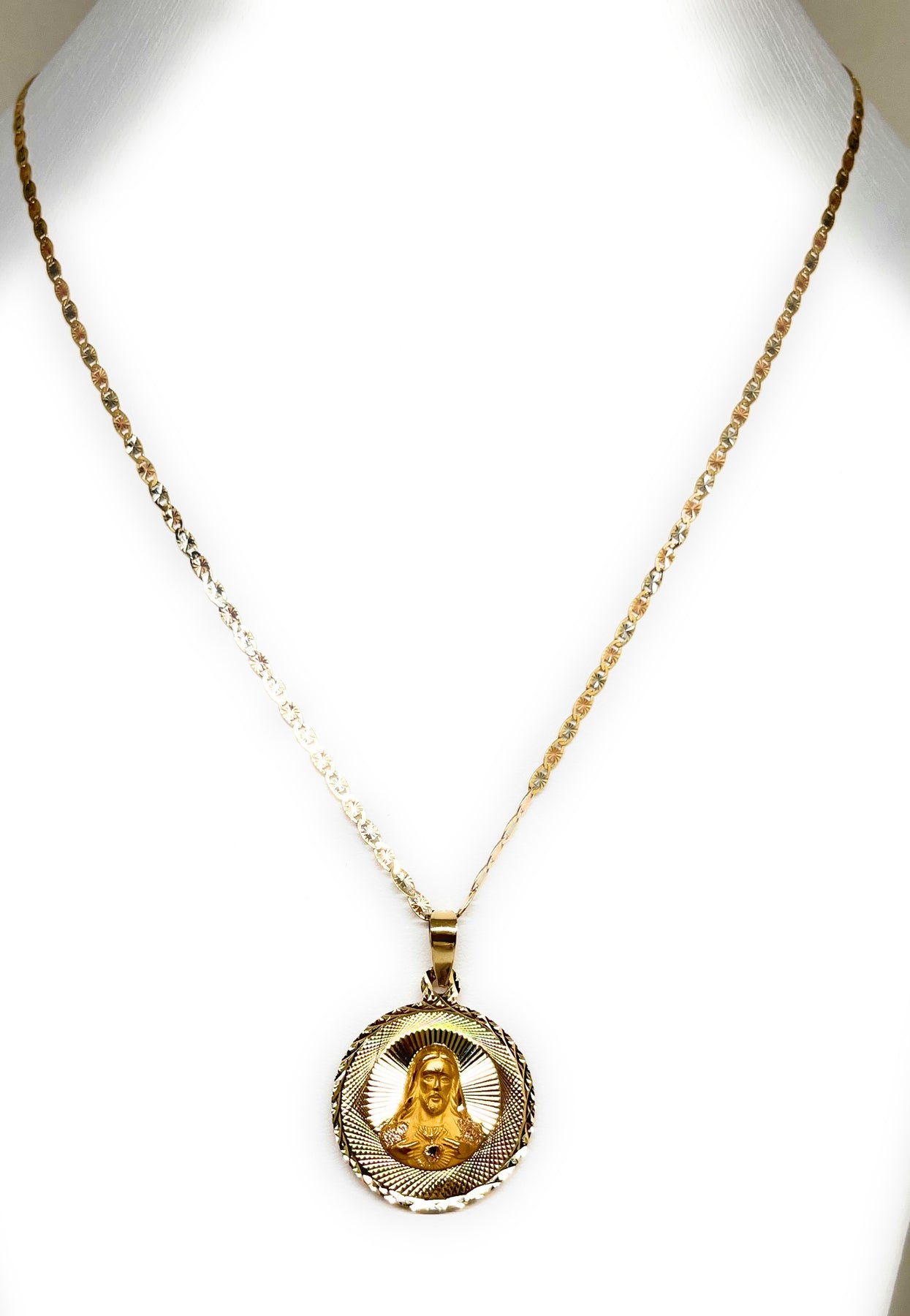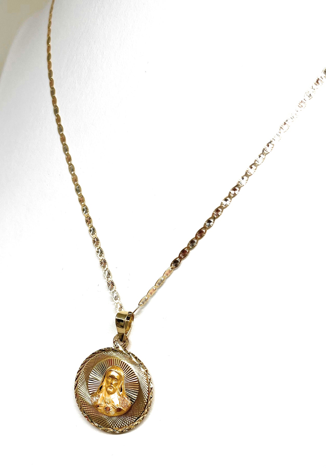 Jesus Sagrado Corazon & Virgin Mary Double Sided pendant and chain and 10k solid gold guaranteed. - Pendant and chain have 10k engraved marked for authenticity.