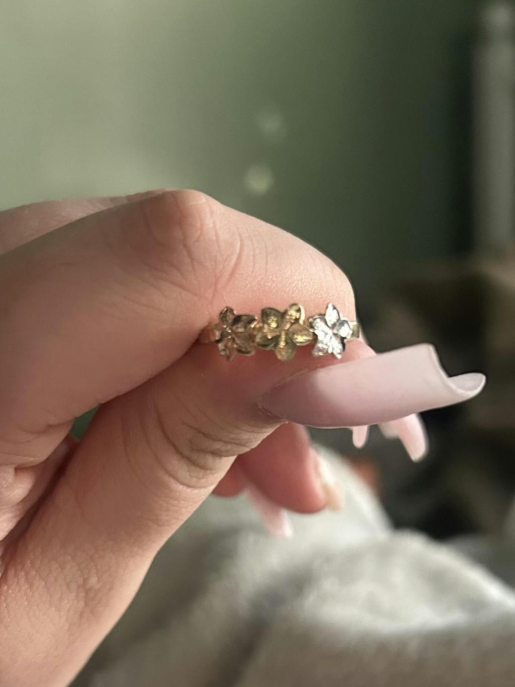 10k Solid Gold Yellow MINI Three PLUMERIA Flower Ring