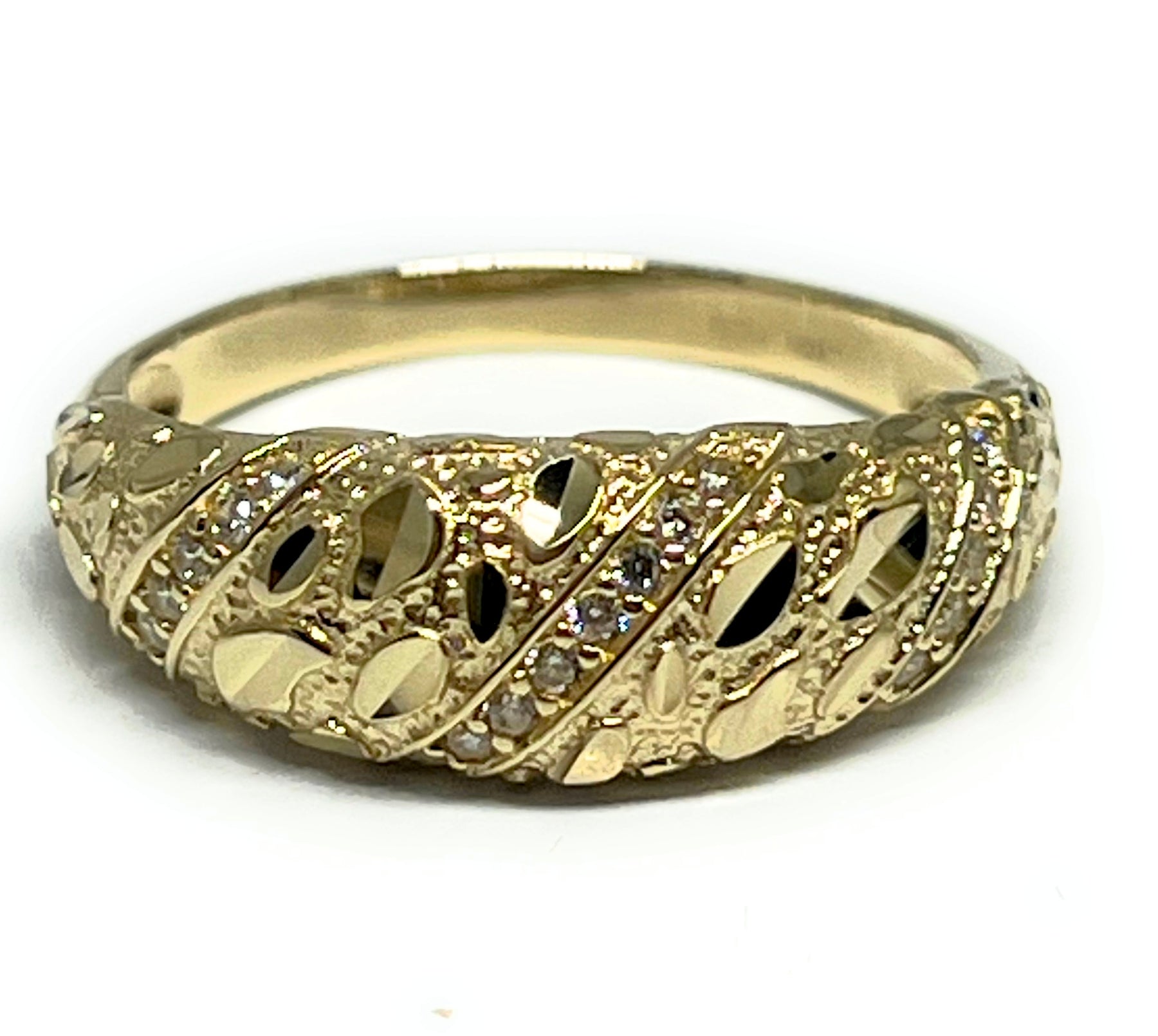 10k Solid Gold Yellow Nugget Band CZ Ring 7.5MM (FC 265)