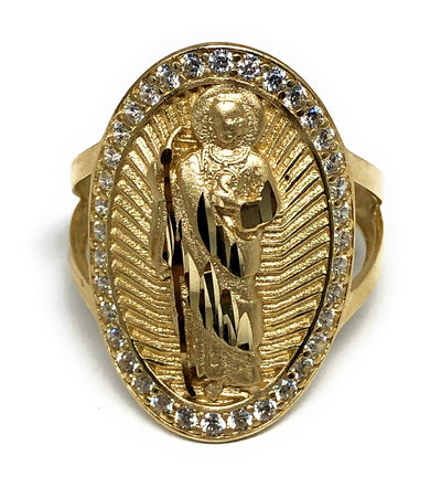 • Yellow gold oval San Judas Ring 10k solid gold guaranteed.