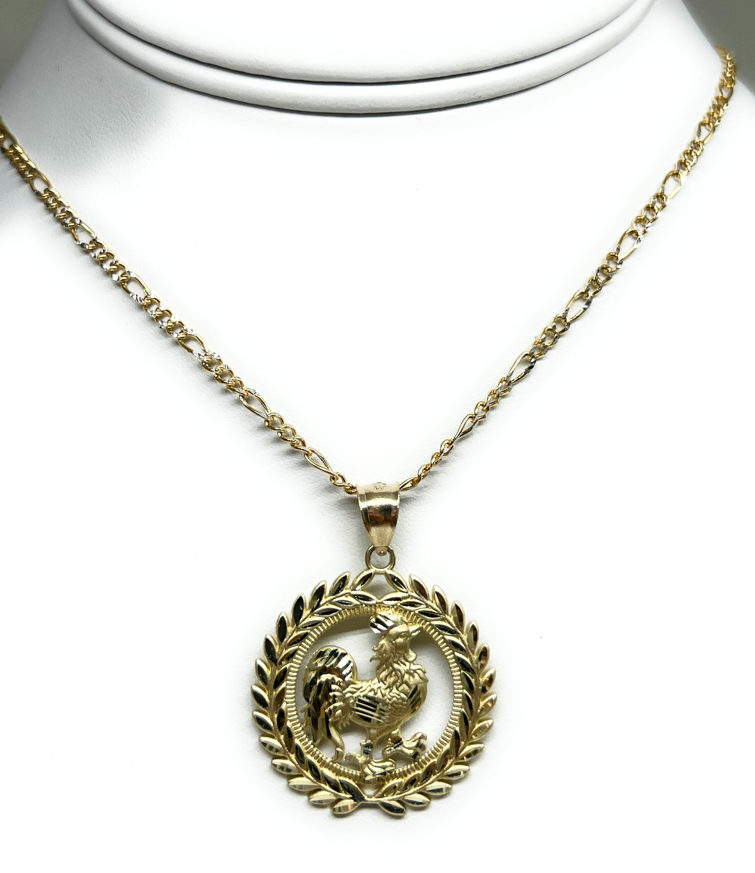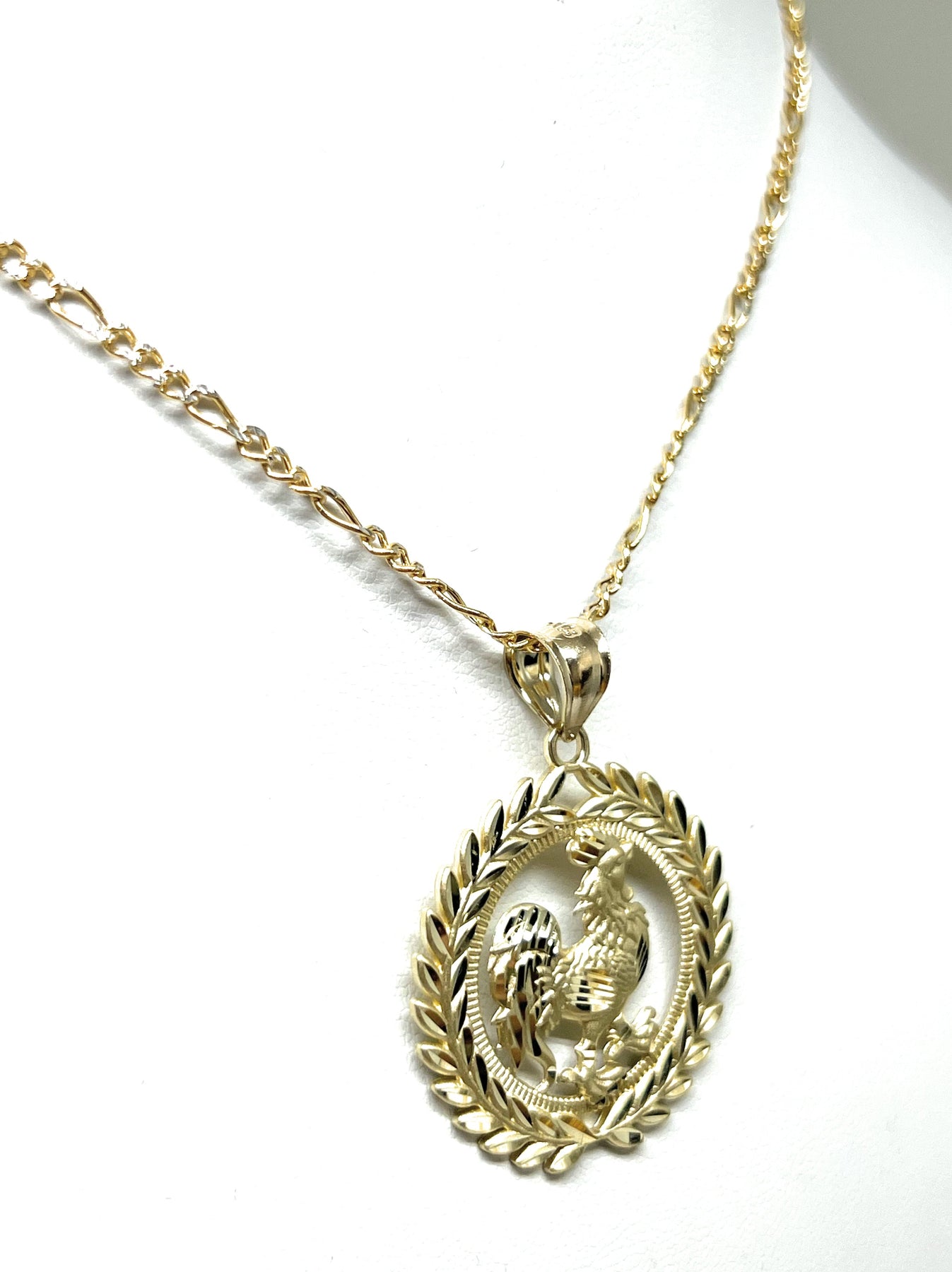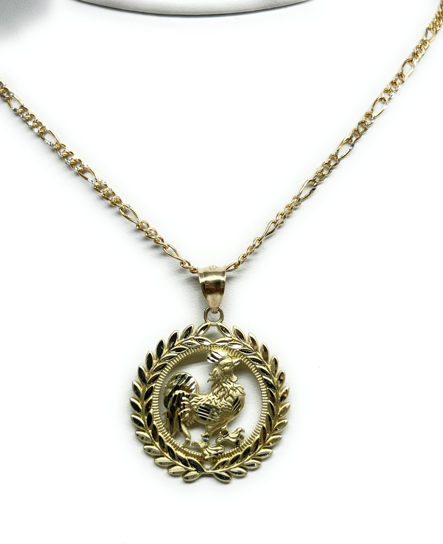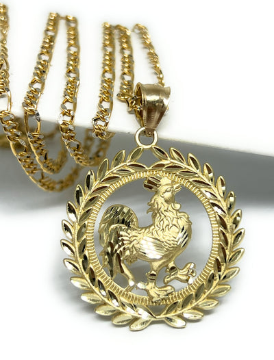 10k Solid Gold Yellow Rooster ROUND CORONET Pendant Necklace