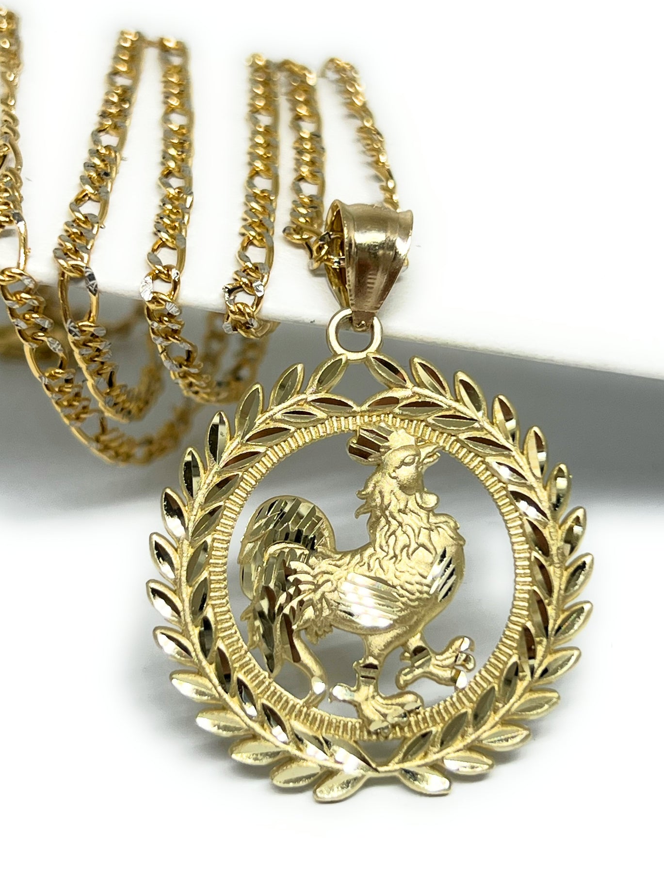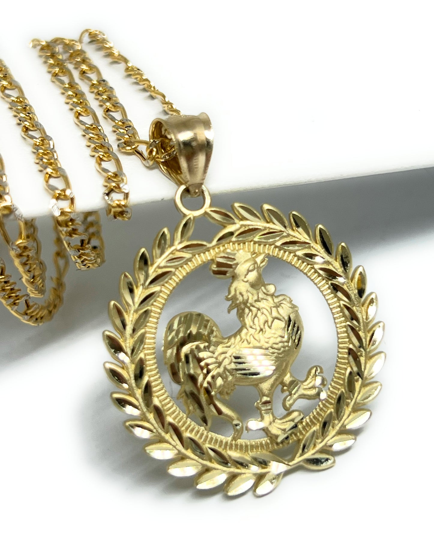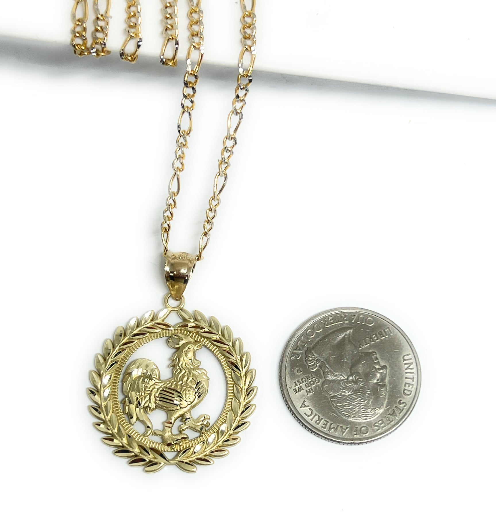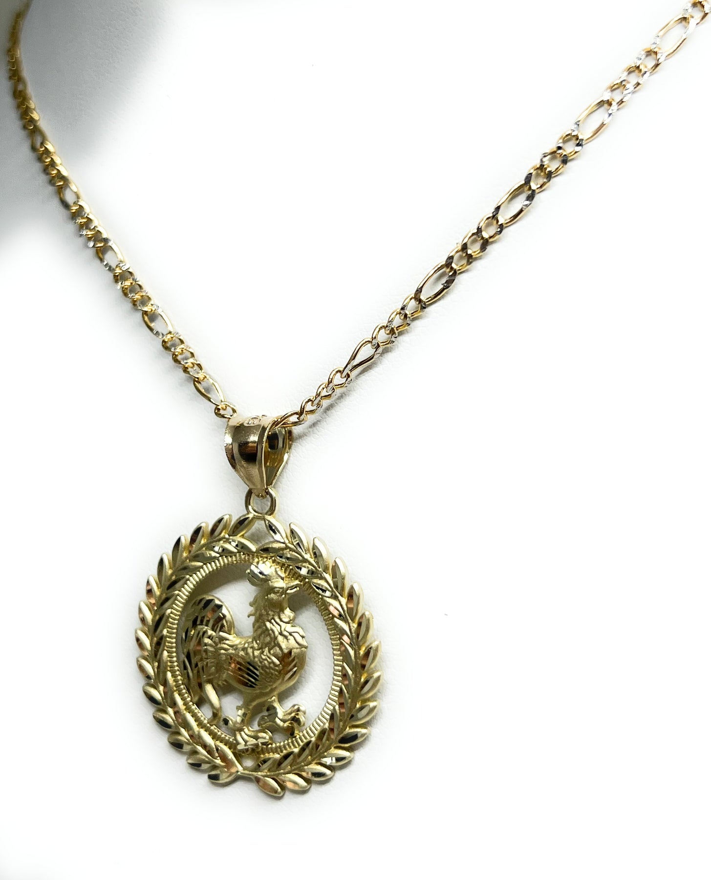 10k Solid Gold Yellow Rooster ROUND CORONET Pendant Necklace