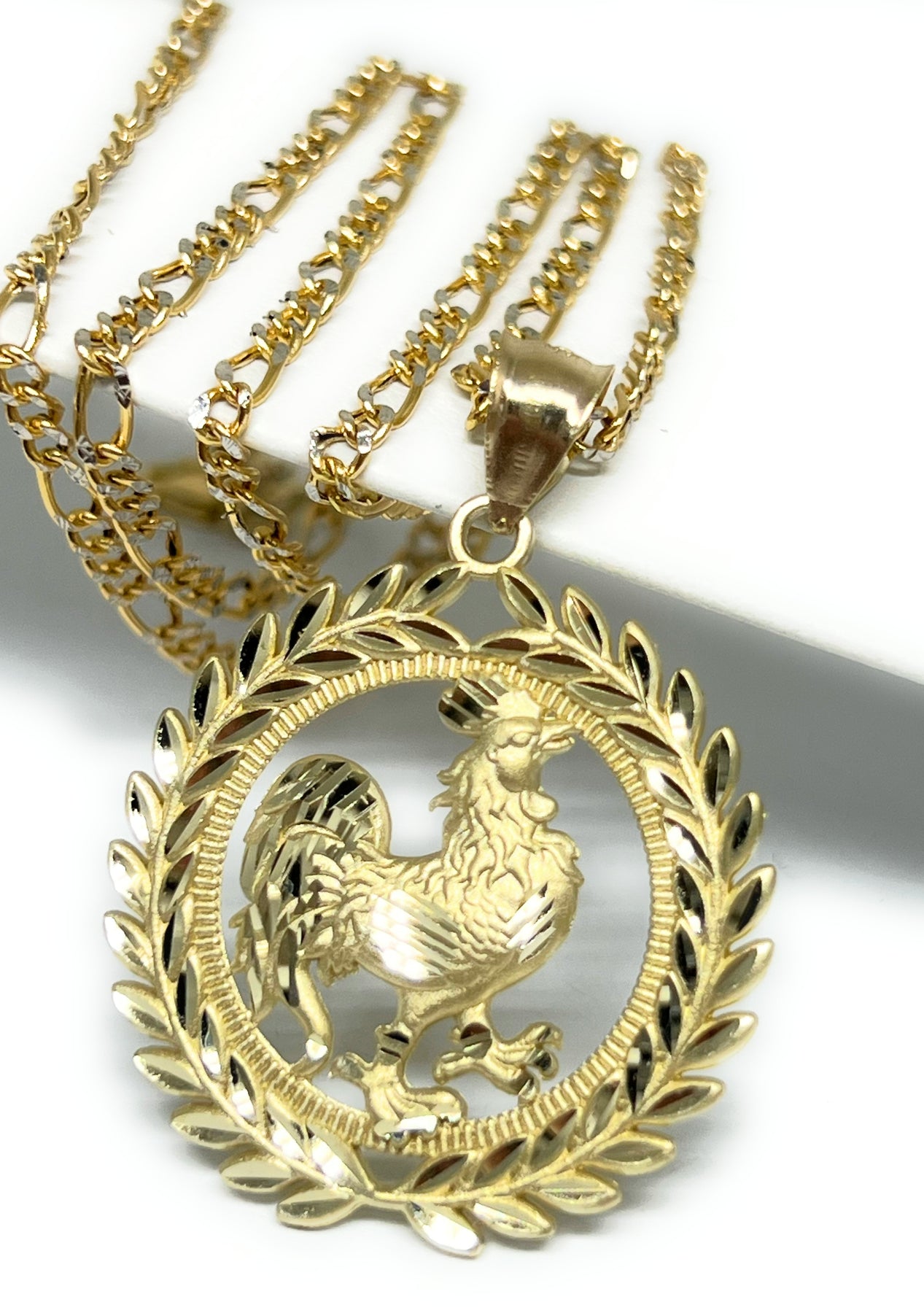 • YELLOW gold rooster pendant and chain and 10k solid gold guaranteed.