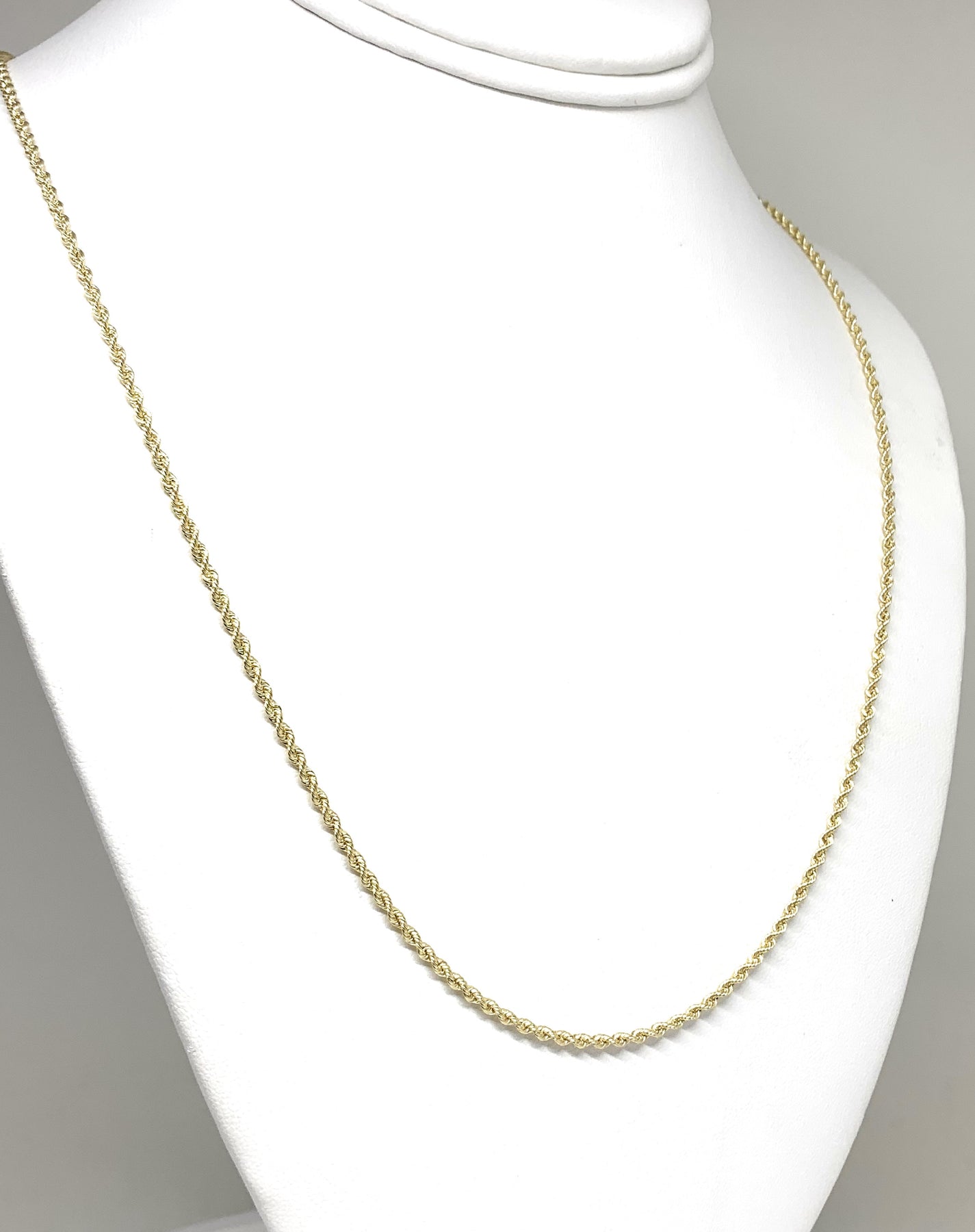 10k Solid Gold Yellow Rope Chain 16-26 inches 2mm (Semi-Hollow Style)