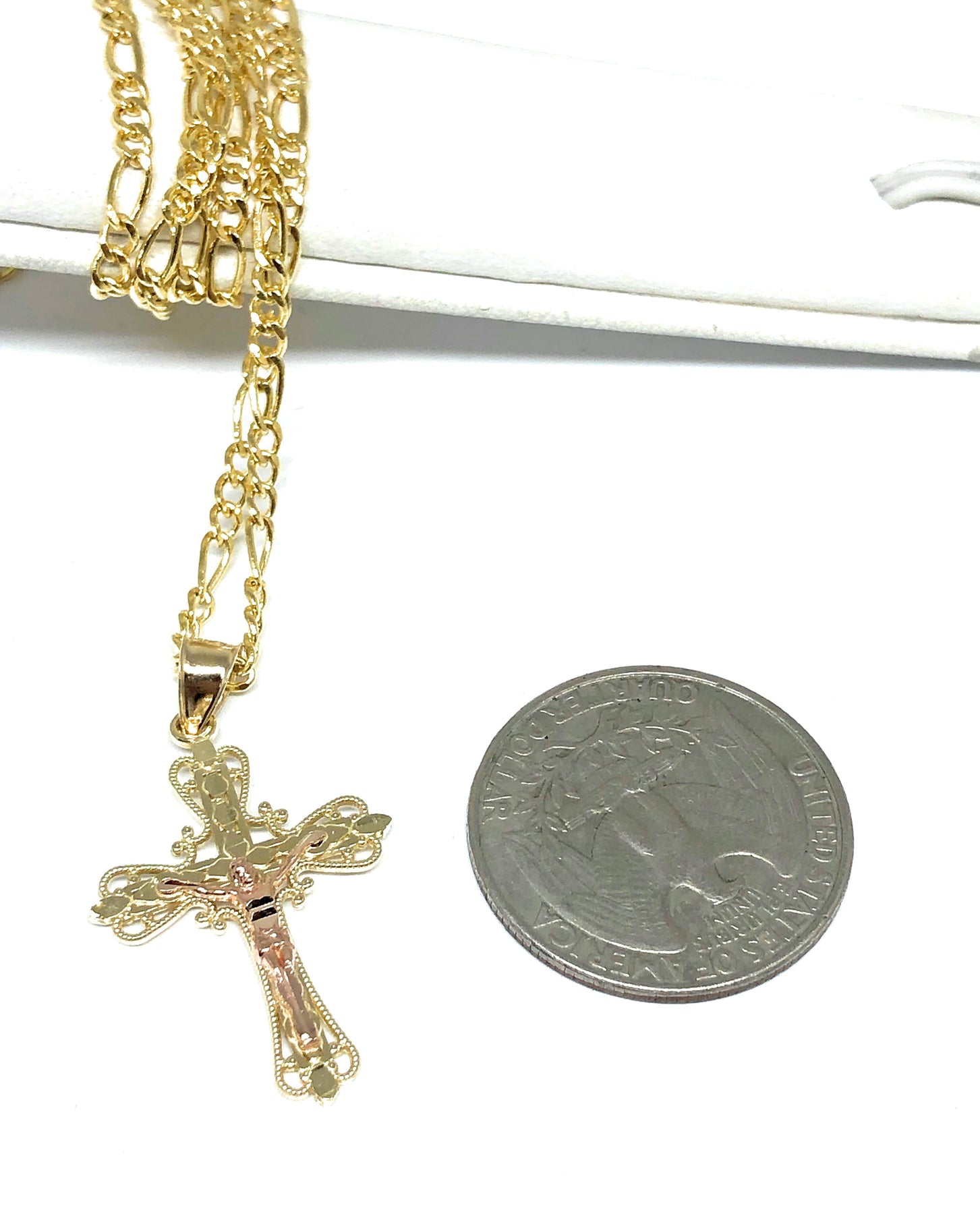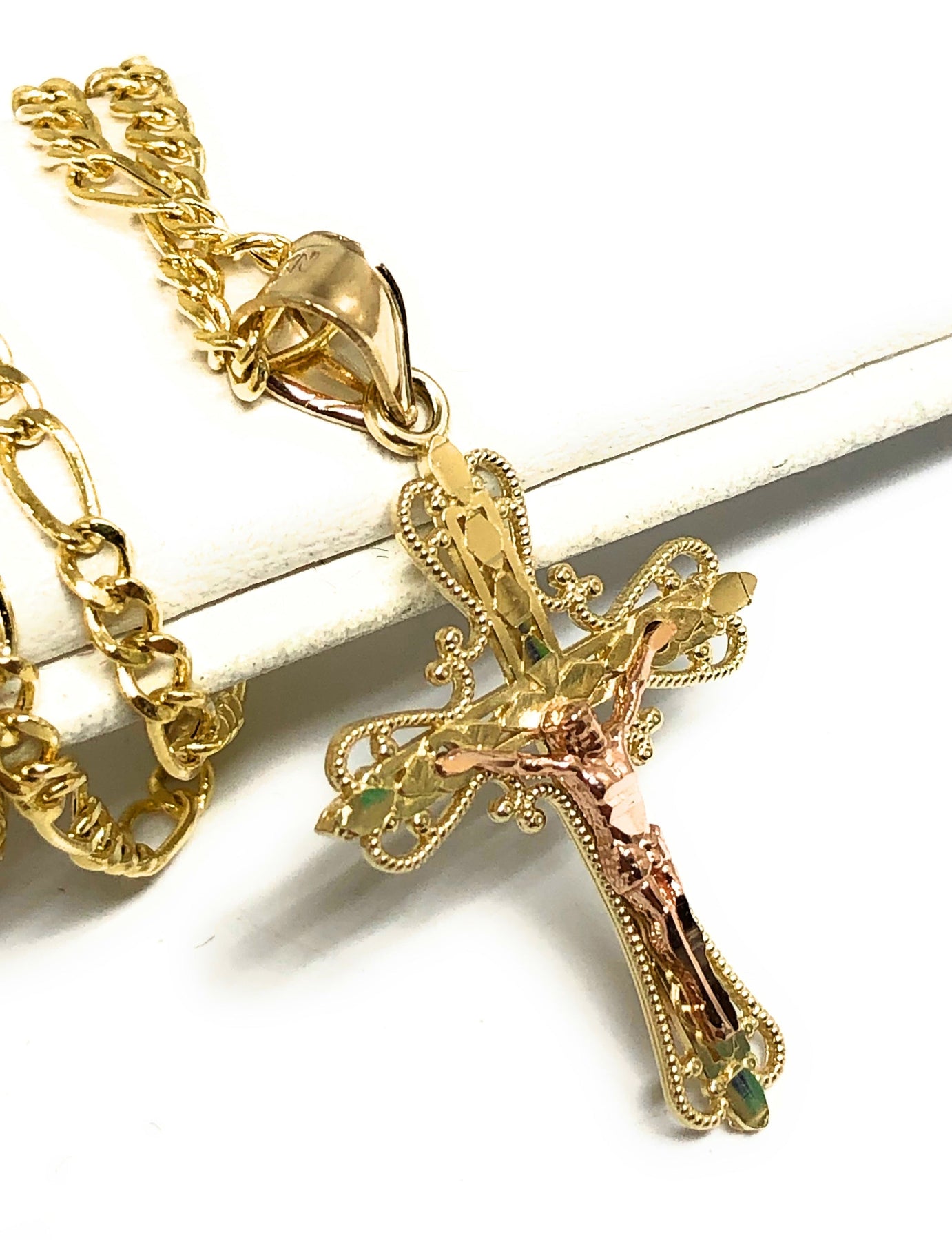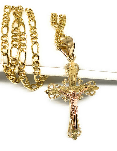 10k Solid Gold Yellow & Rose 2-Tone Jesus Cross Crucifix Pendant Necklace