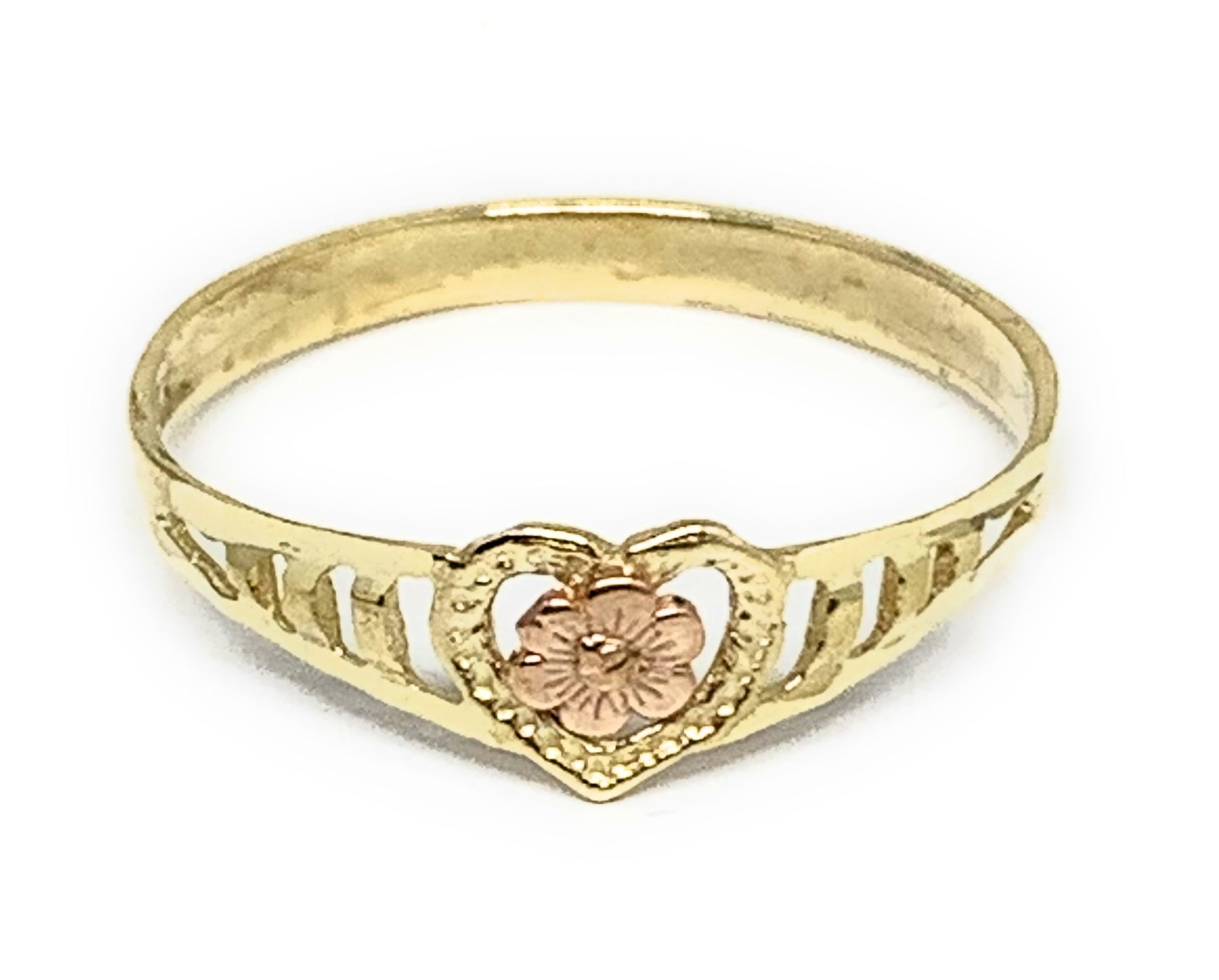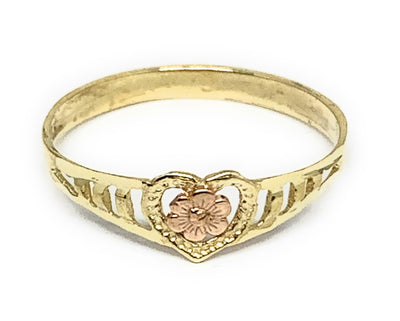 10k Solid Gold Yellow & Rose Gold Heart Flower Ring