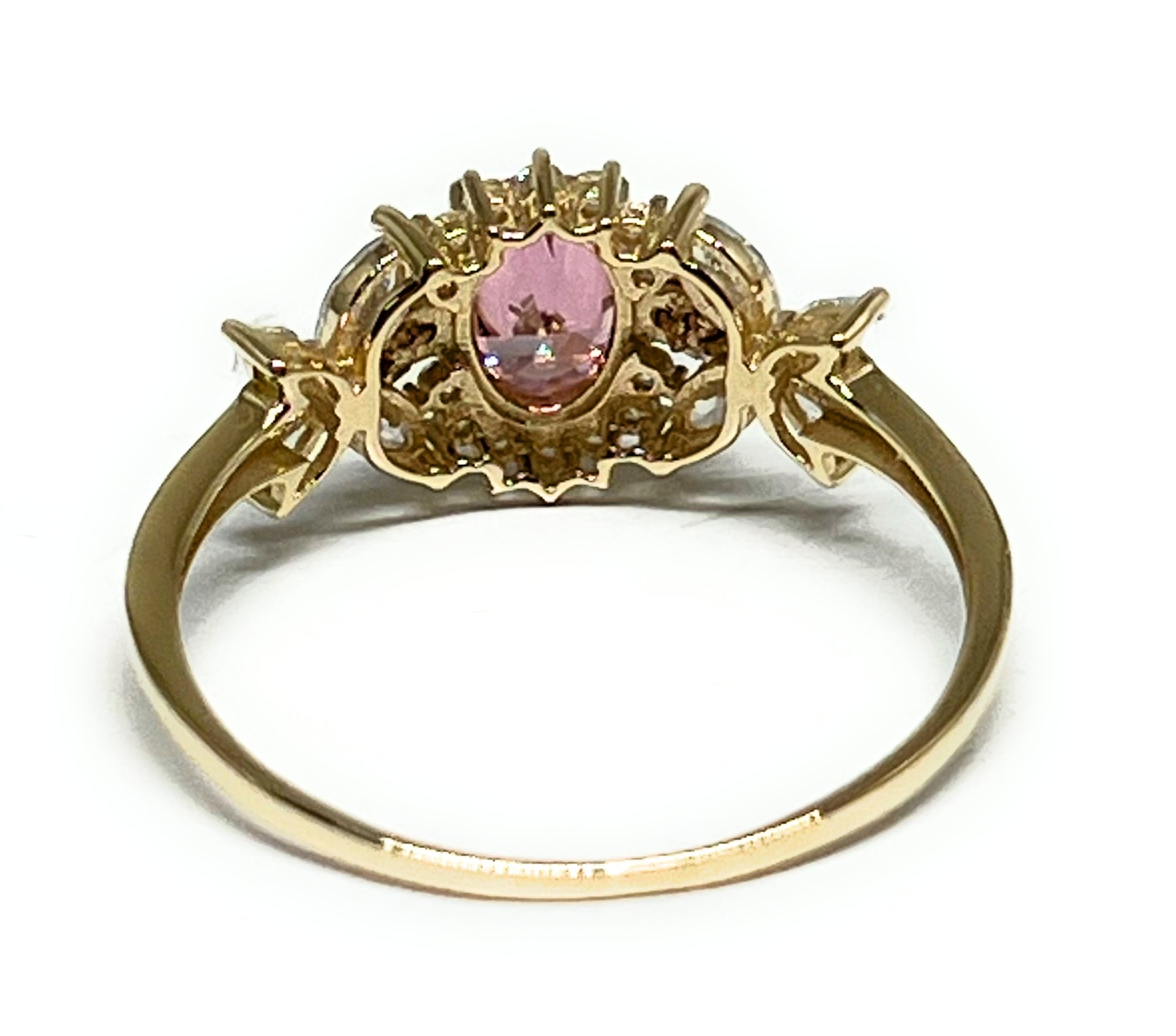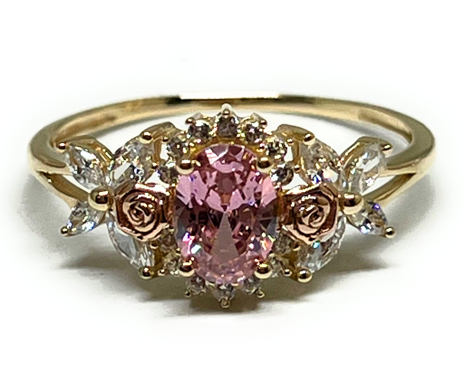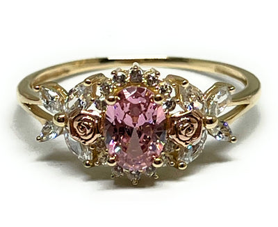 10k Solid Gold Yellow & Rose Gold PINK CZ Flower Ring (FC 303)