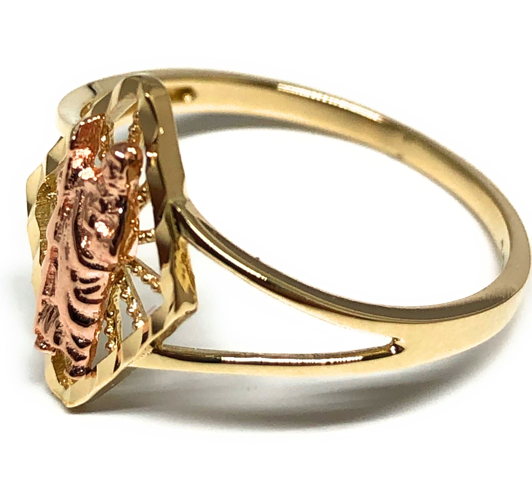 - Tri-Color Gold San Judas Classic Filigree ring is 10k solid gold guaranteed.