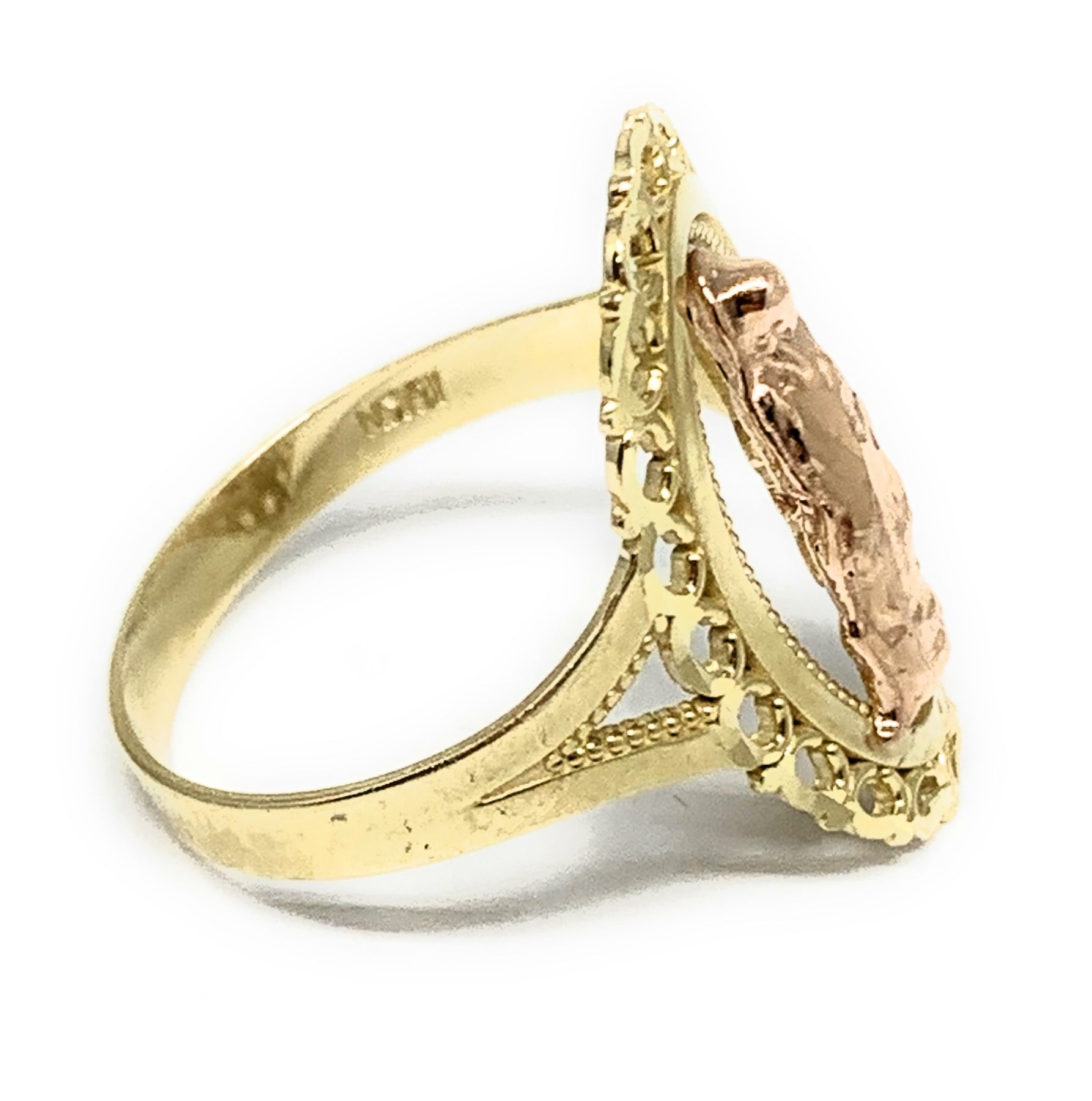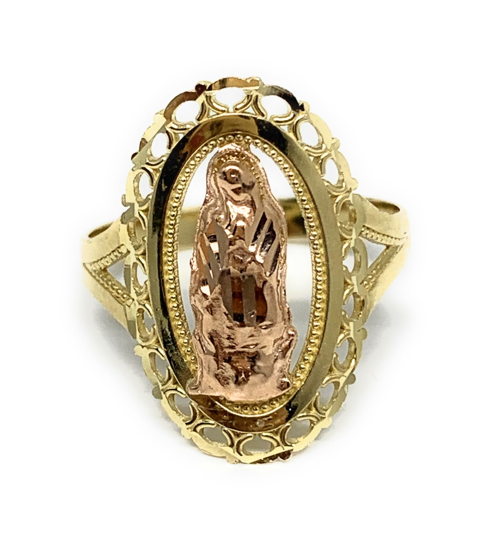 - Yellow and Rose gold Virgin Mary Ring 10k solid gold guaranteed.