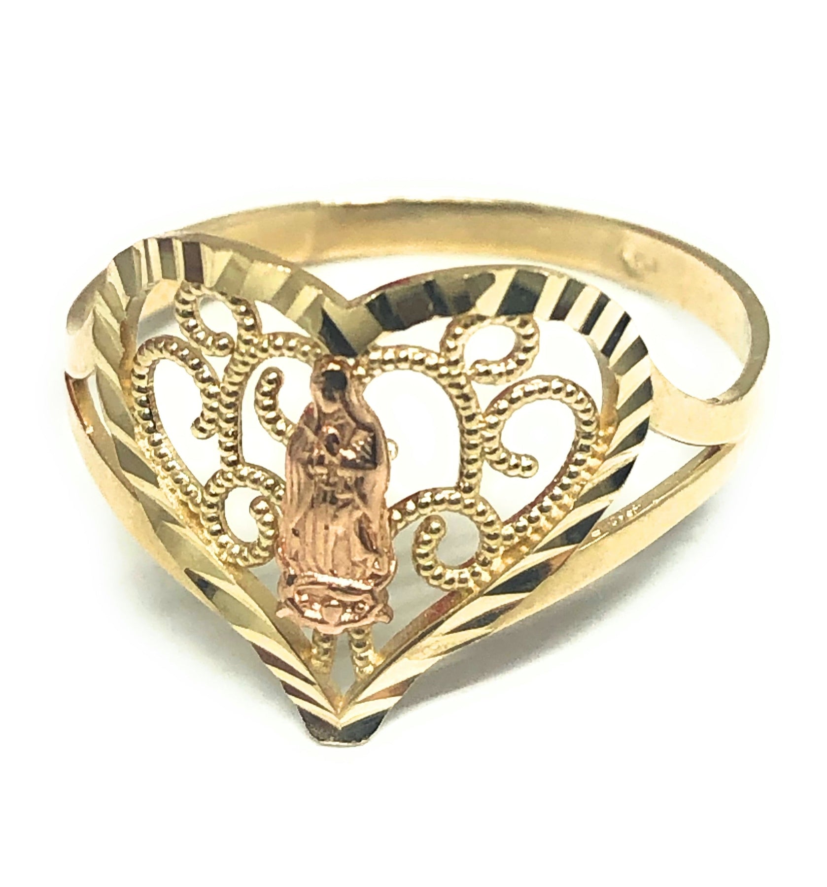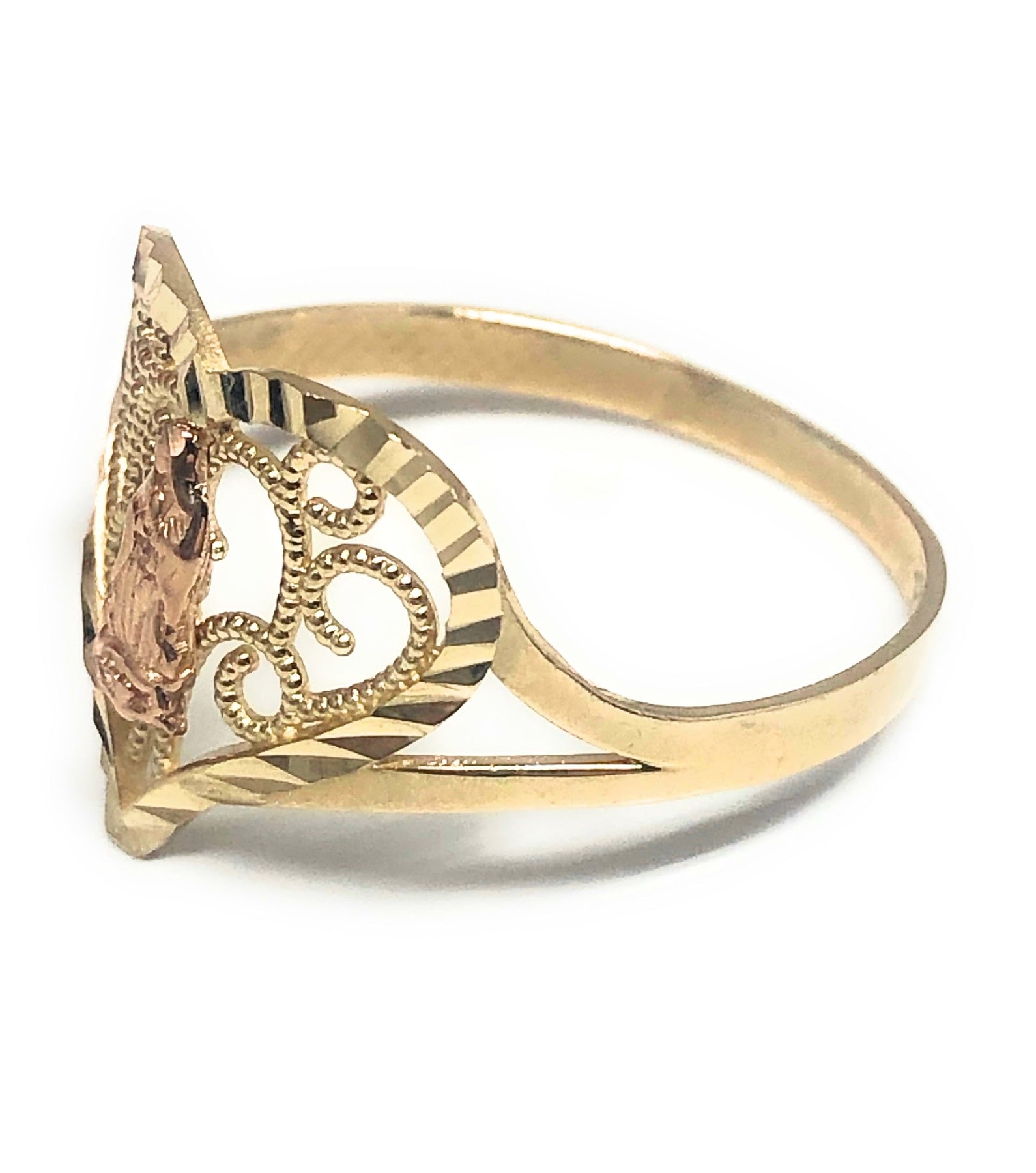 - Rose Gold and Gold Heart Virgin Mary Filigran Heart Ring 10k solid gold guaranteed.